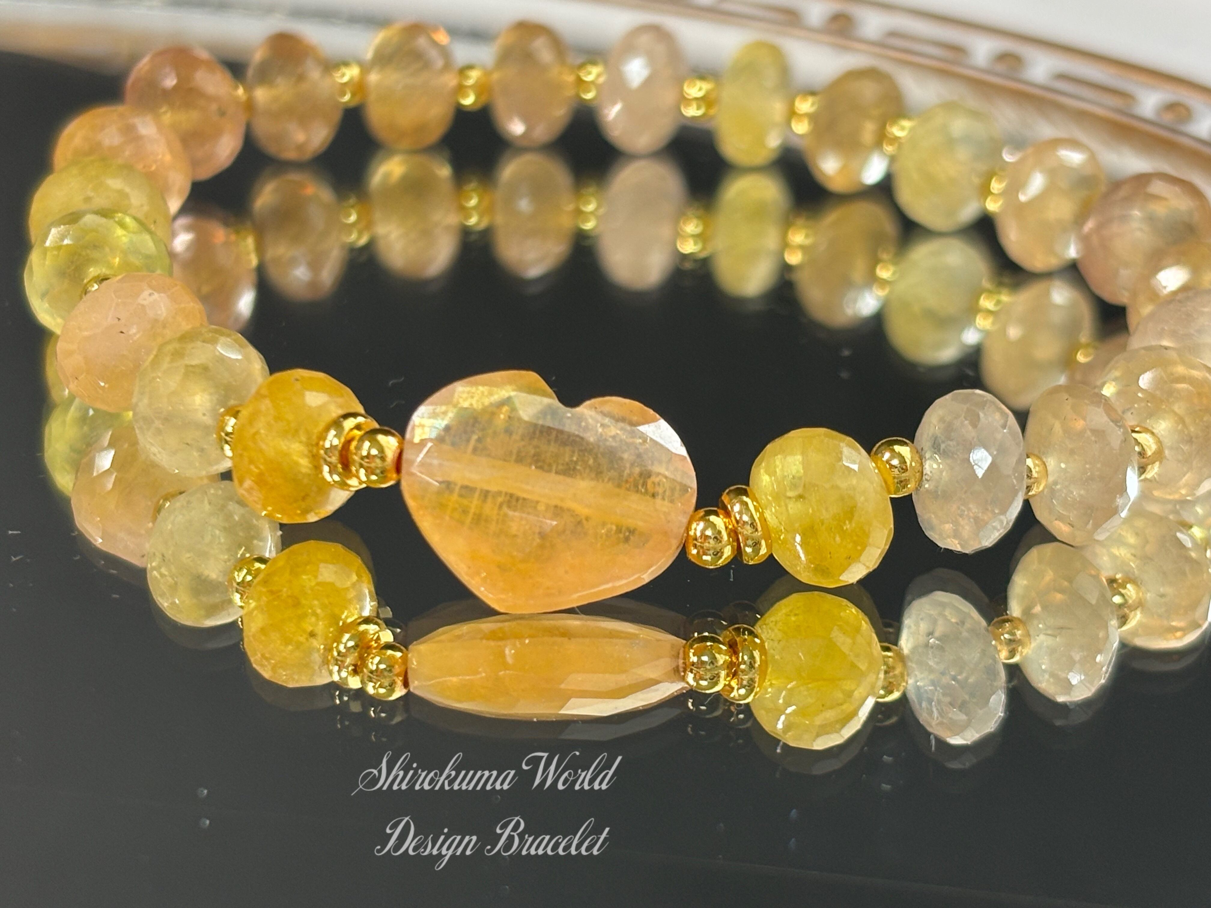 ボタンカットのイエローサファイアに宝石カットのイエローサファイア(プクラジ)のハートと組みました。