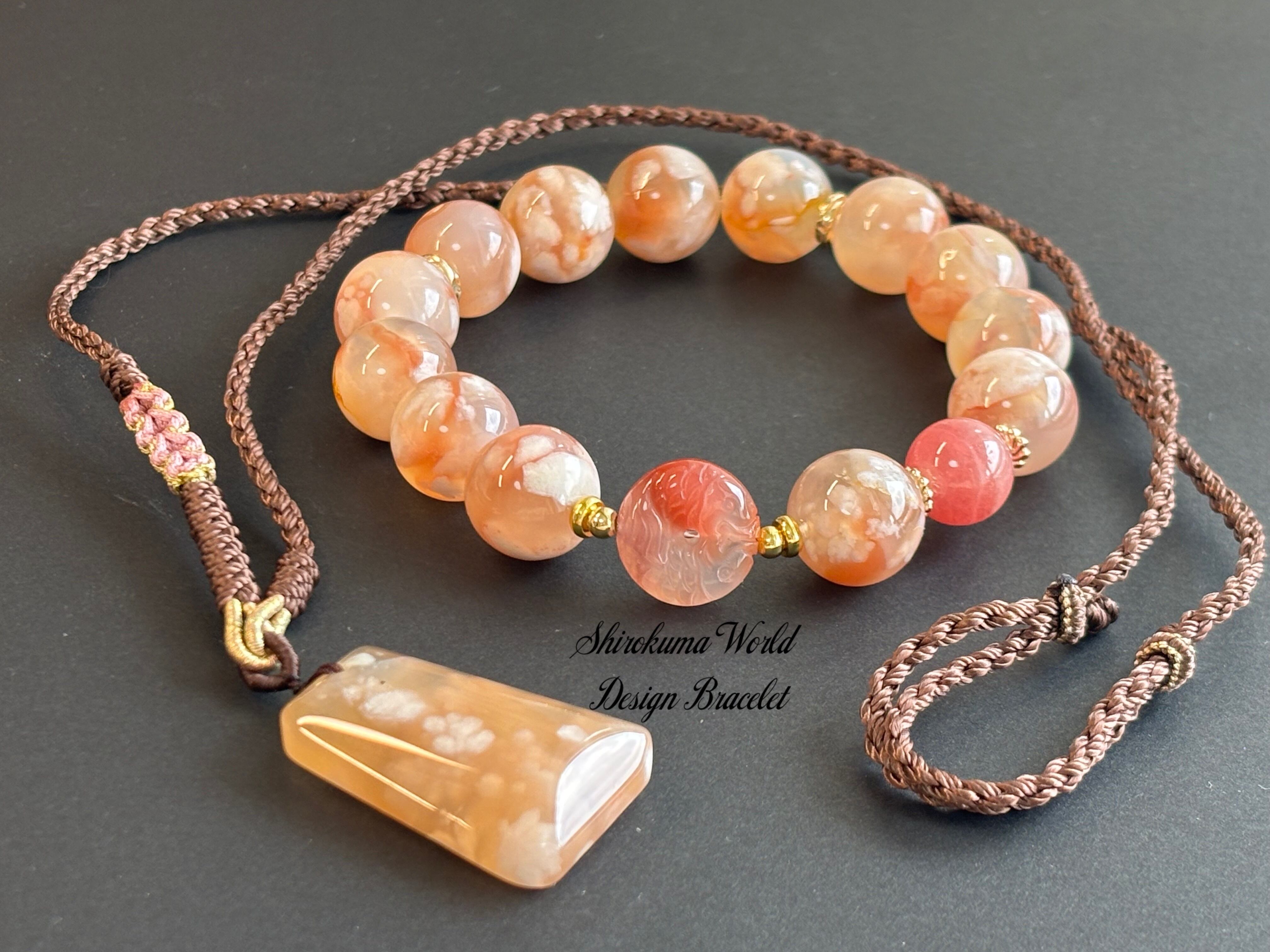 仲睦まじい夫婦鯉とインカローズの愛をテーマに春のような桜瑪瑙で癒しのブレスレットに♪