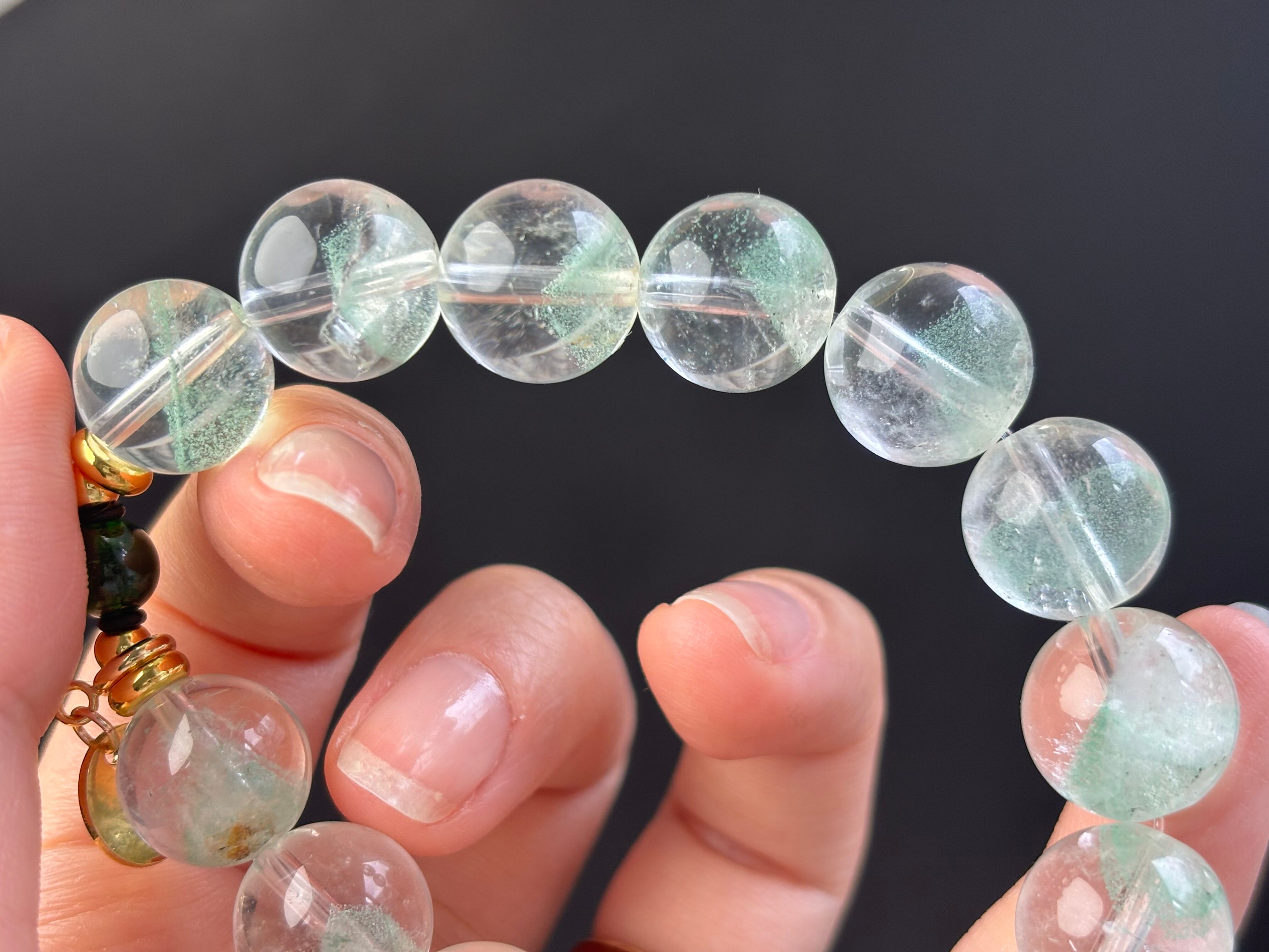 グリーンファントムガーデンには、やや小傷やインクルージョン、曇りを含む粒もございますが、全体的に透明感が高く、ファントムもしっかりと確認できるため、個人的にはとても美しい仕上がりだと感じています。