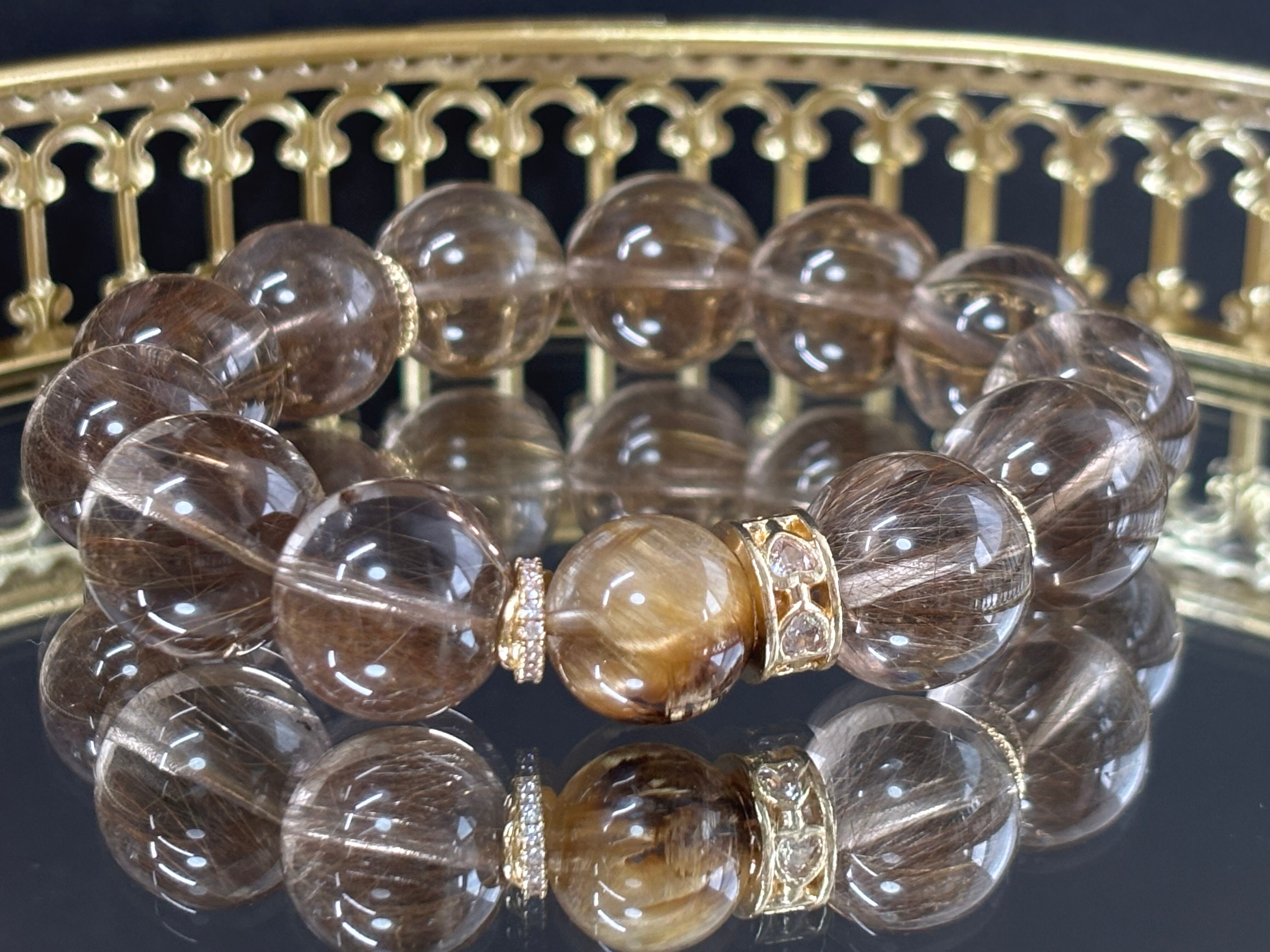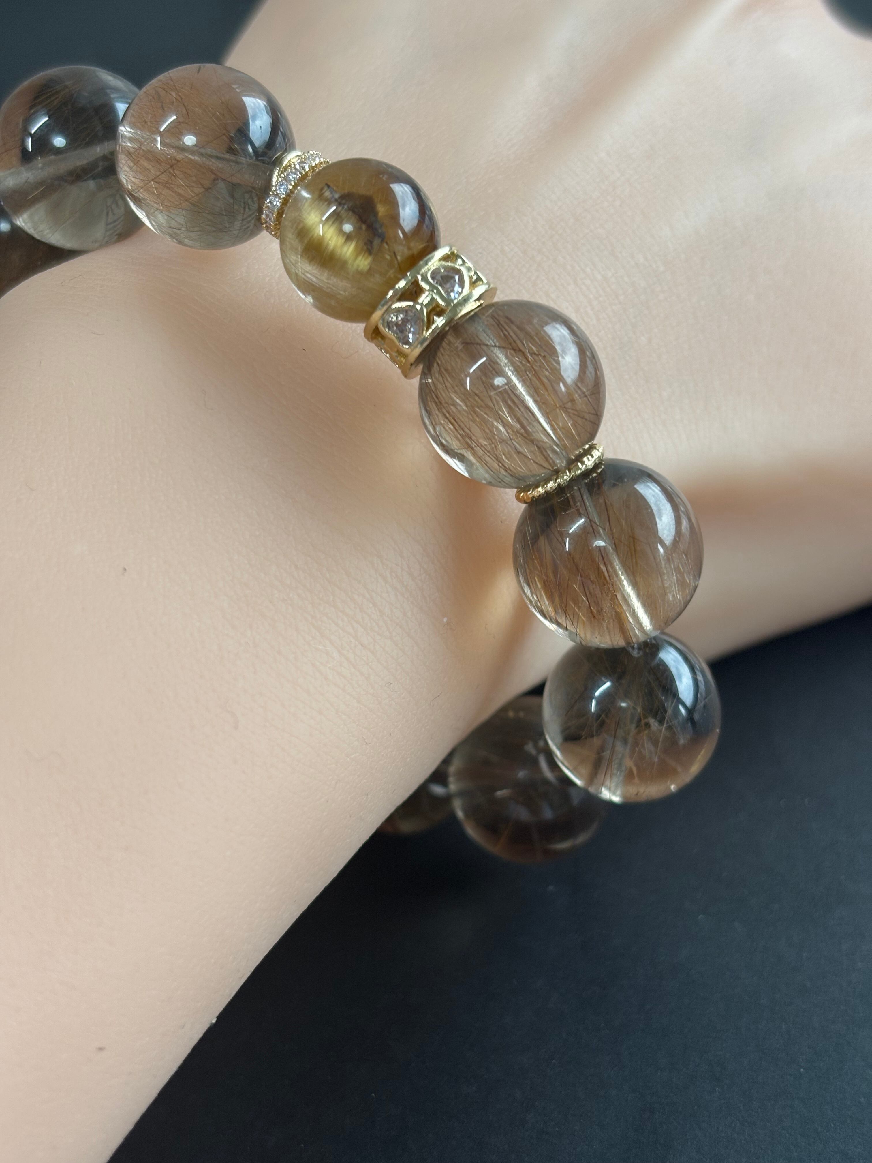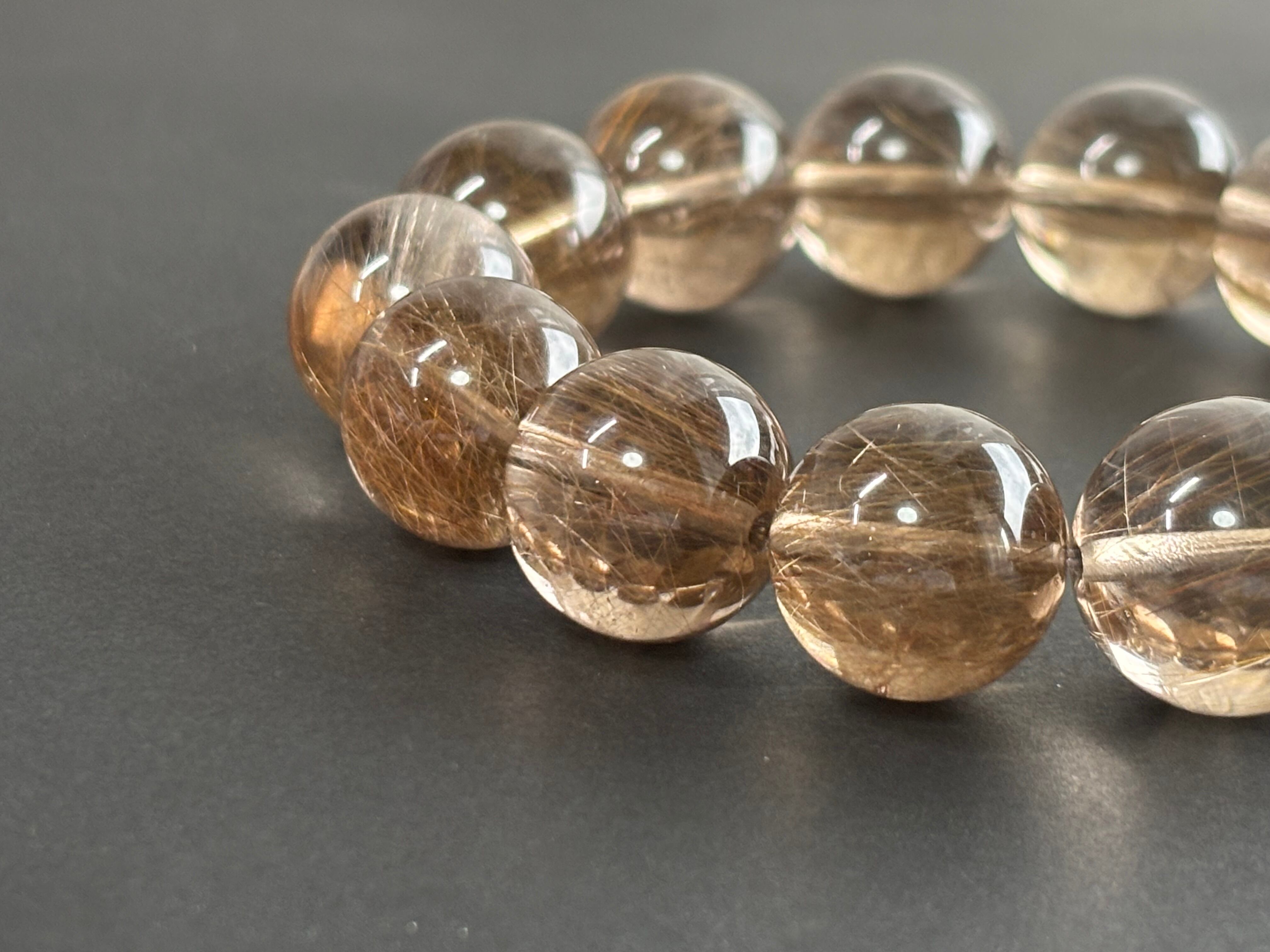 上品な大人ルチルブレスレットで女性でもさり気なくファッションに取り入れるようなブレスレットです。