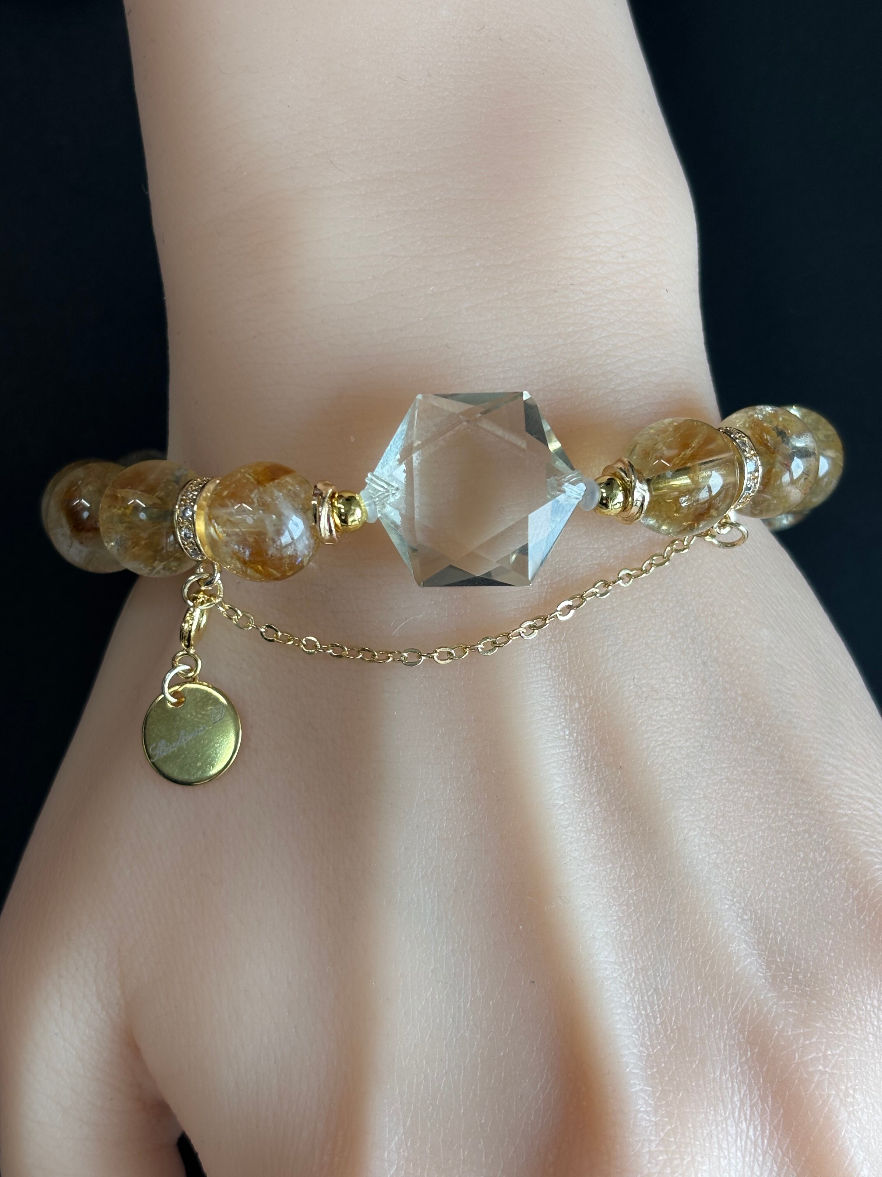 透明感のある六芒星のシトリントップとラダーとアイリス入りのシトリンのブレスレット。
