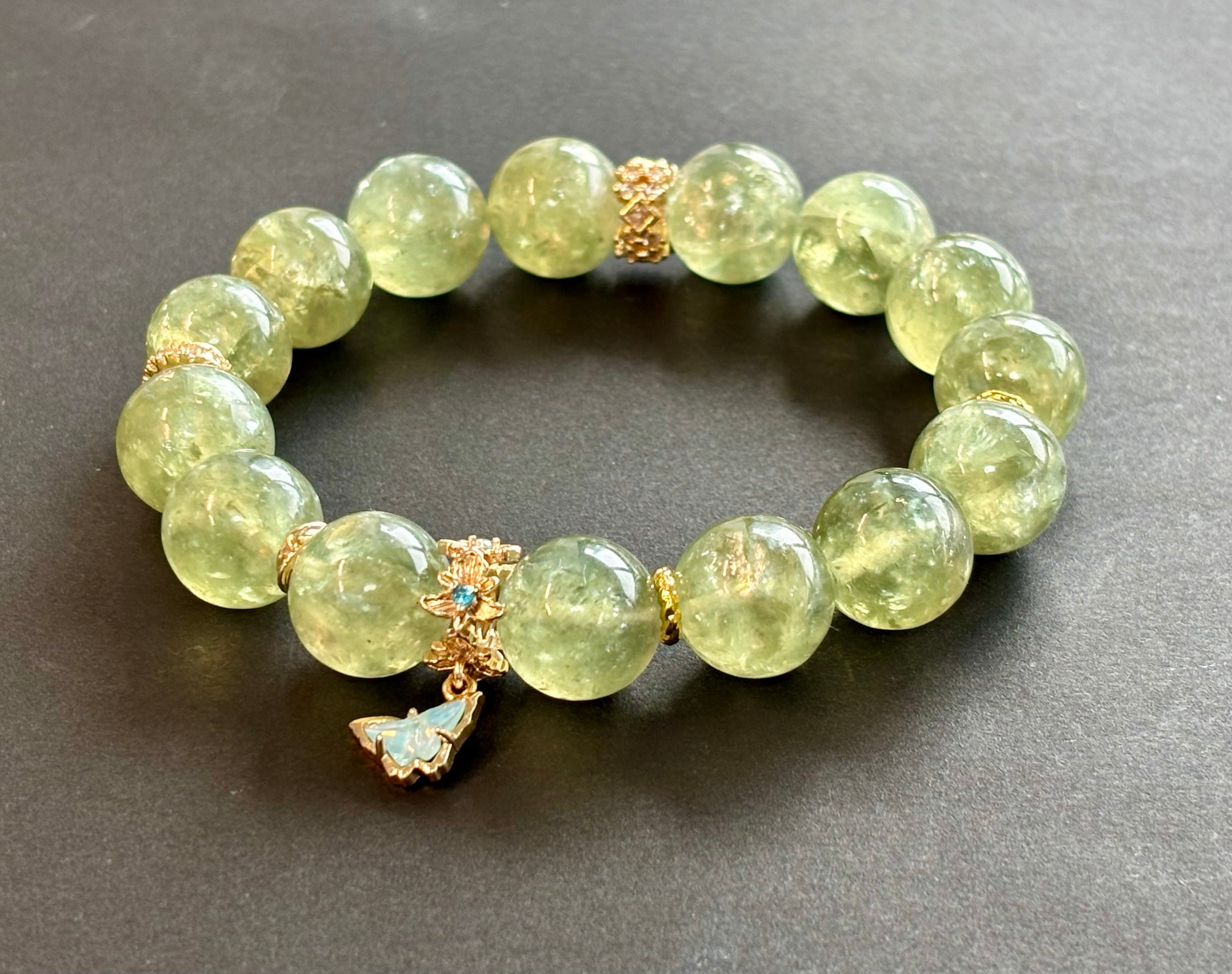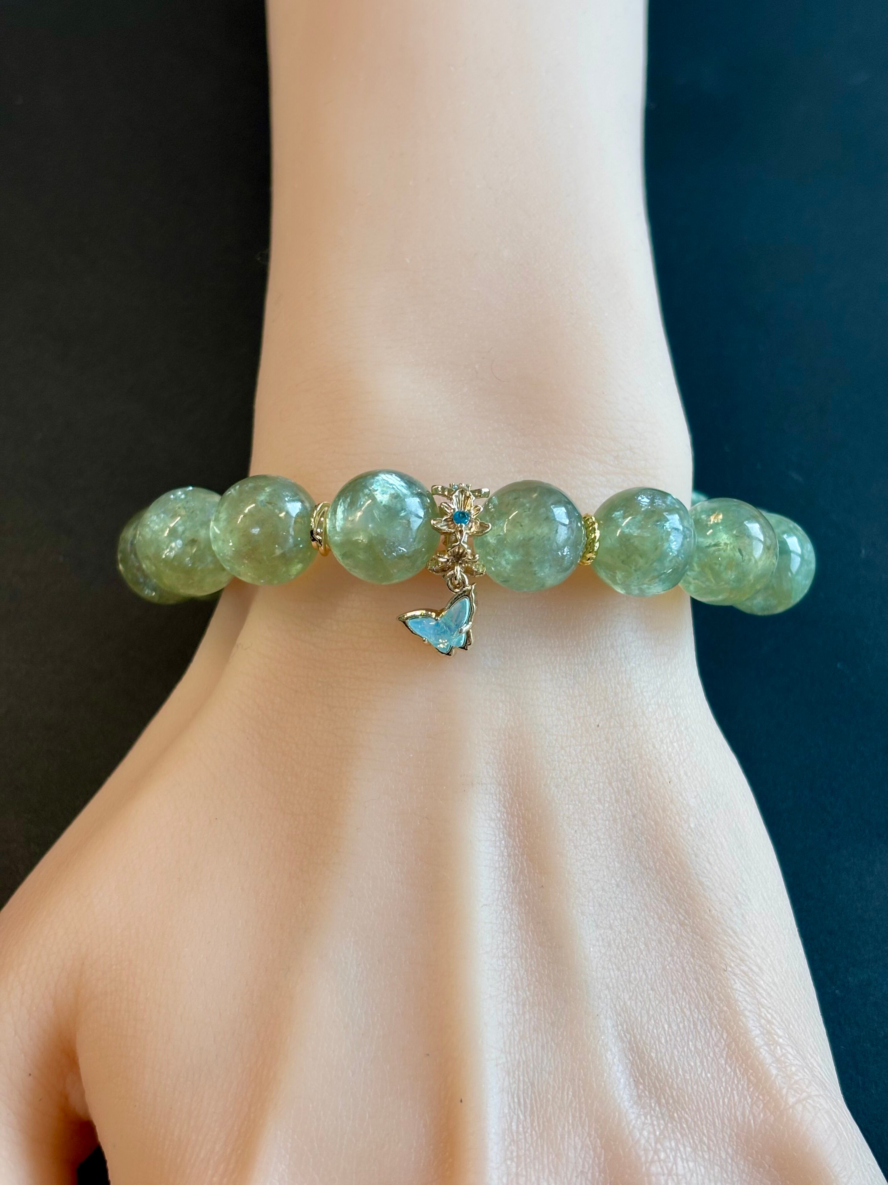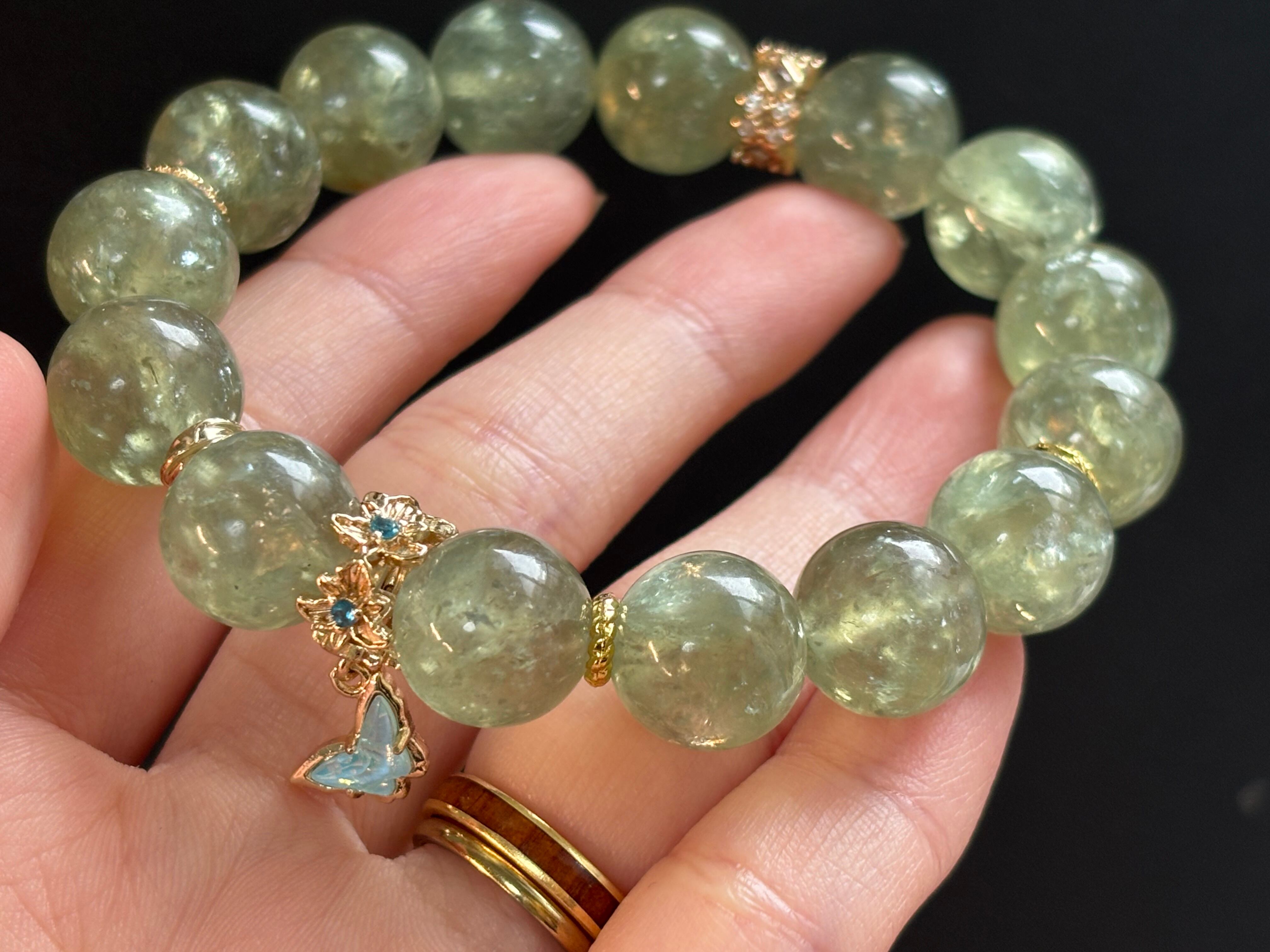 まるで抹茶ラテのような、やさしいグリーンが魅力の天然カラーのグリーンマイカブレスレット。