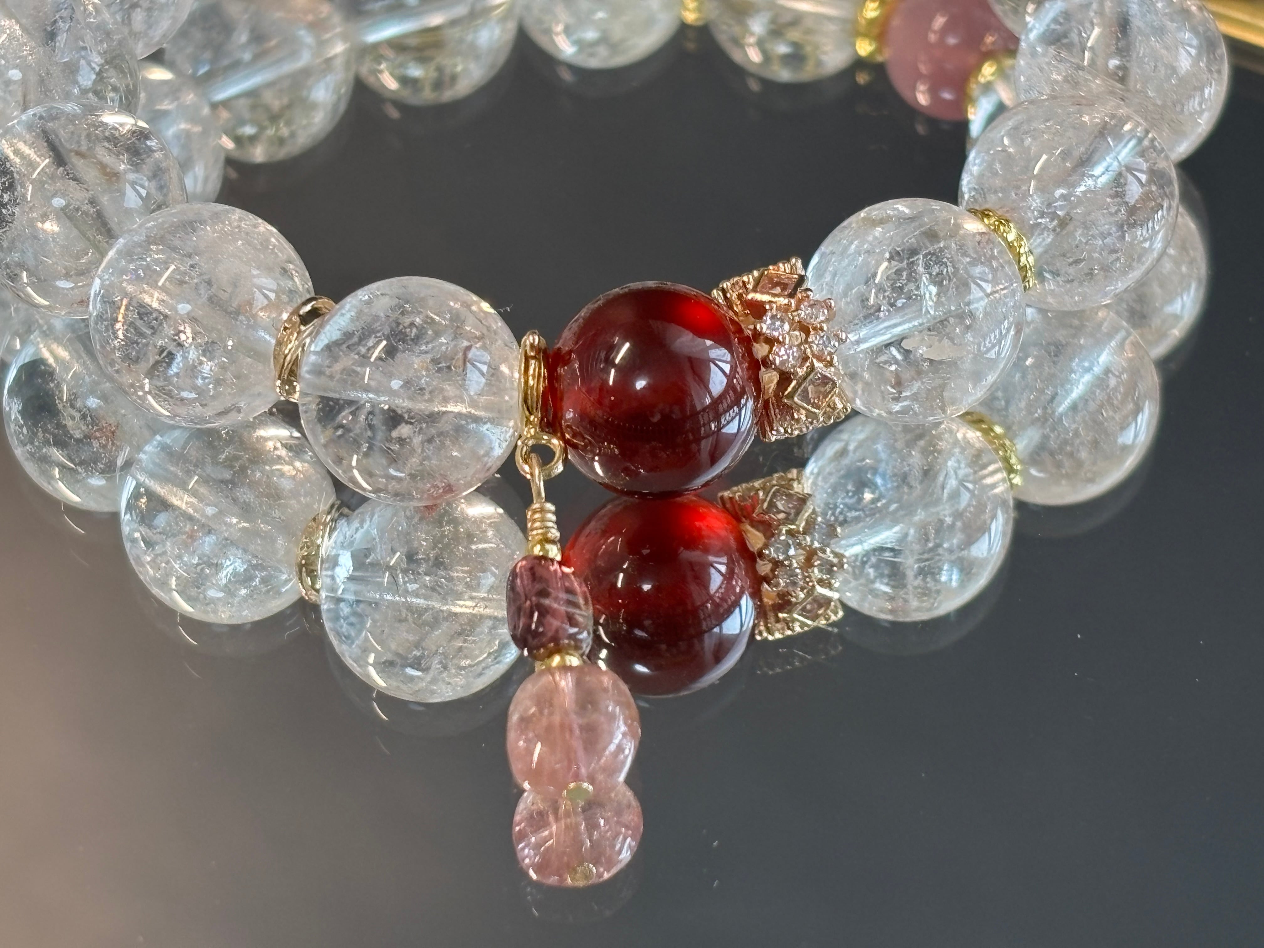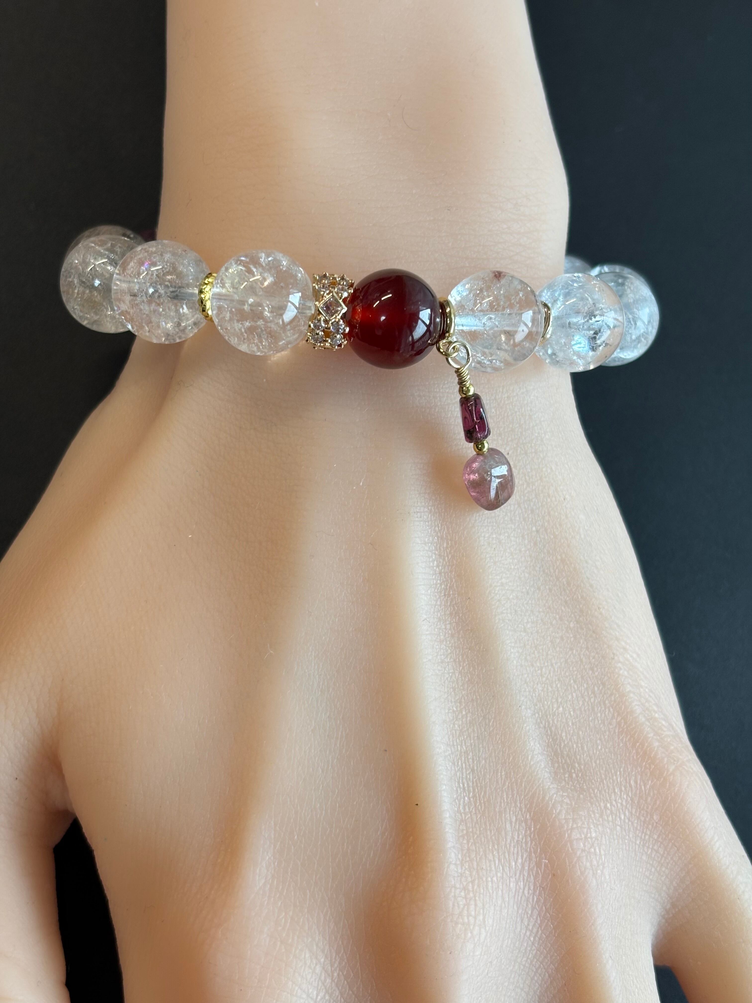 高品質ガーネット ローズクォーツ ゲーサイトインピンク天然アイリスクォーツ デザインブレスレット