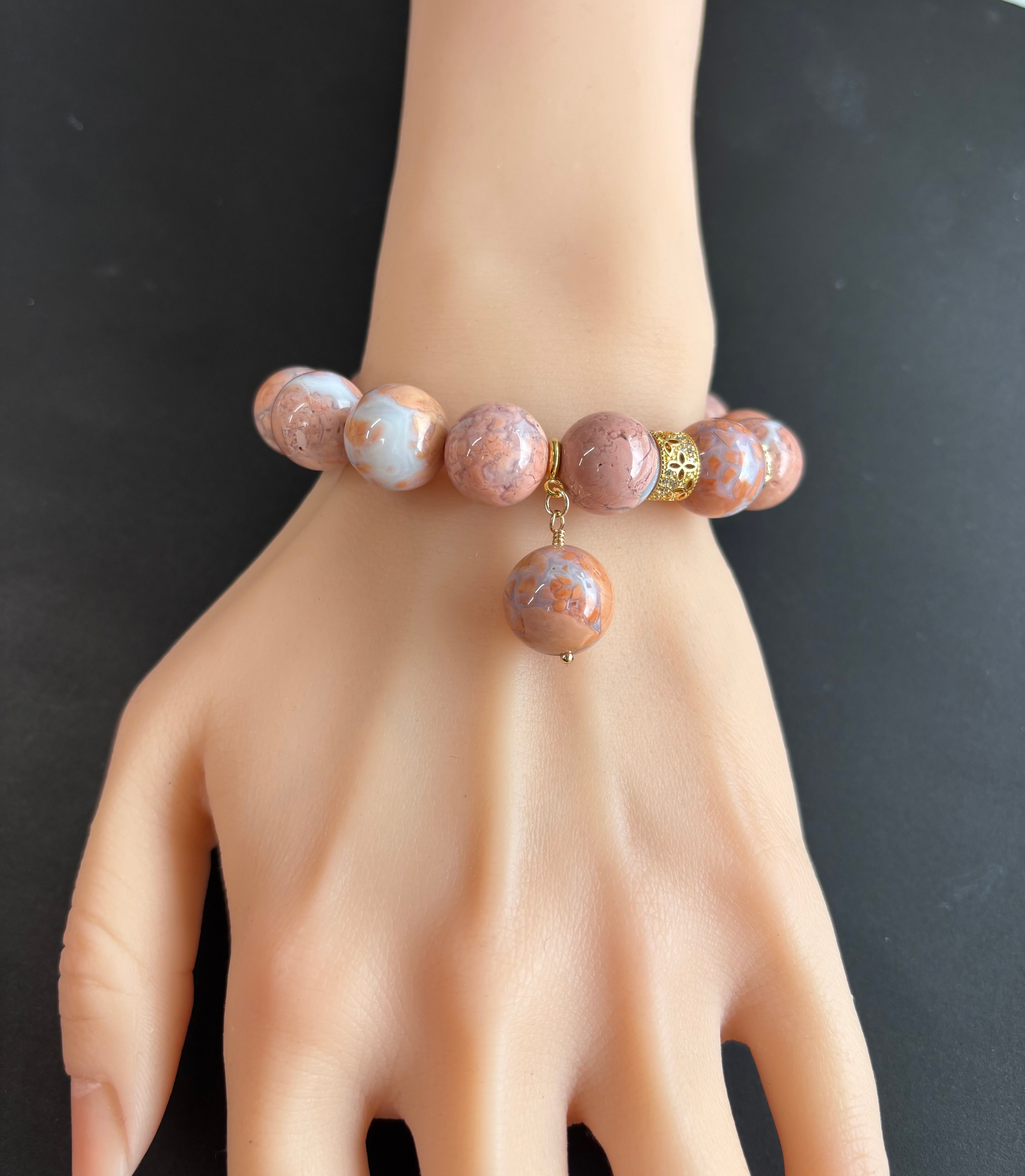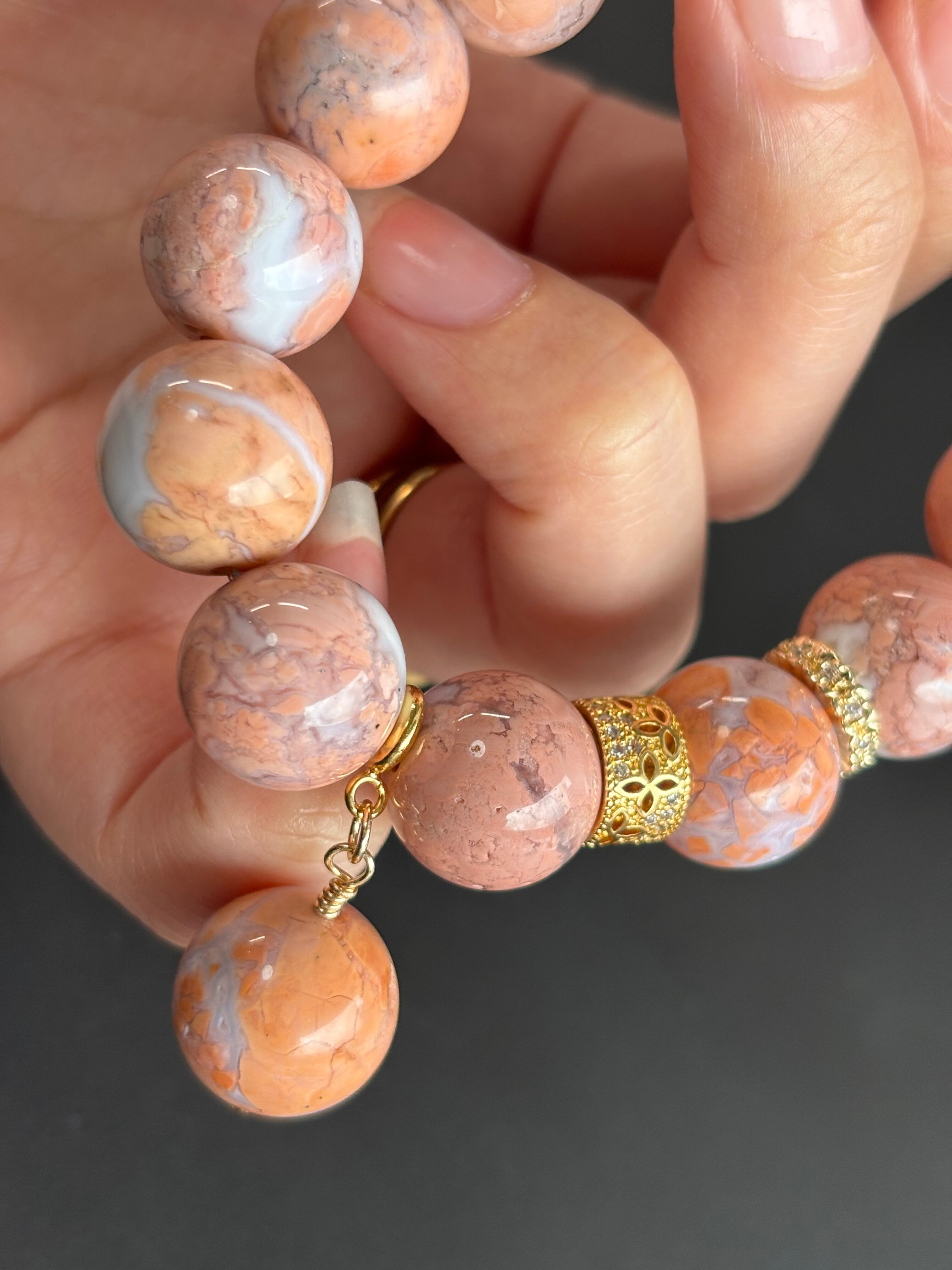 やさしい桜色と乳白の模様が混ざり合う、春の景色を閉じ込めたようなピンクアゲート瑪瑙♪