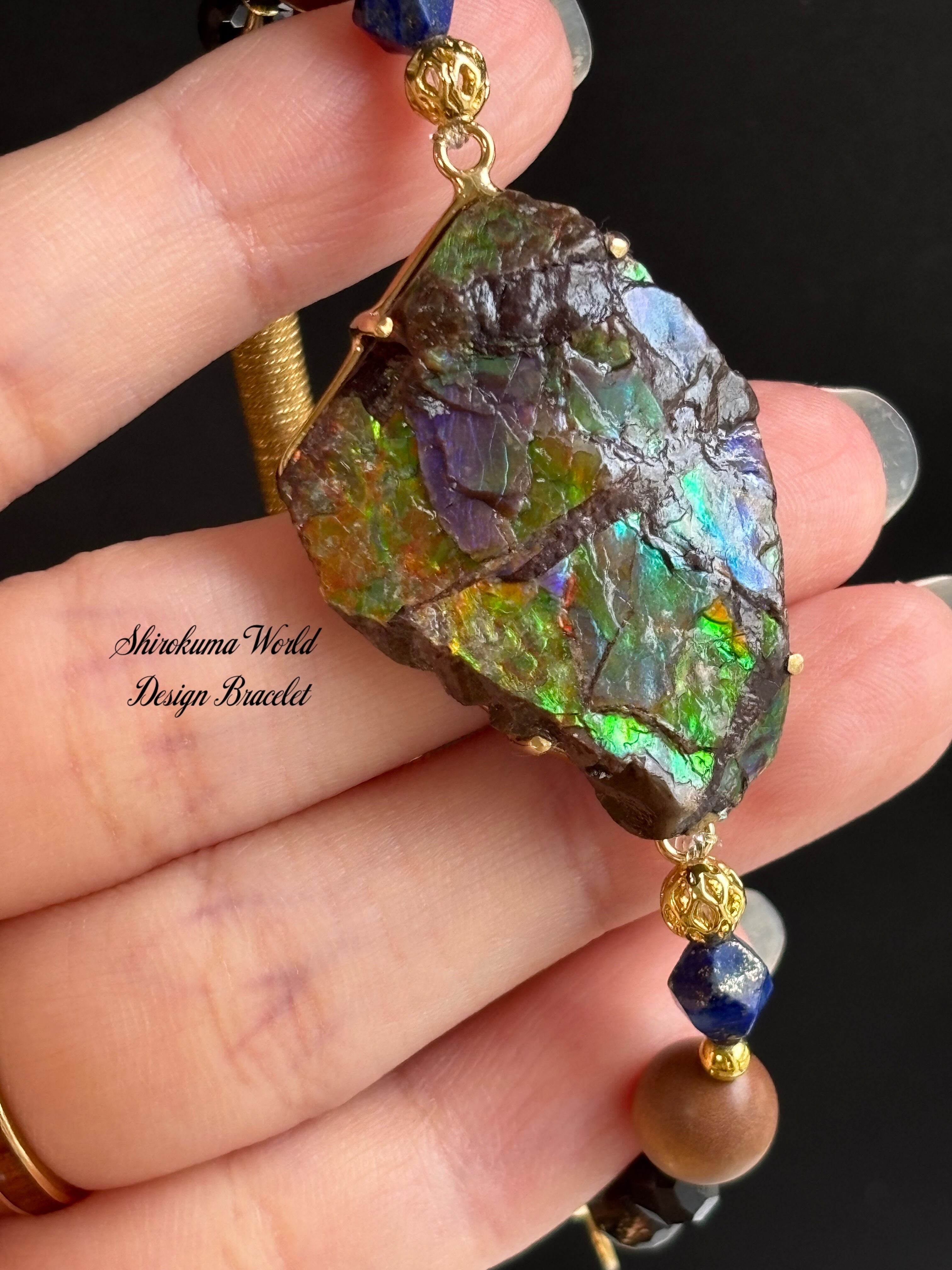 奇跡の宝石 高品質 原石 アンモライト原石 ワインドコードデザインブレスレット