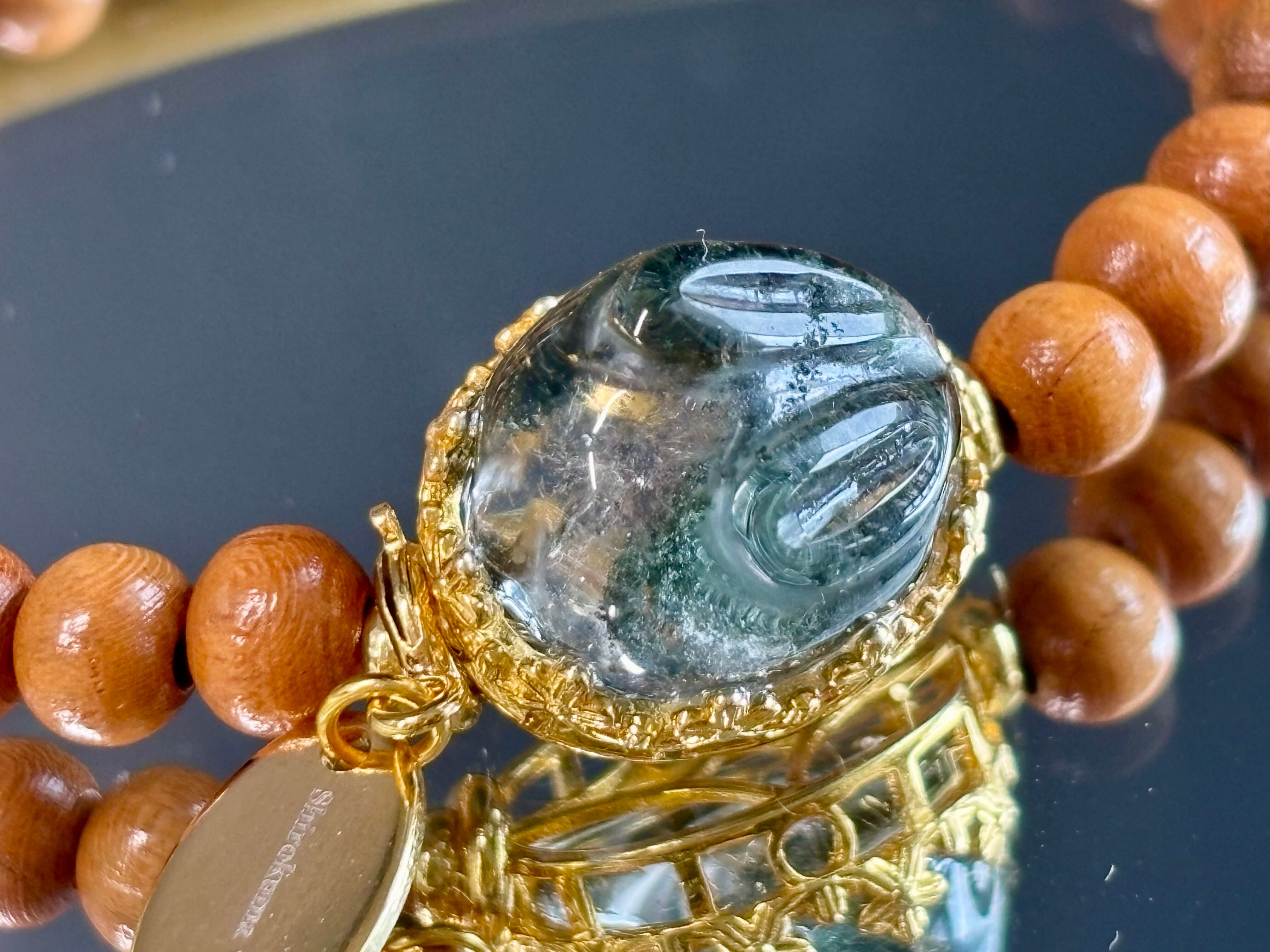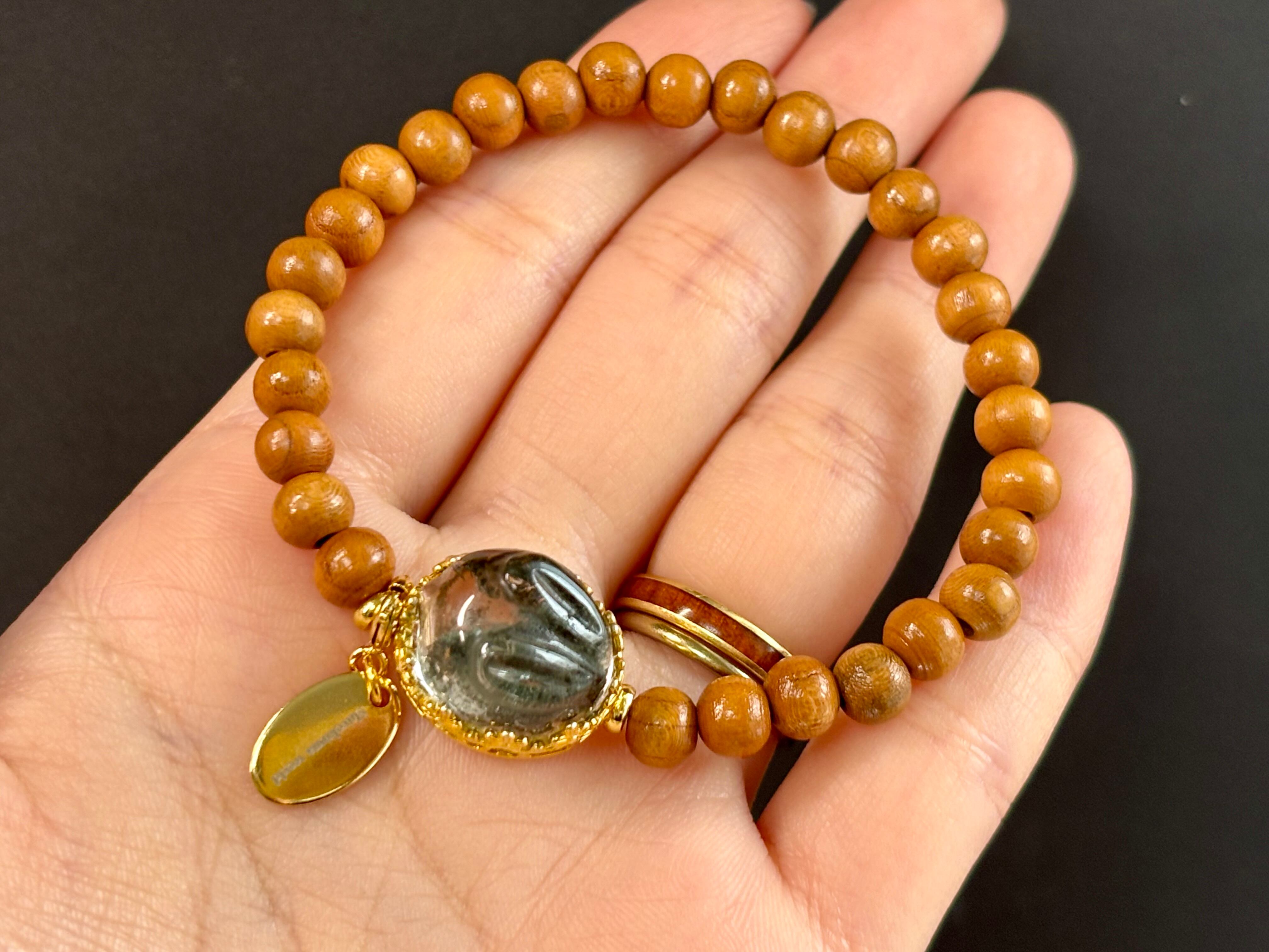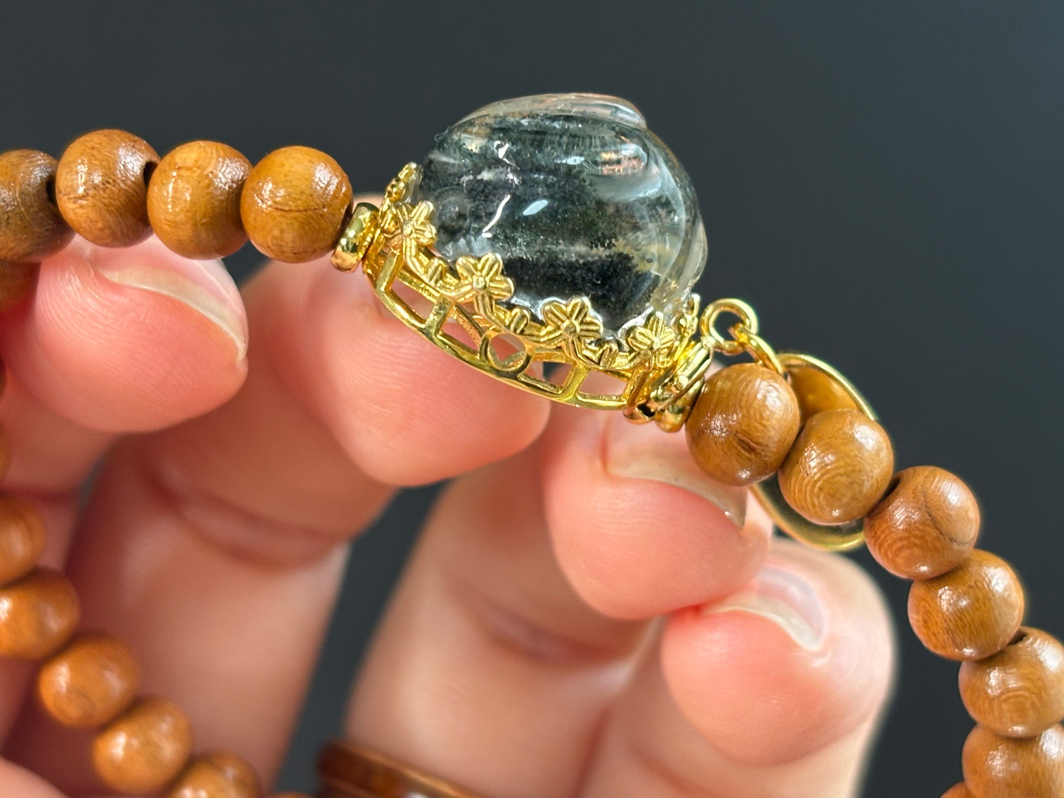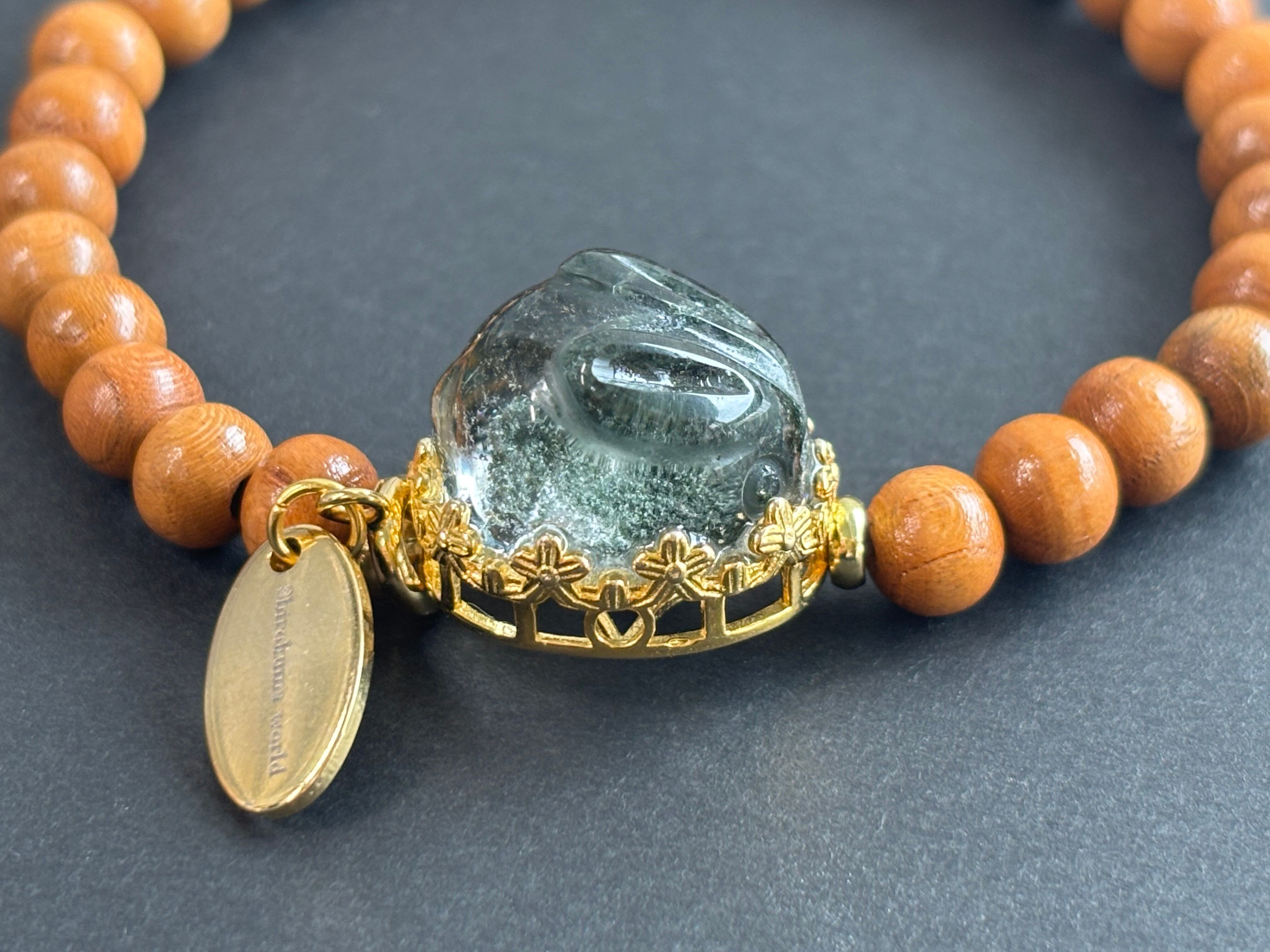 ガーデンクォーツの大地的な安定感と、桃の木の穏やかさは相性がよく、気持ちを落ち着けたいときや日常のお守りにおすすめの組み合わせです。