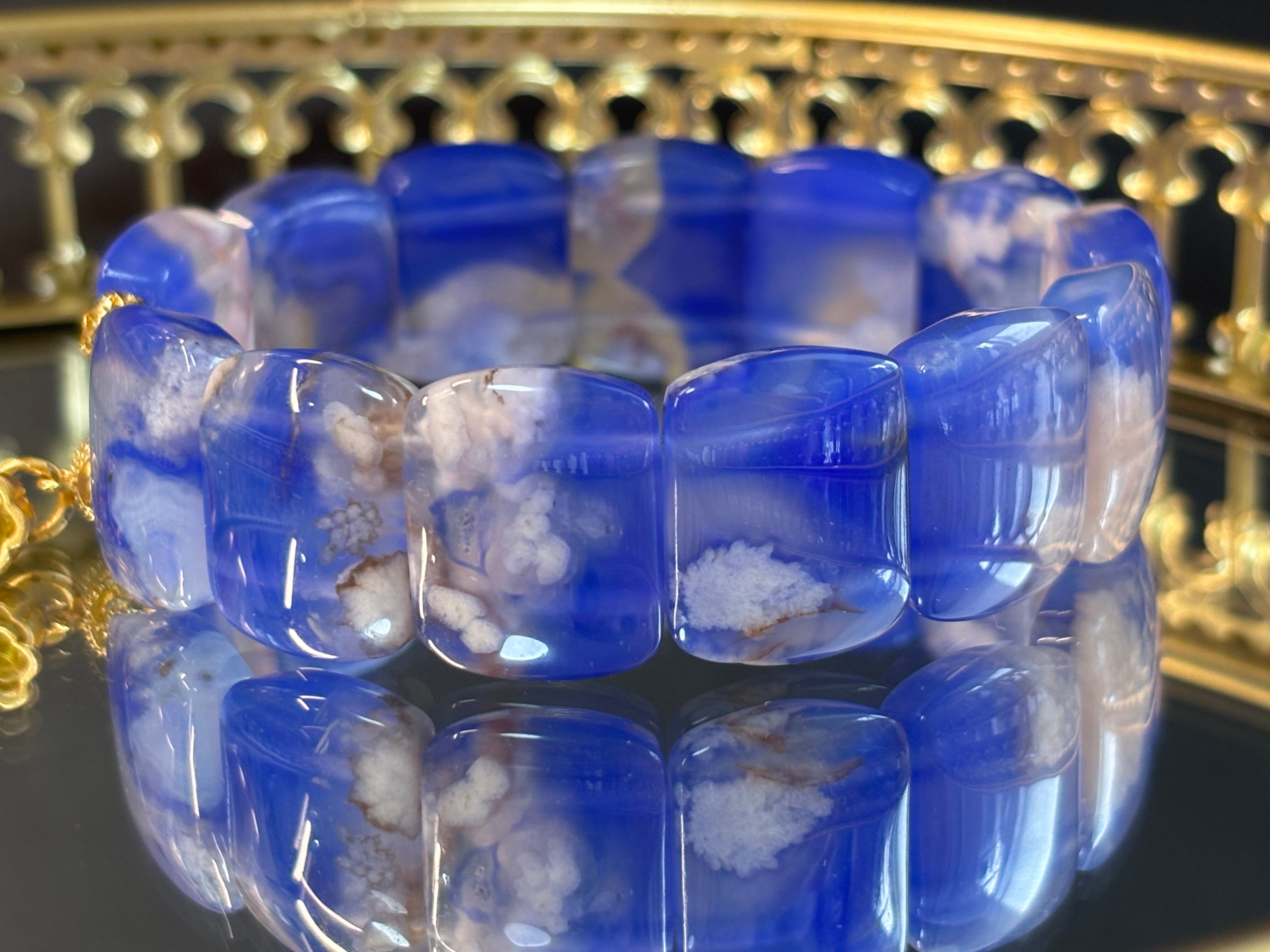 透明感の中に幻想的な青のグラデーションが溶け込む青桜瑪瑙のバングル。