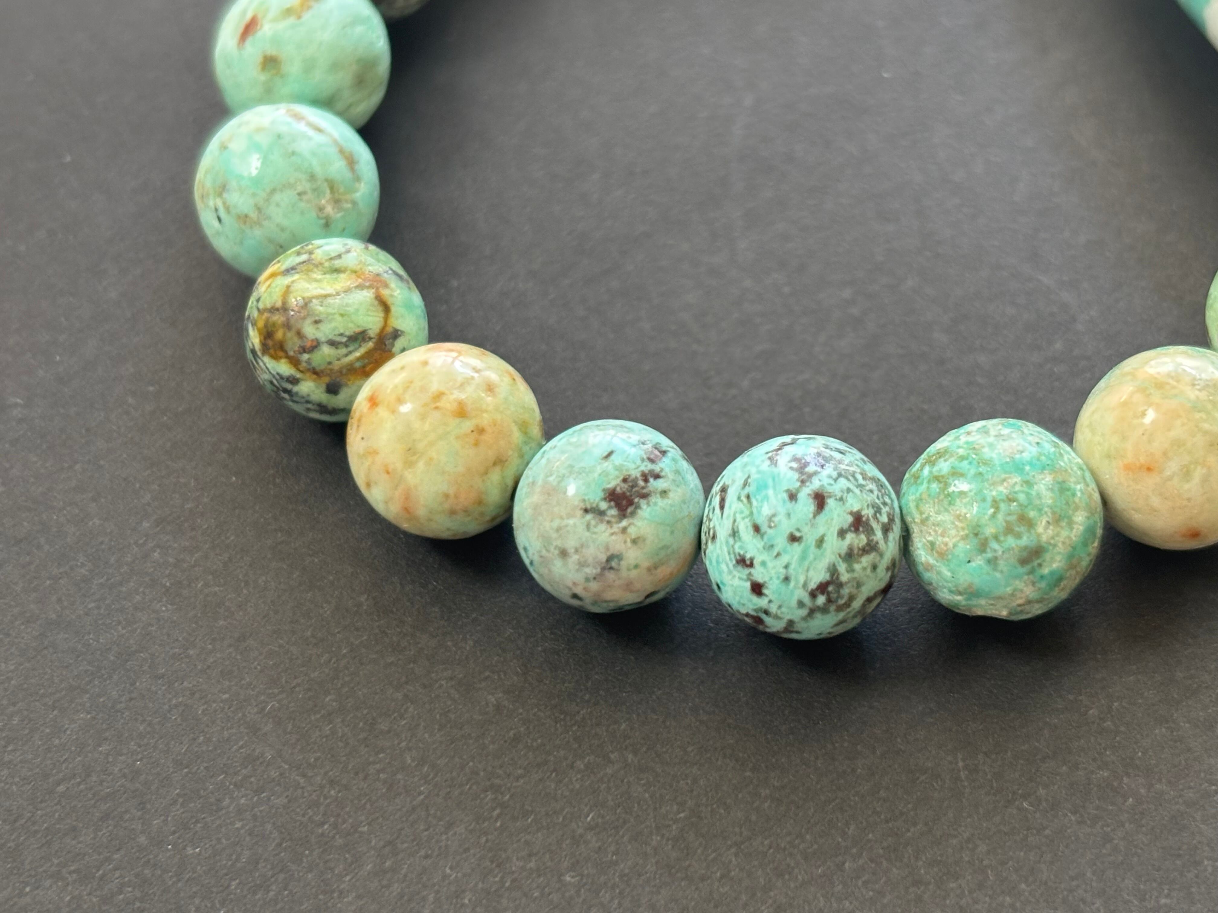 ペルー産ターコイズは自然のままのナチュラルカラーで、ややエクボが見られる粒もあります。