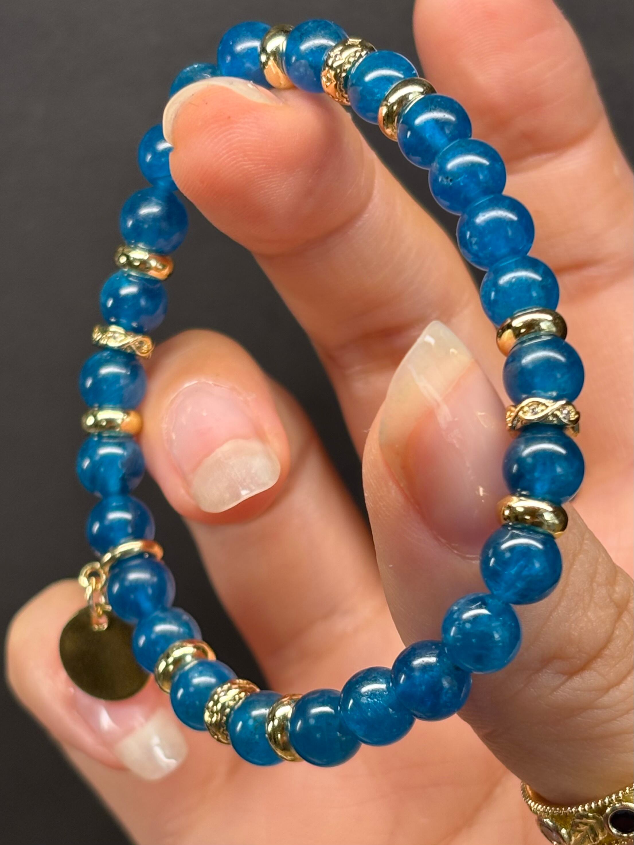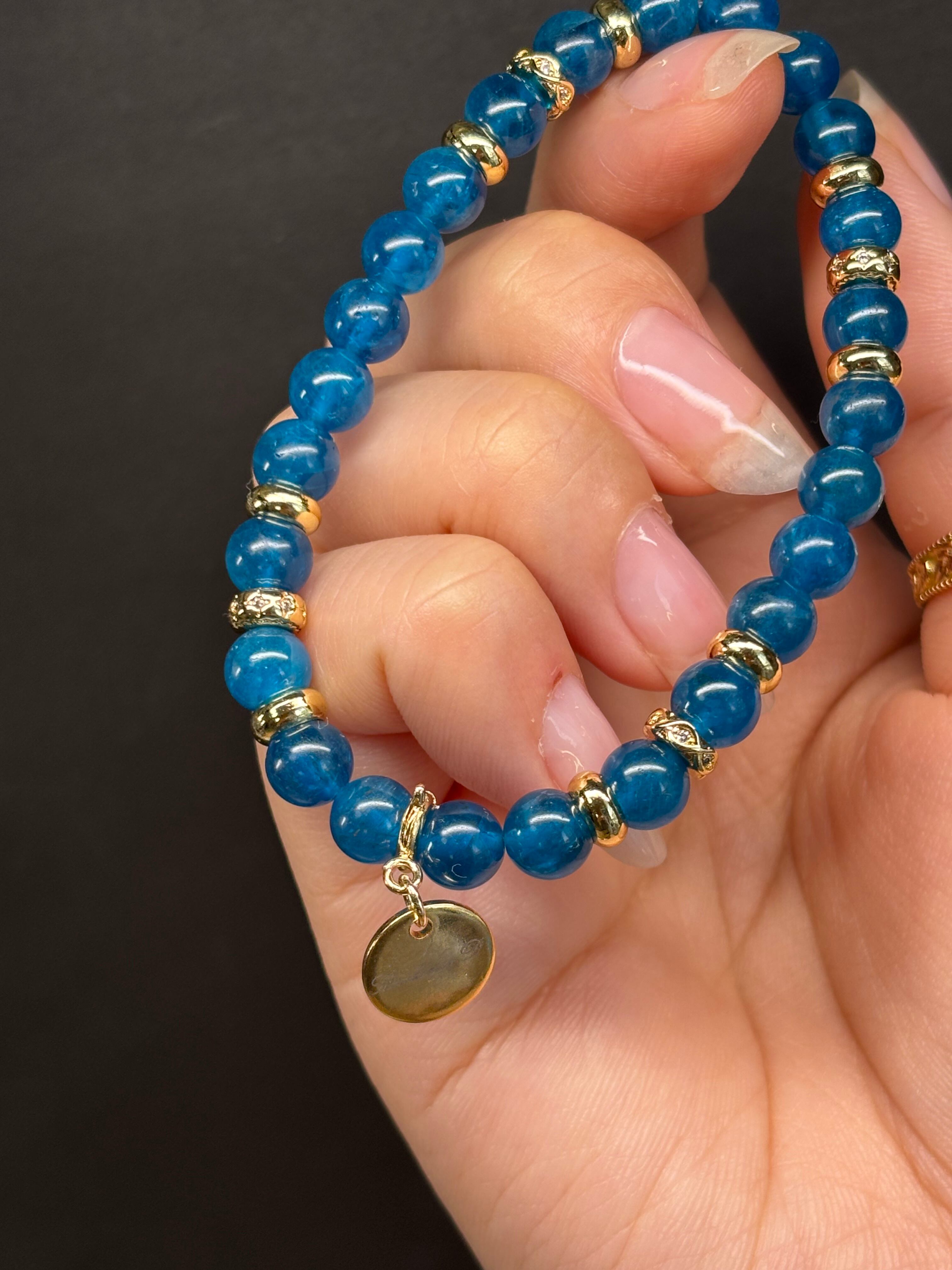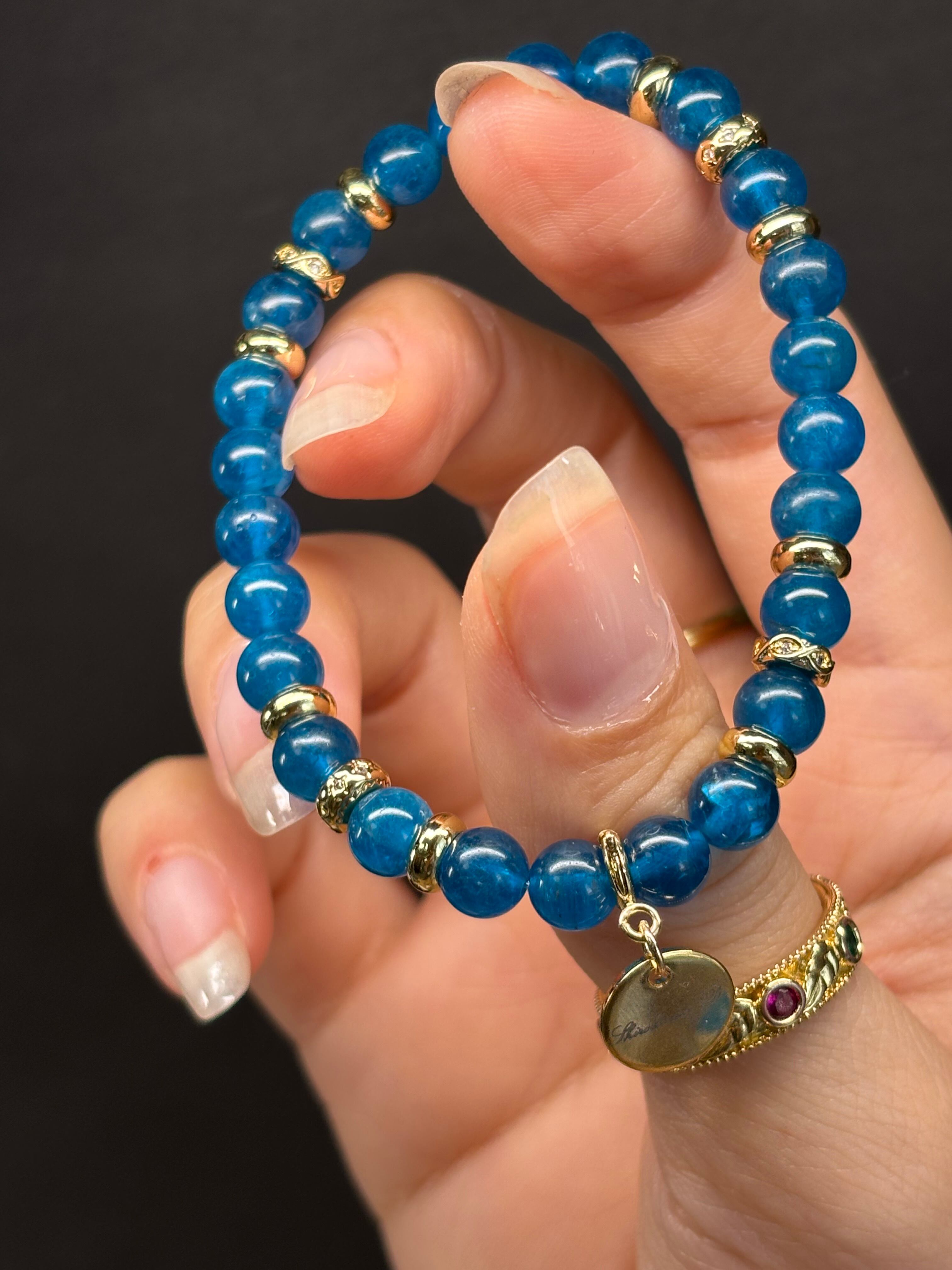 透明感と発色が美しい、高品質ネオンブルーアパタイトを贅沢に使用したブレスレットです。