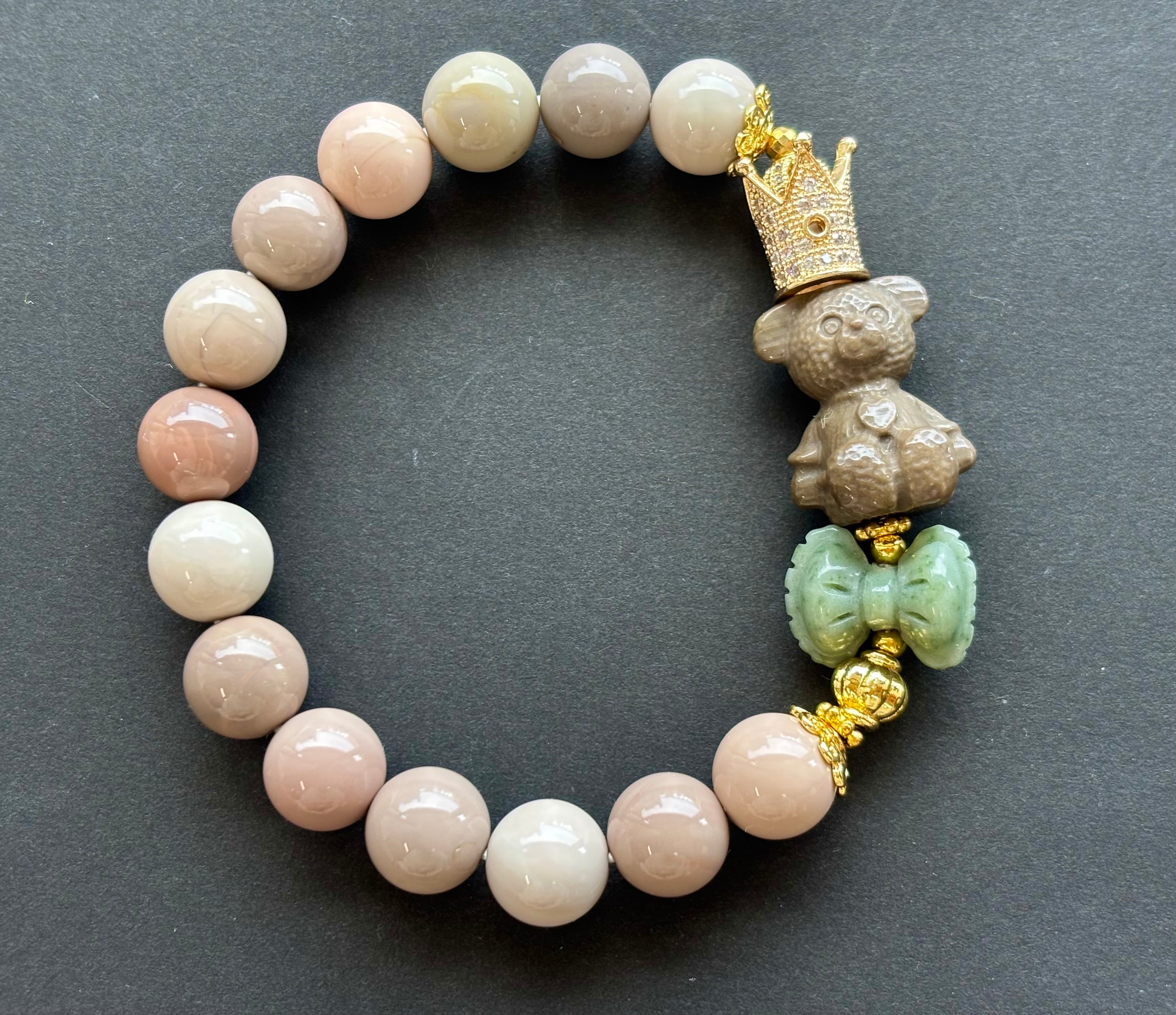 柔らかなニュアンスカラーが魅力の**アラシャン瑪瑙(アゲート)**を使用した、くまのデザインブレスレットです。