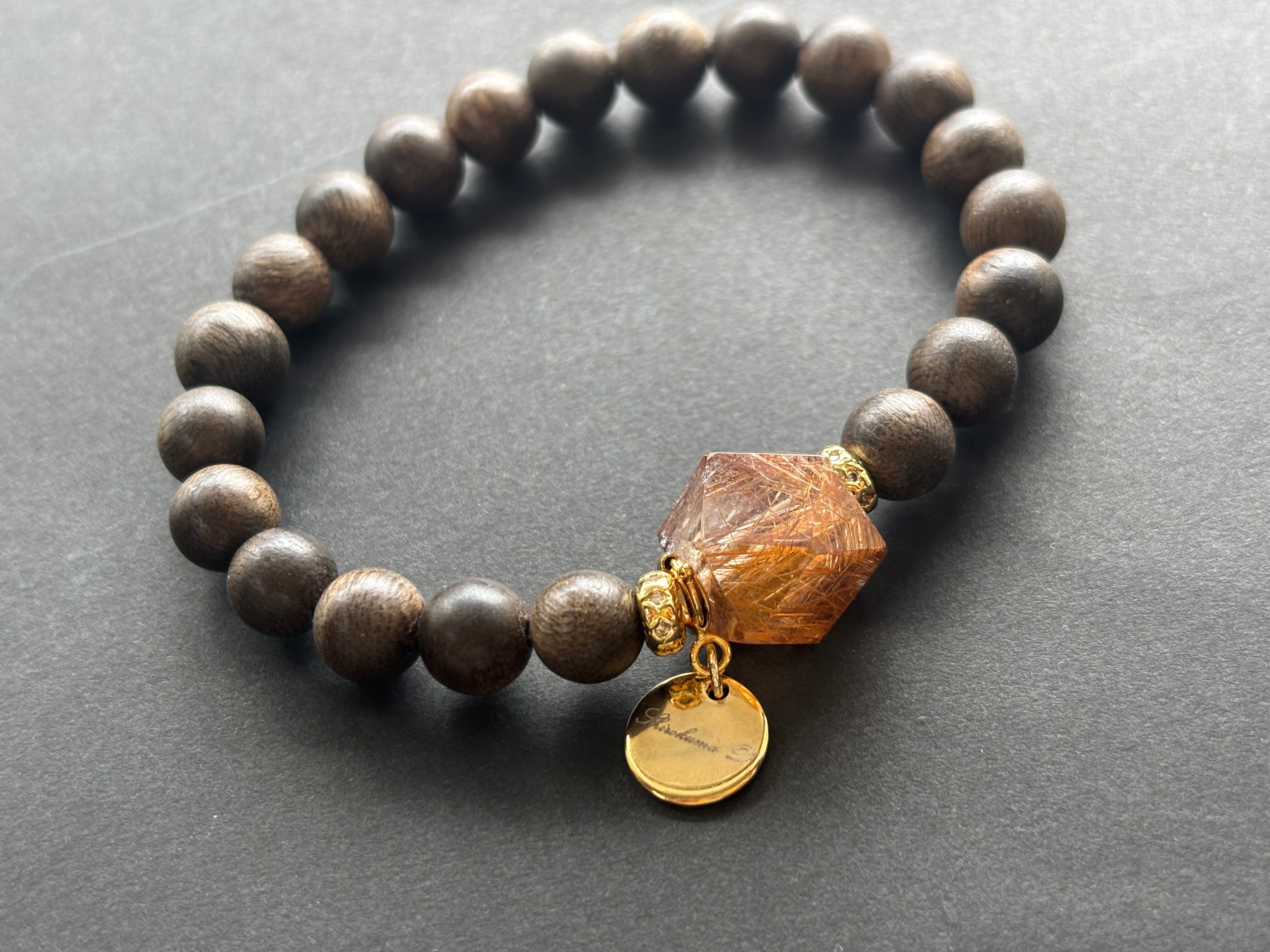 沈香の穏やかさと、ルチルの活性エネルギーは好バランス。落ち着きを持ちながらも前向きな行動力をサポートしてくれるような組み合わせです。