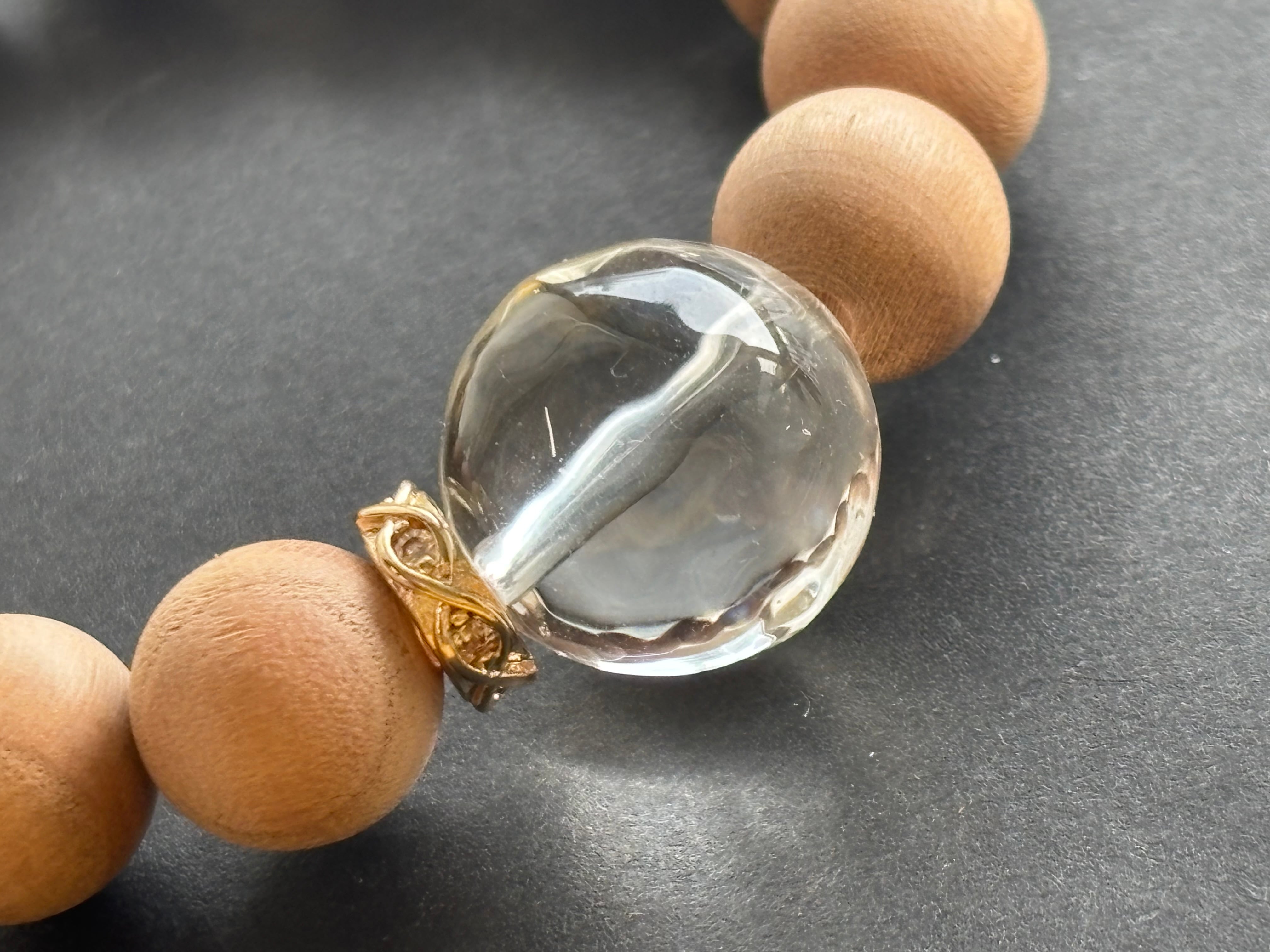 高品質 ポコポコカット水晶 桃木 デザインブレスレット