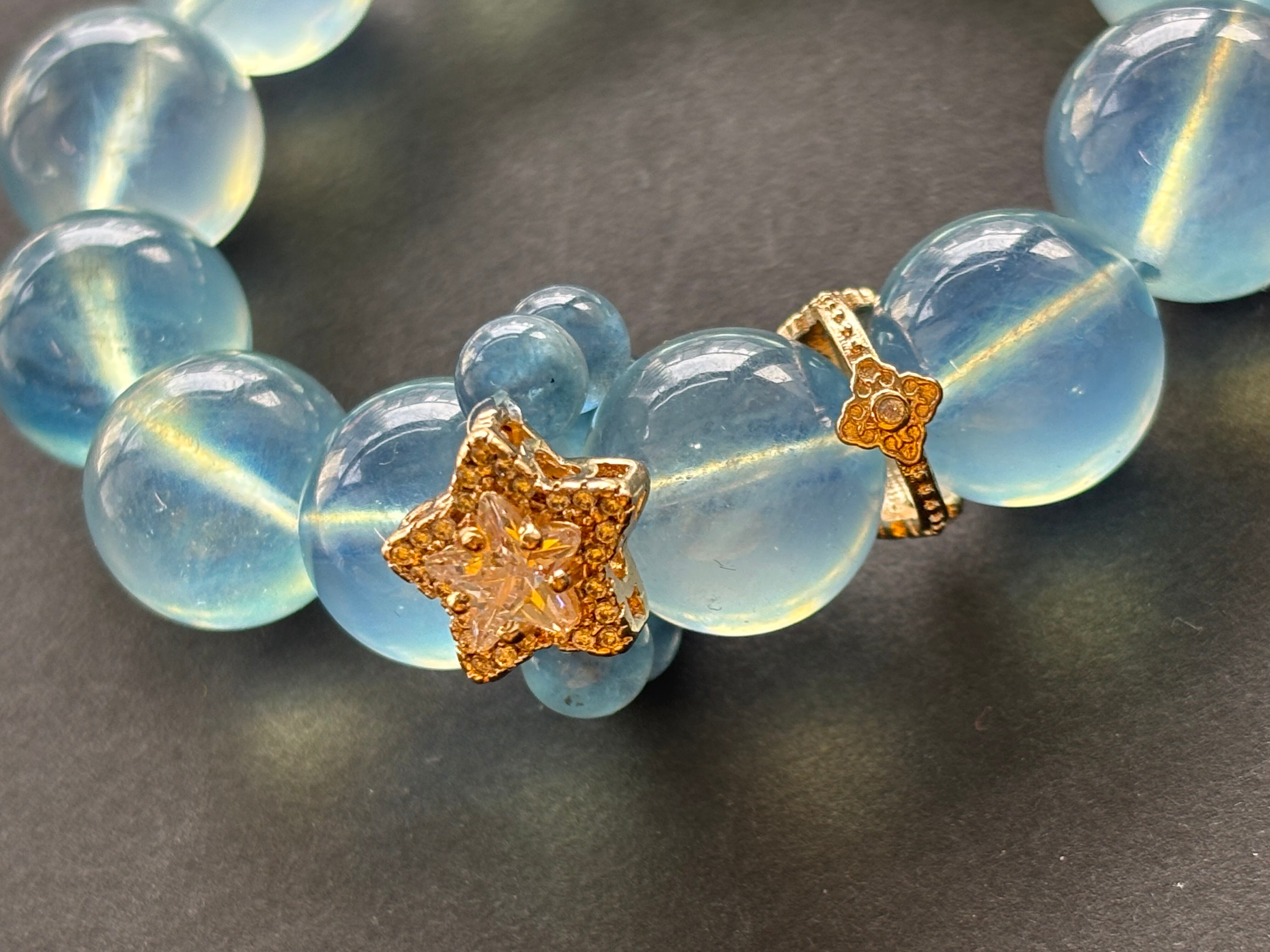 高品質のアクアマリンを使用した、ゼリーのようにぷるぷるとした透明感が魅力のブレスレット。