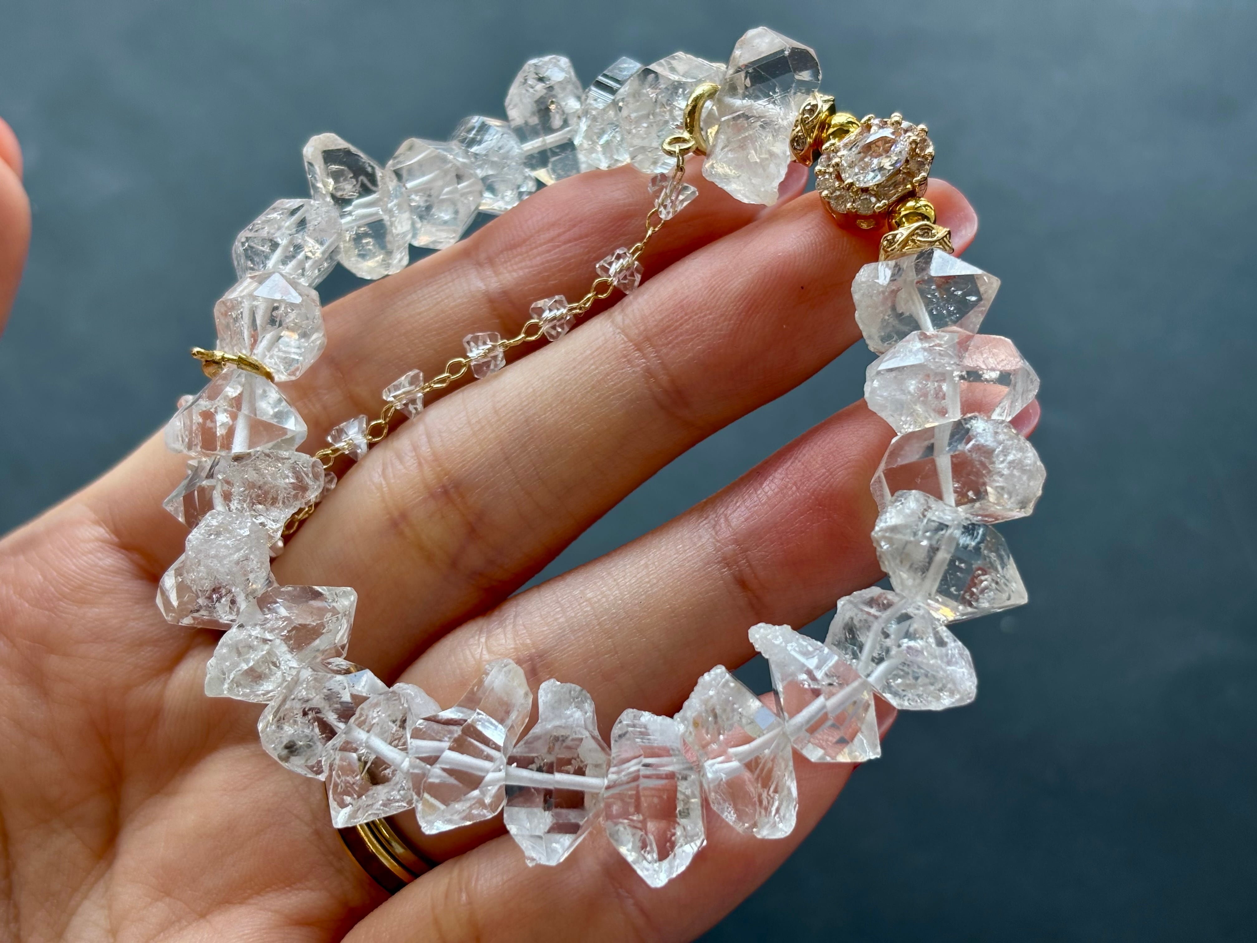 透明感が美しい氷のような高品質のパキスタン産のオイルイン ハーキマーダイヤモンドを贅沢に使用したブレスレットです。
