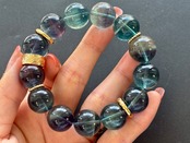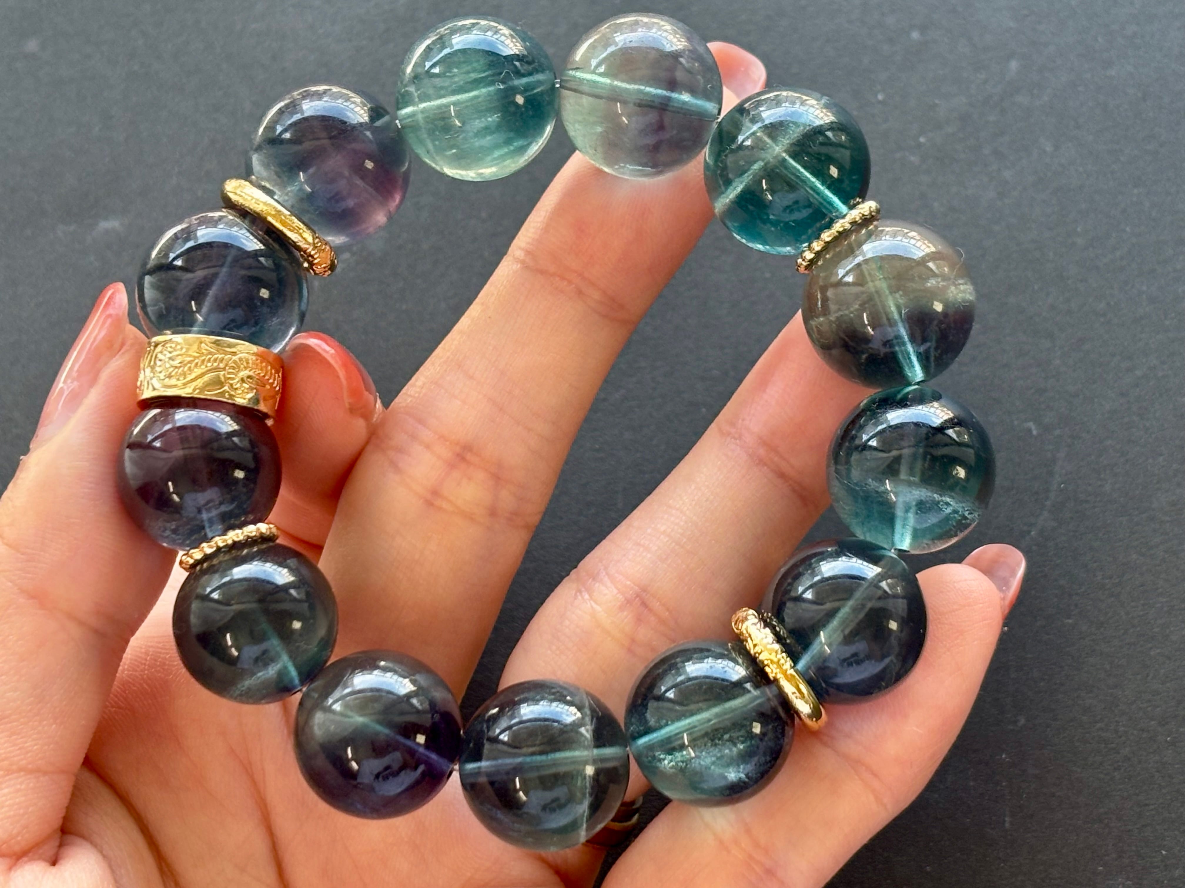ブルー、グリーン、パープルが重なり合う高品質なフローライトを使用した、大粒で存在感のあるブレスレットです。