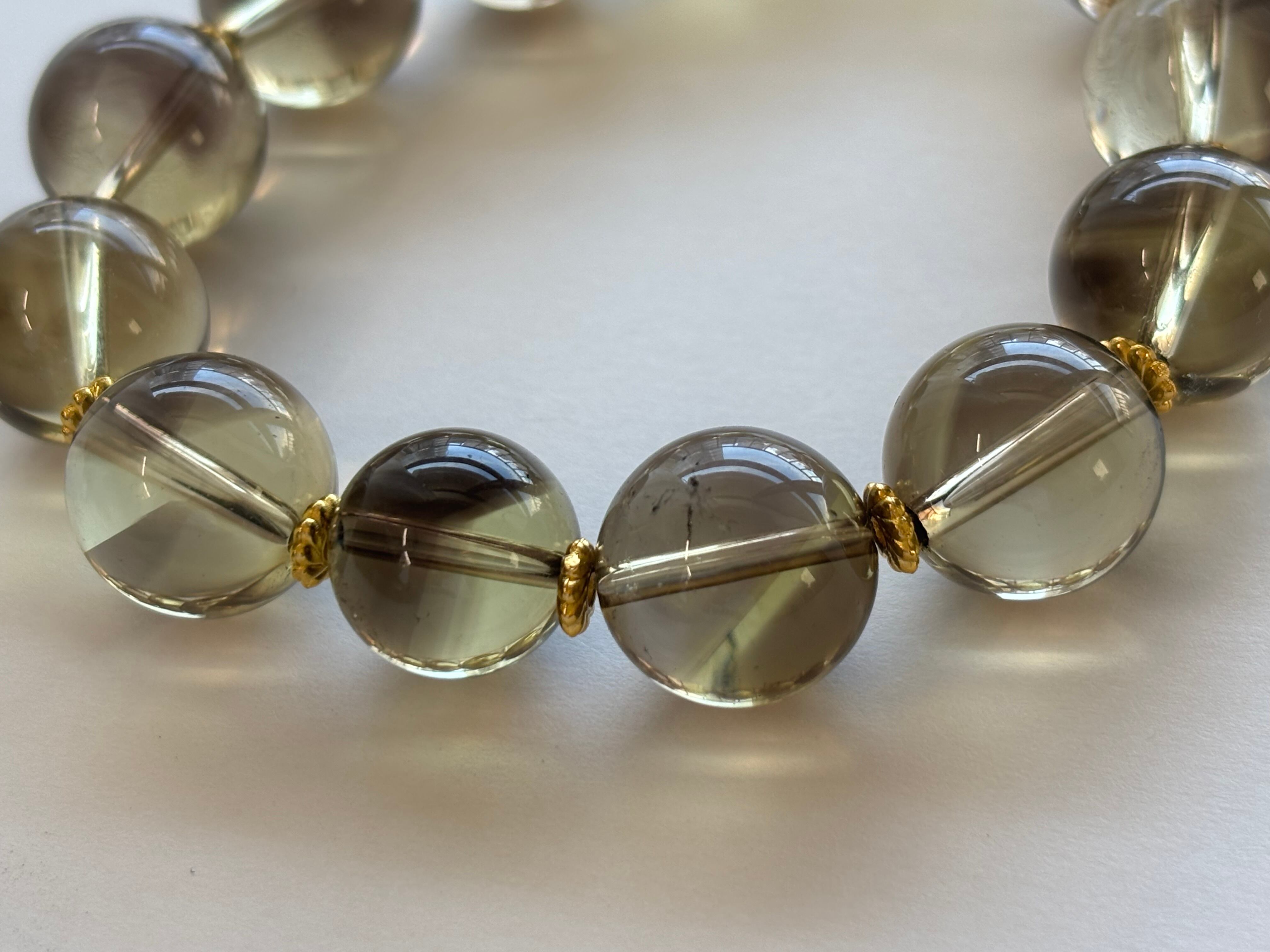 手彫りのリビアングラス回文殊をトップに、高品質なファントム入りスモーキーシトリンを組み合わせたブレスレット。