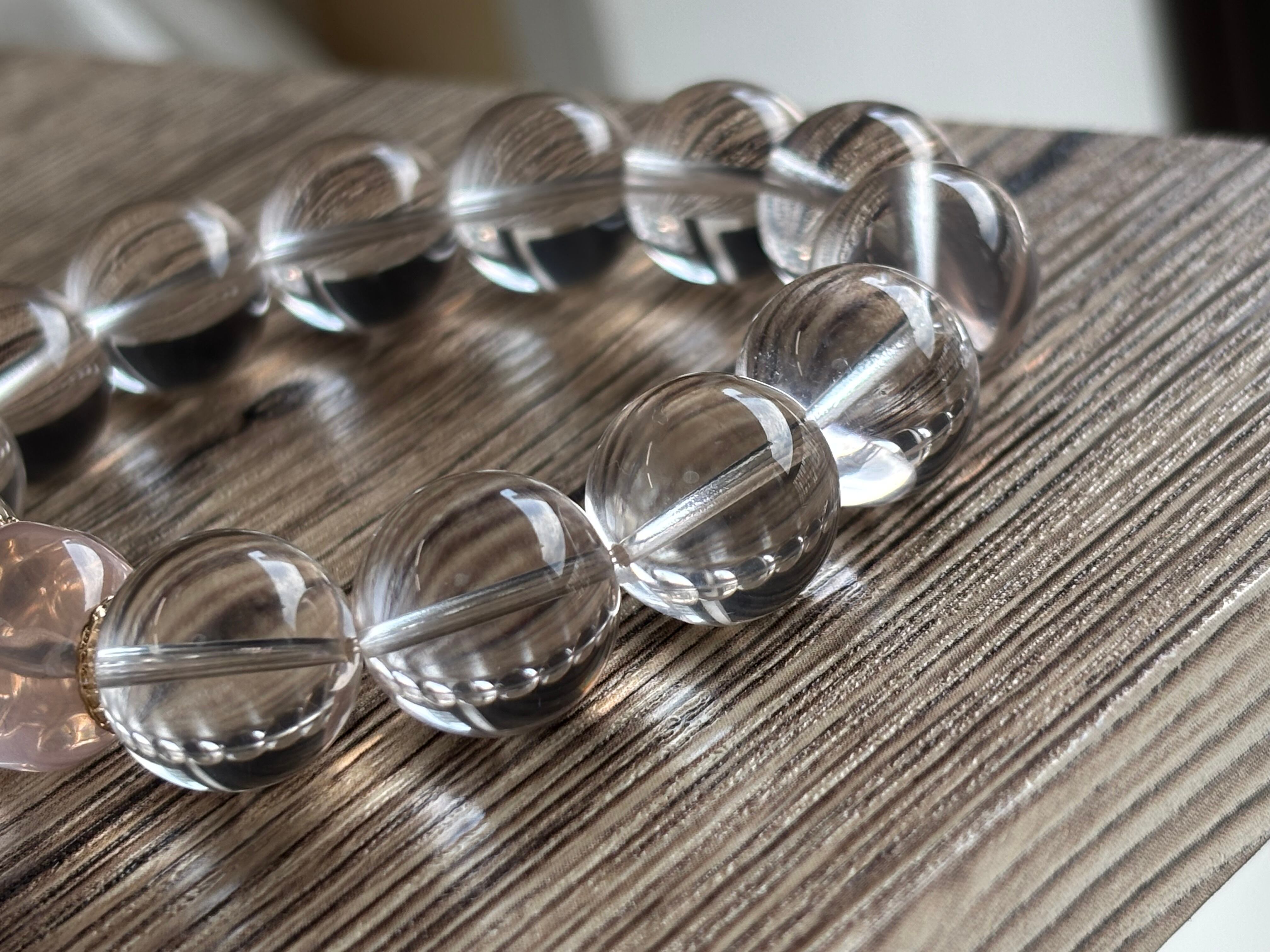 モザンビーク産のパイナップルカットが施された高品質ローズクォーツと、同じくモザンビーク産のダイアステリズムクォーツを組み合わせたブレスレット。
