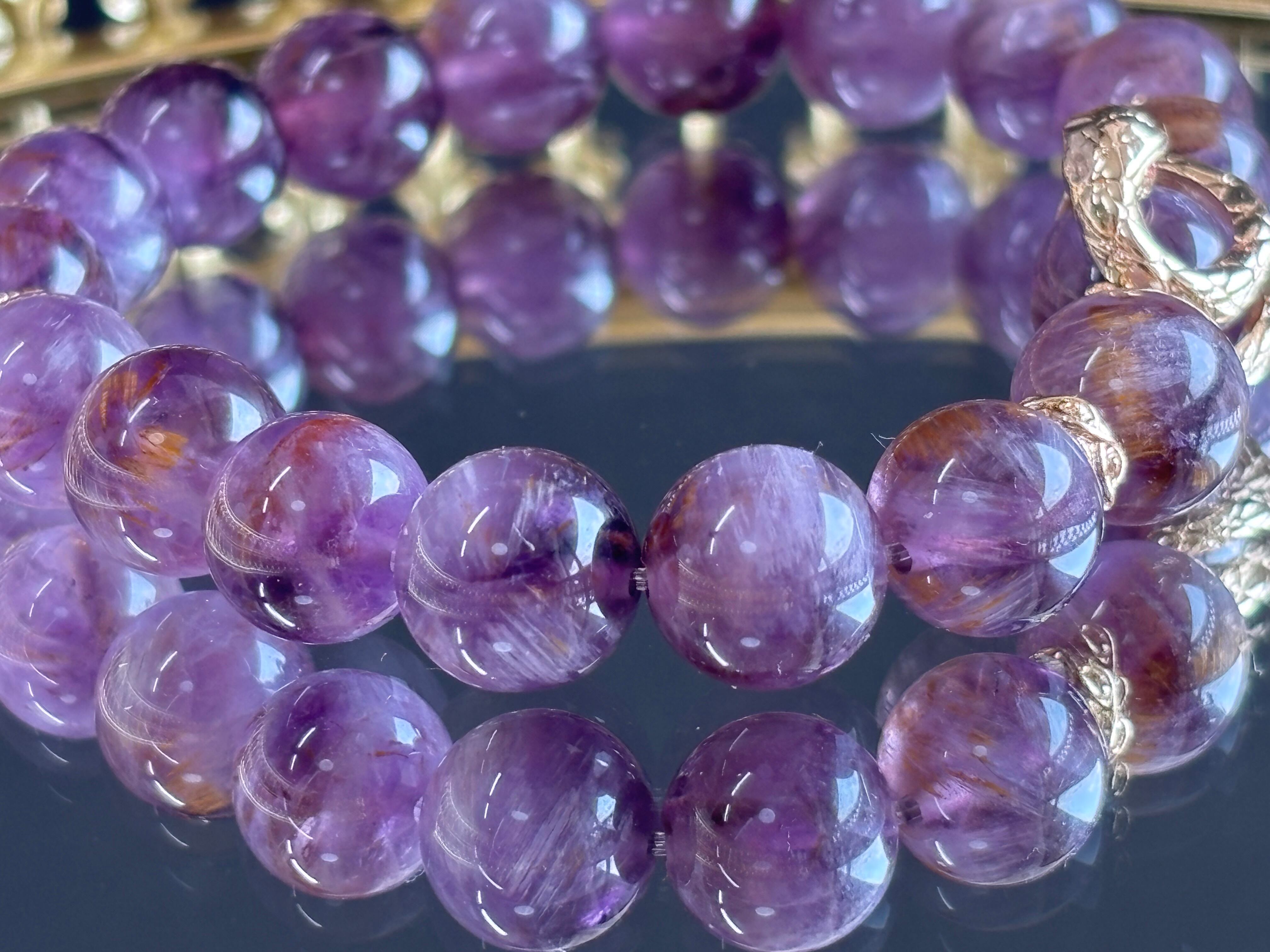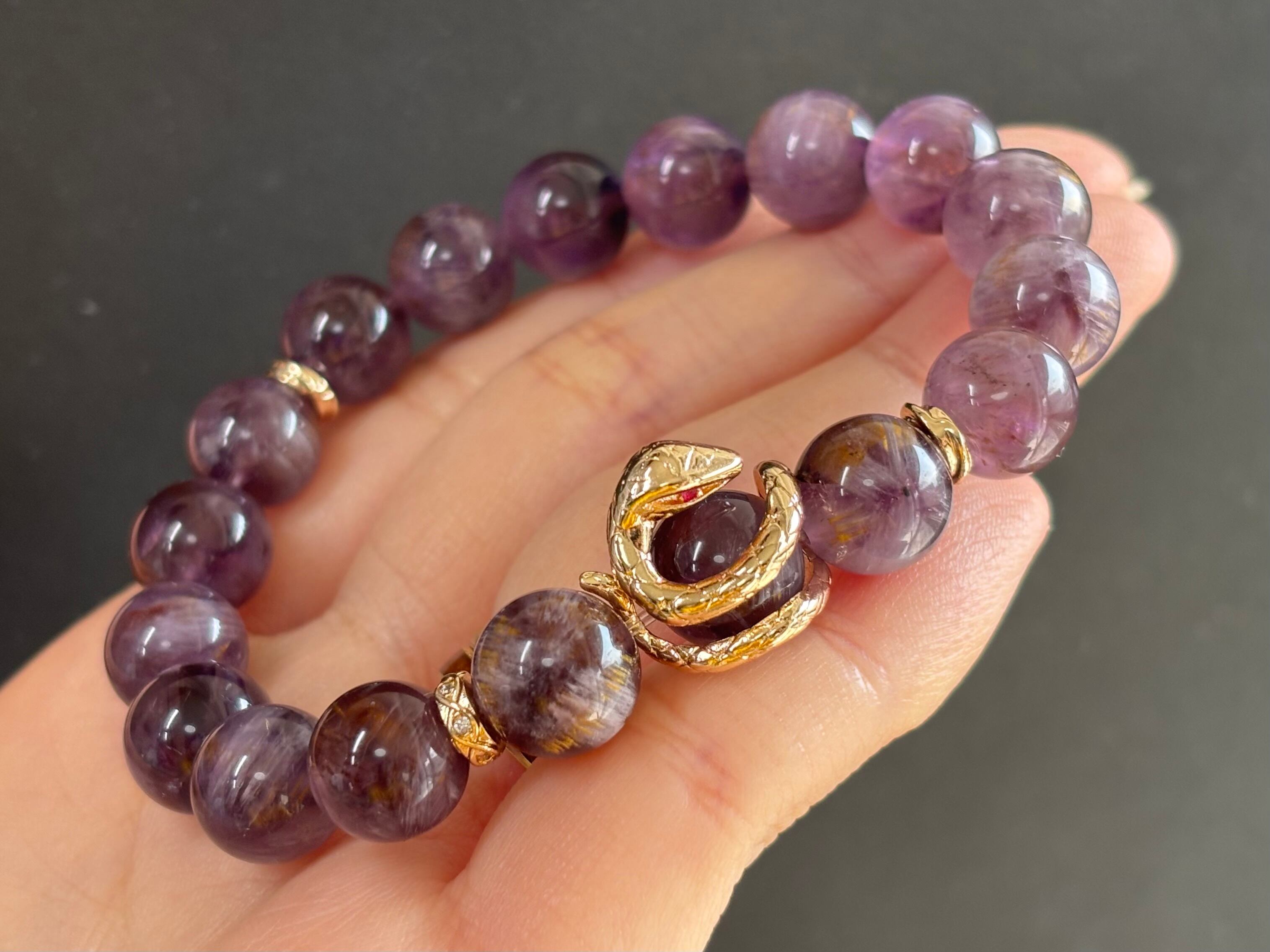 アメリカ産のフラワーアメジストをベースに、カコクセナイトやオーラライト23とも呼ばれるタイプのブレスレット。