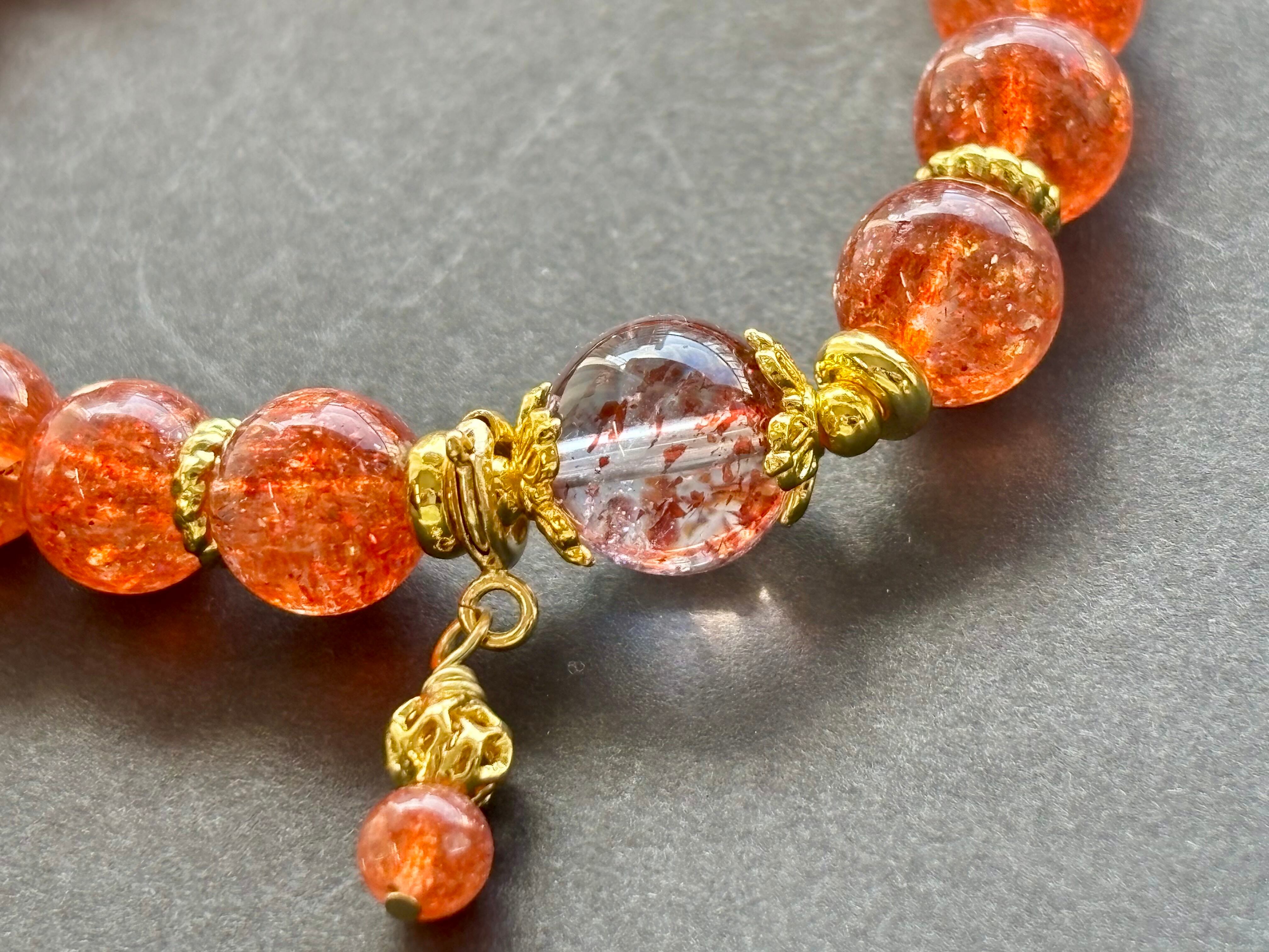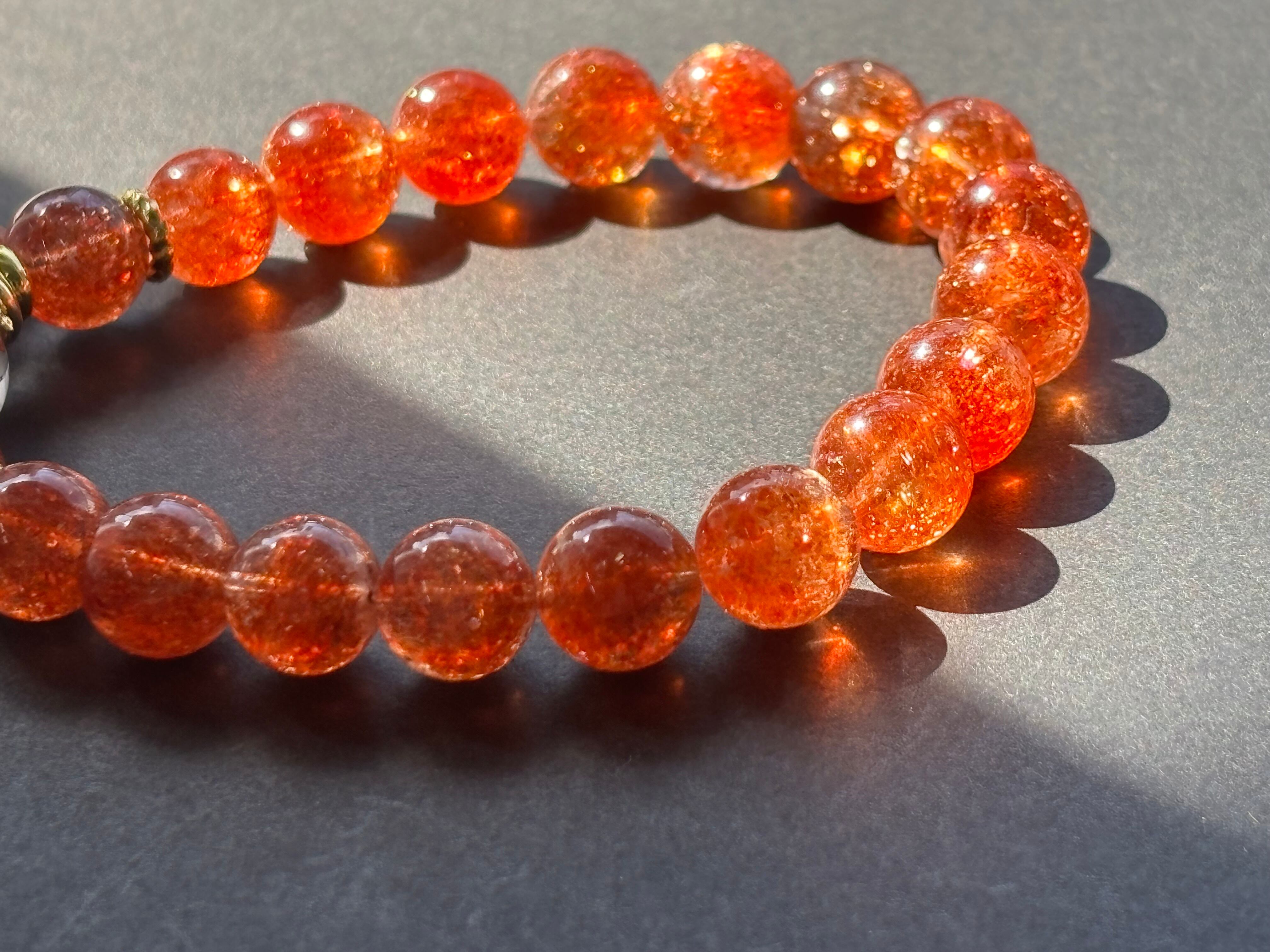 ファイヤークォーツとサンストーンを組み合わせたデザインブレスレットです。