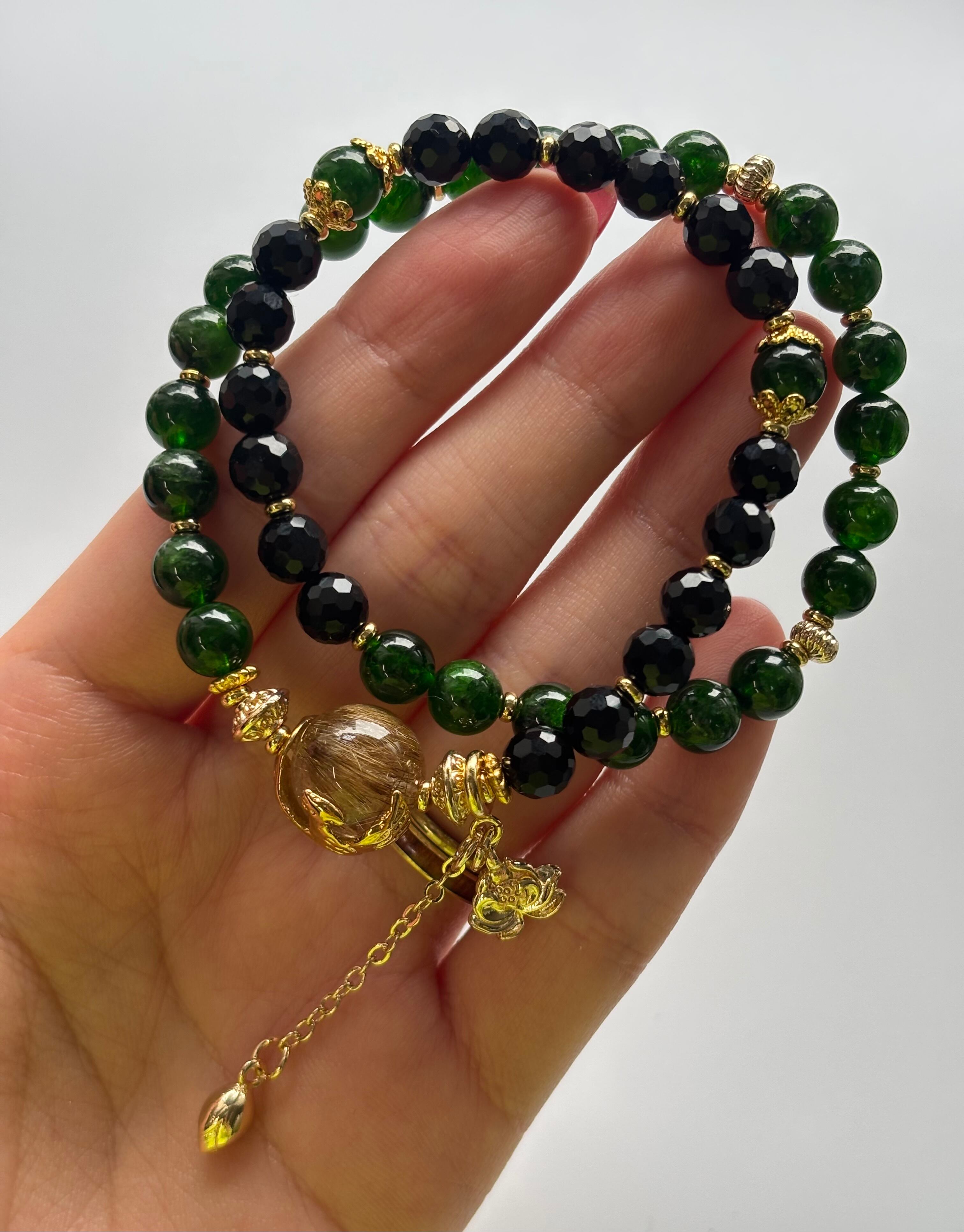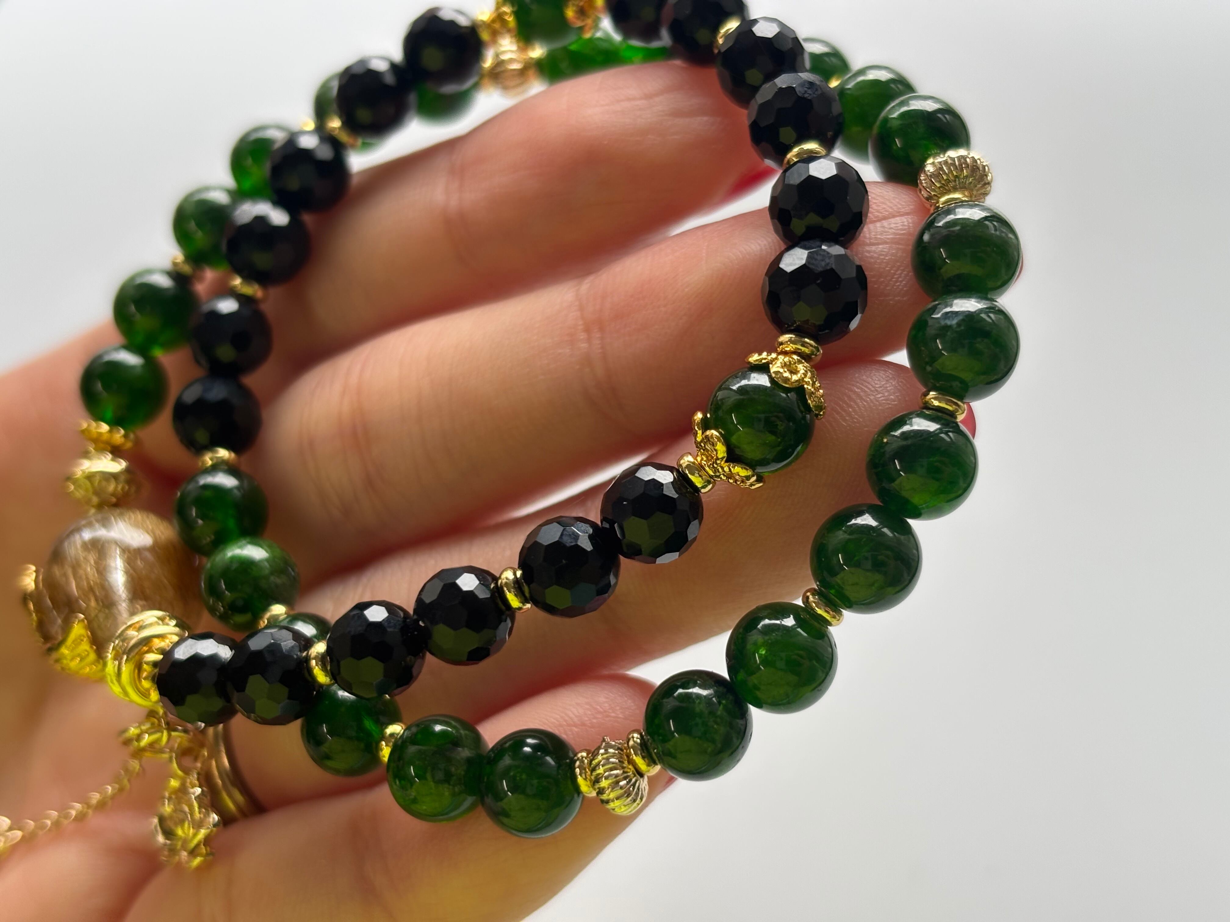 深い緑が美しいクロムダイオプサイトは、知恵と癒しの石とされ、