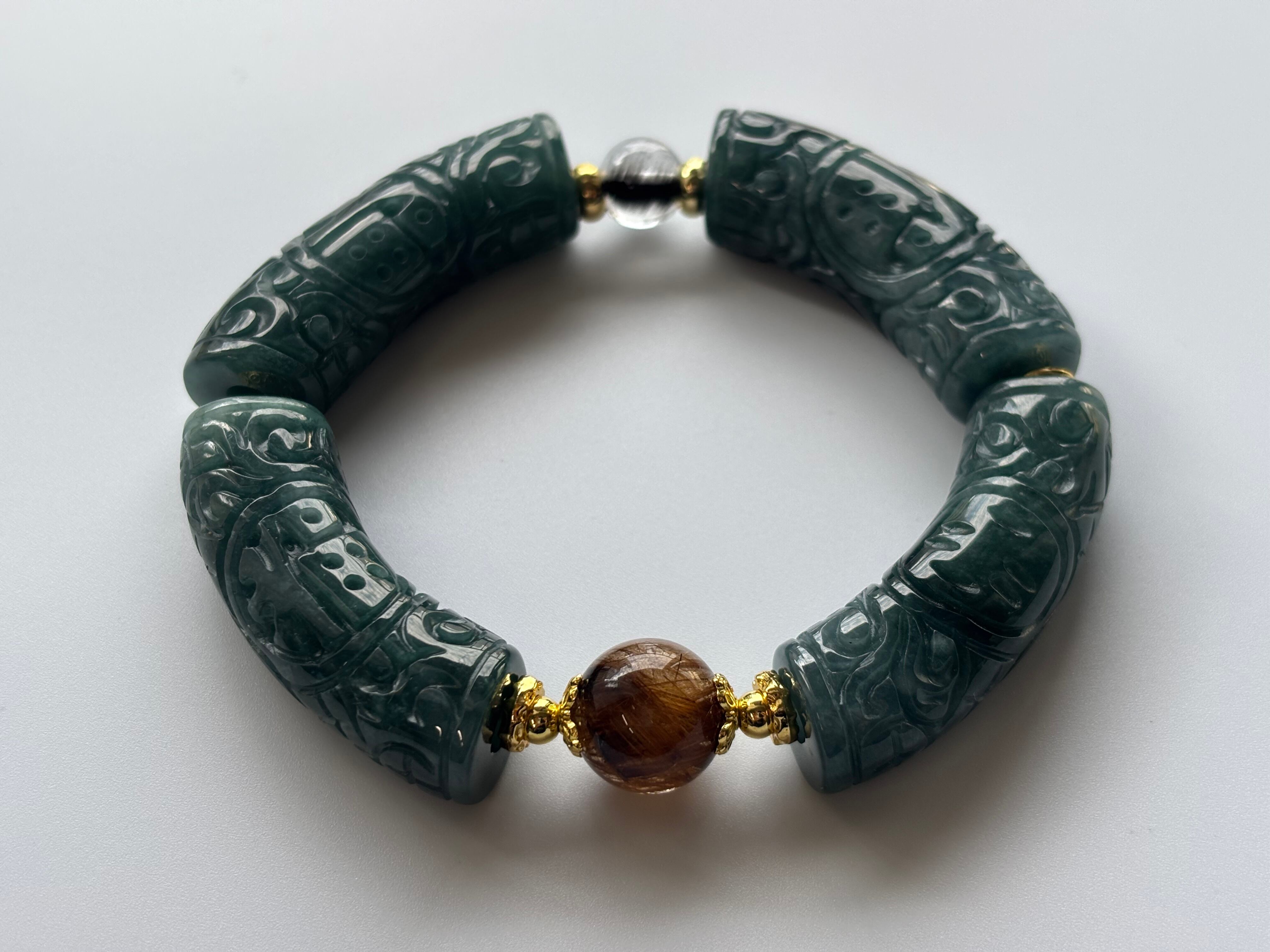 タイガールチル プラチナルチル グアテマラ産翡翠 デザインブレスレット