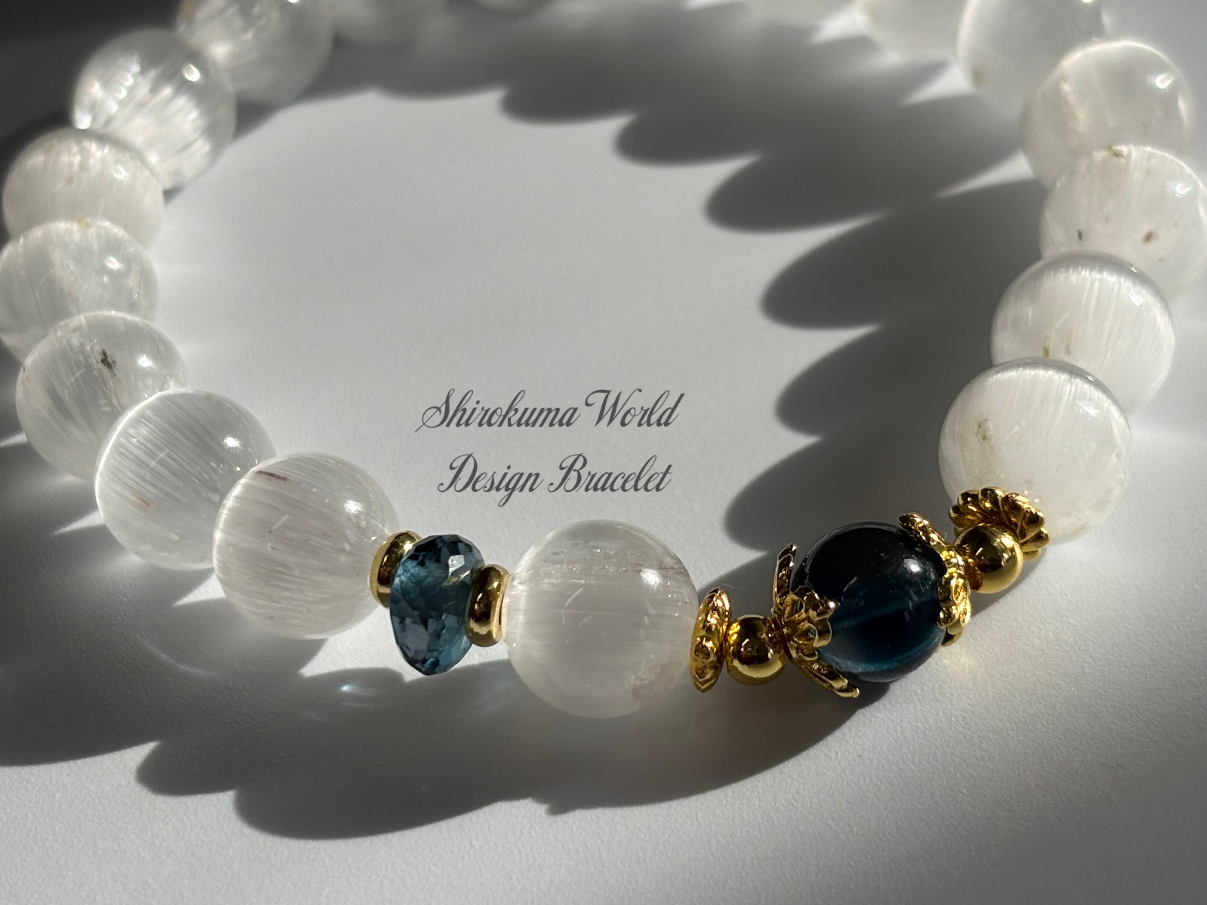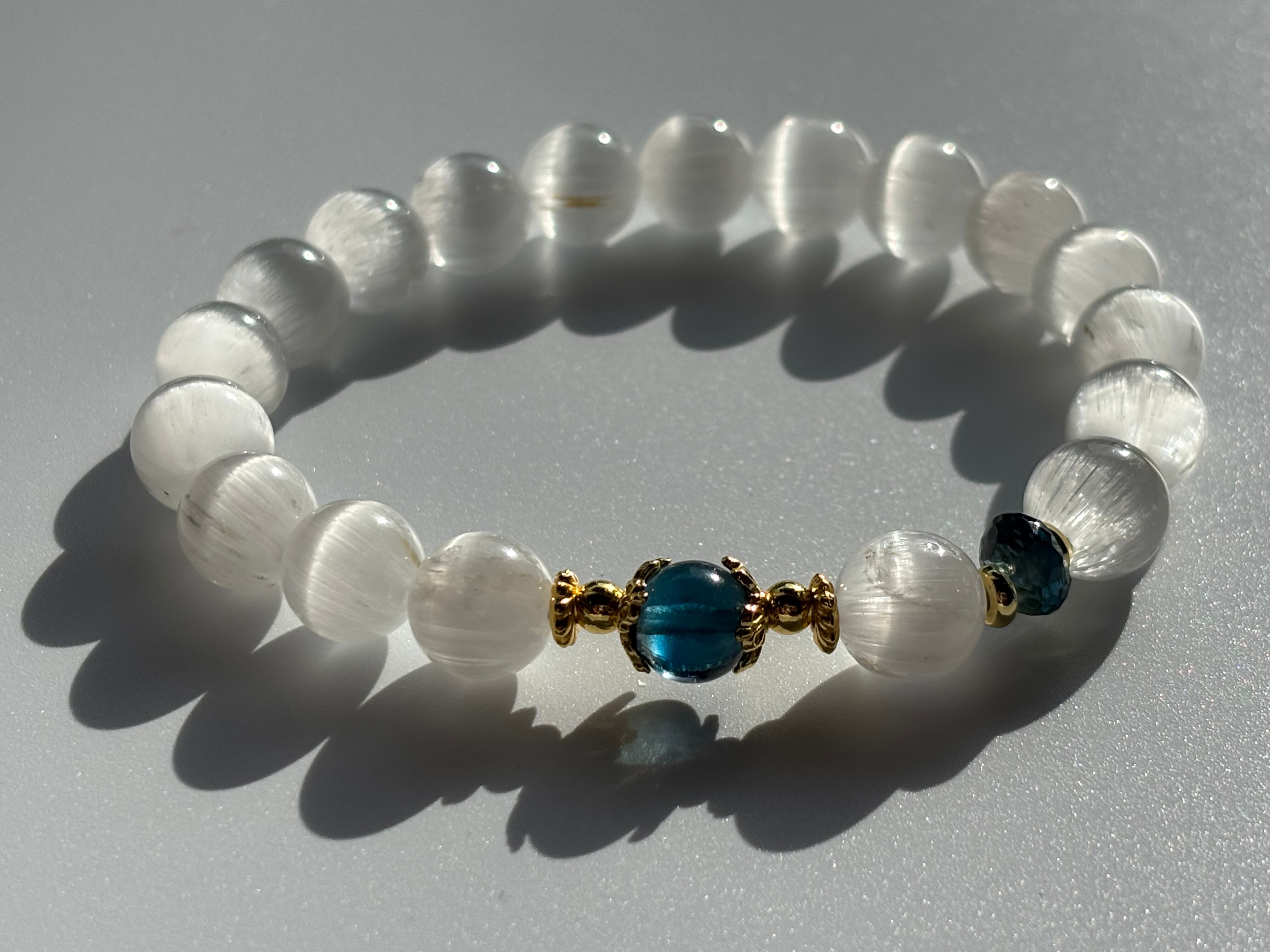 ロンドンブルートパーズとキャッツアイニードルイントパーズのブレスレット。