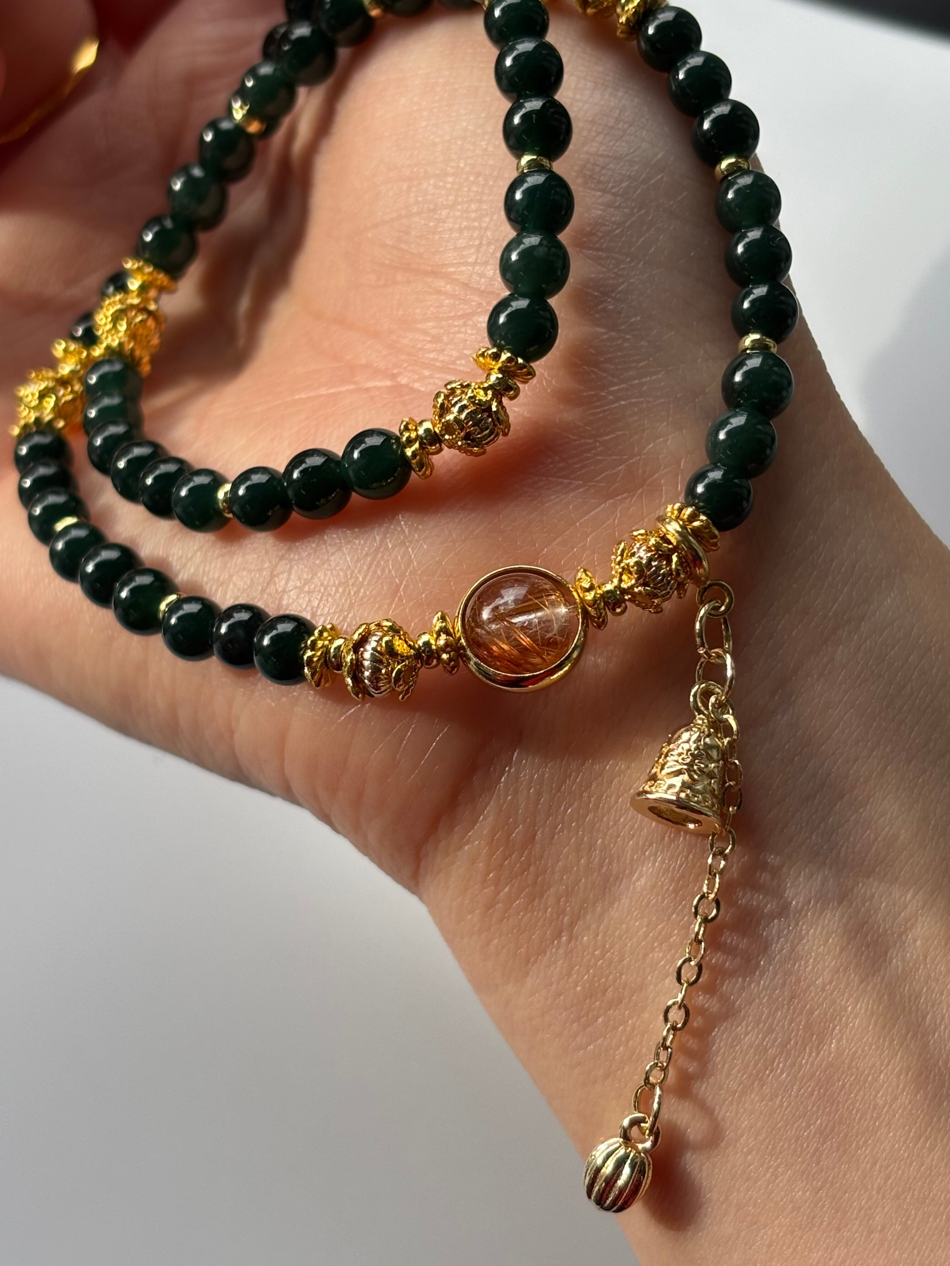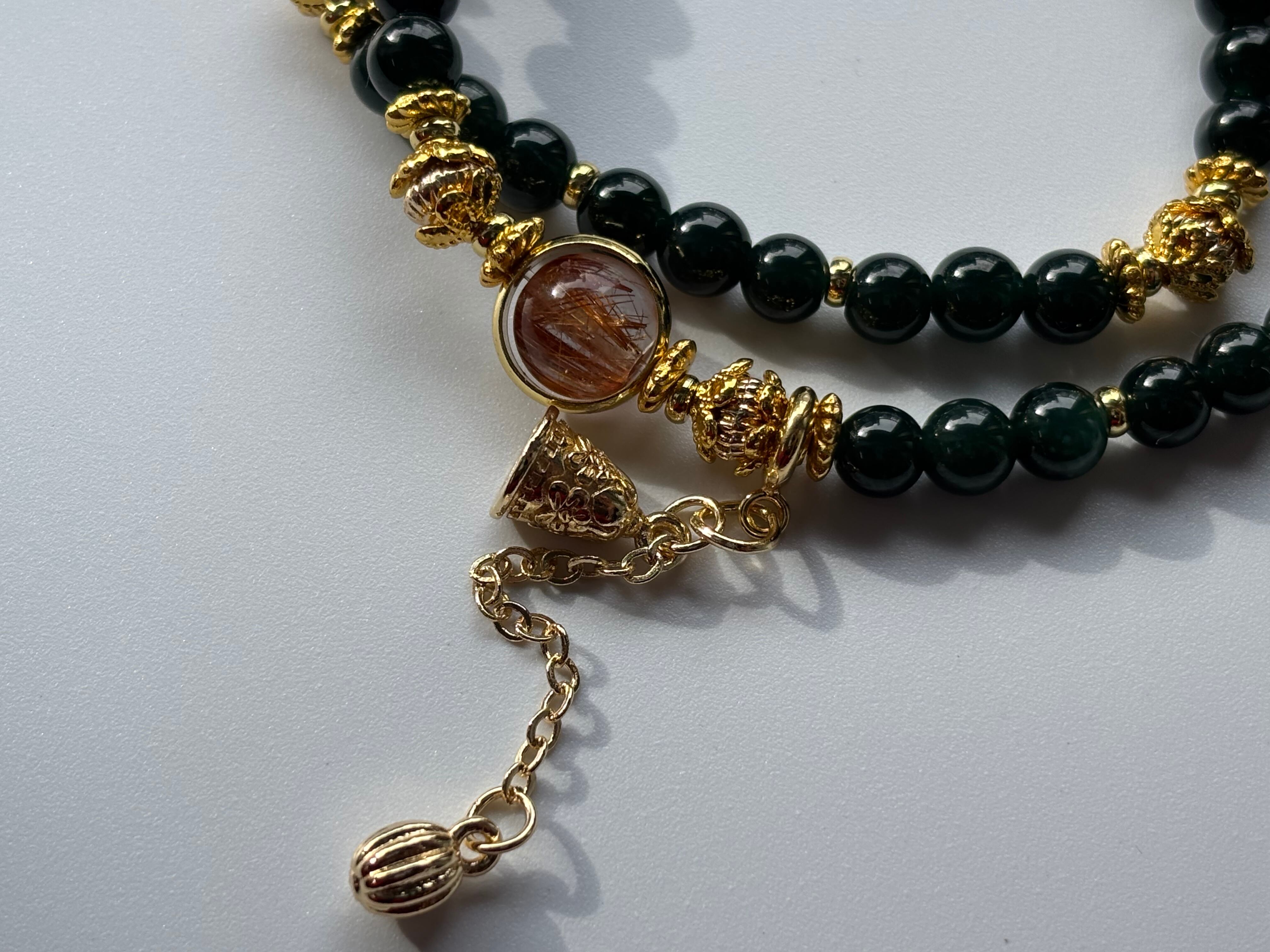 オレンジルチル グアテマラ翡翠 2連デザインブレスレット
