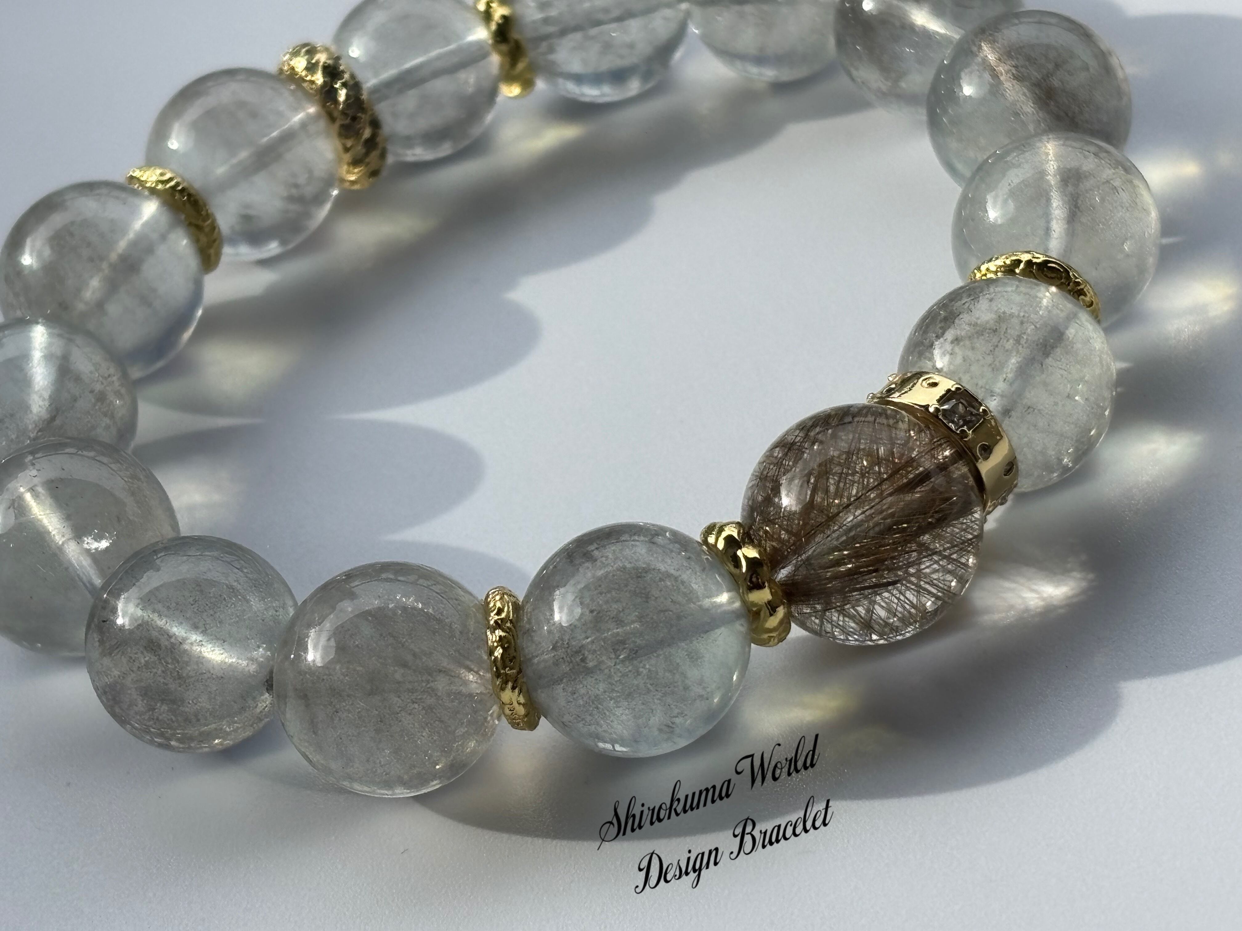 高品質 シルバールチル グレーアクアマリン デザインブレスレット