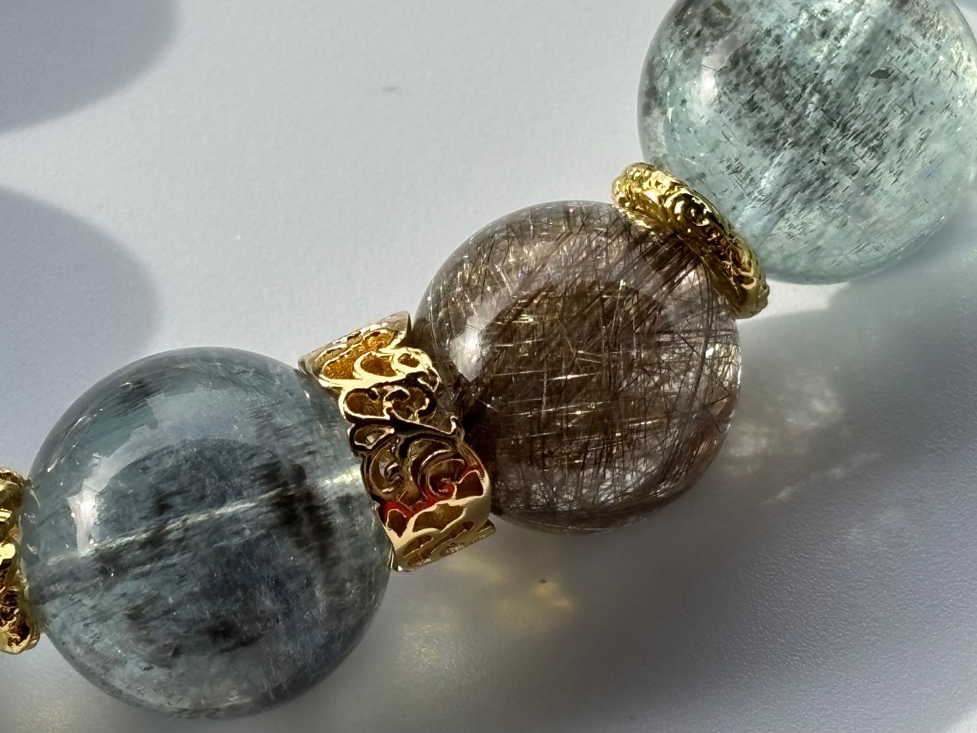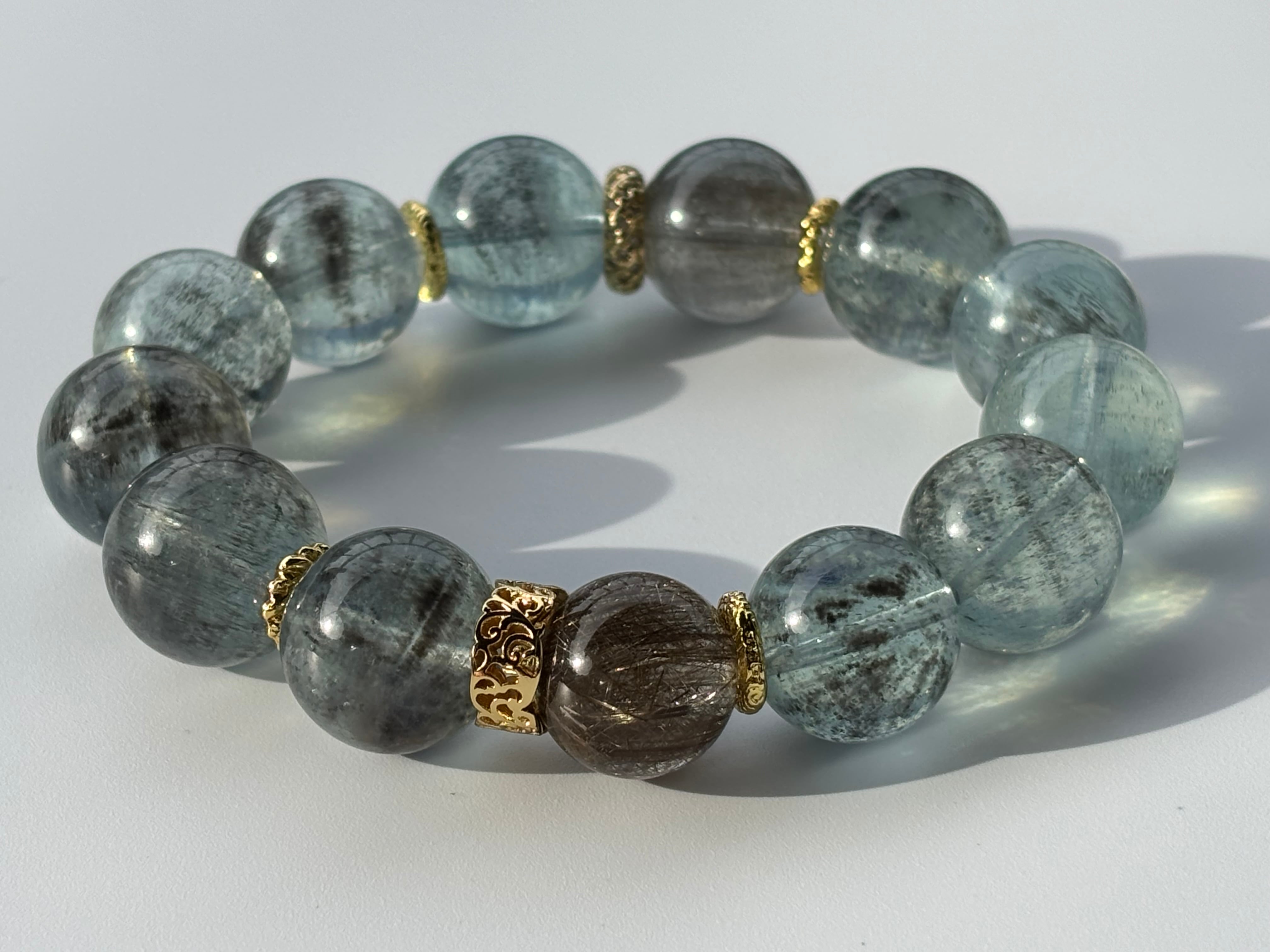 シラーが全体に美しく浮かぶモスアクアマリンを組み合わせたブレスレット。