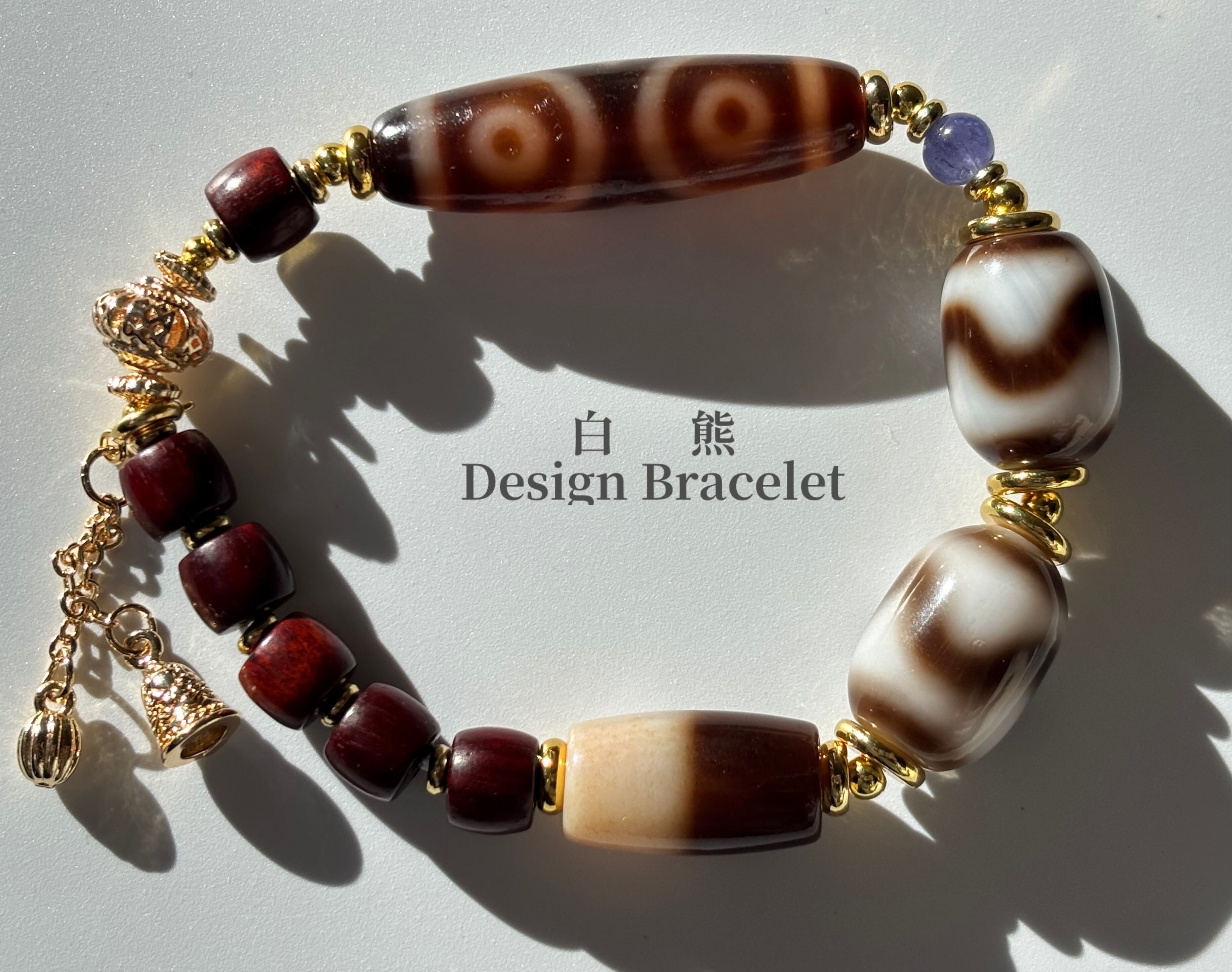 風化三眼天珠 × 虎牙天珠 × 白黒天珠 × 紫檀 × タンザナイト お守りブレスレット