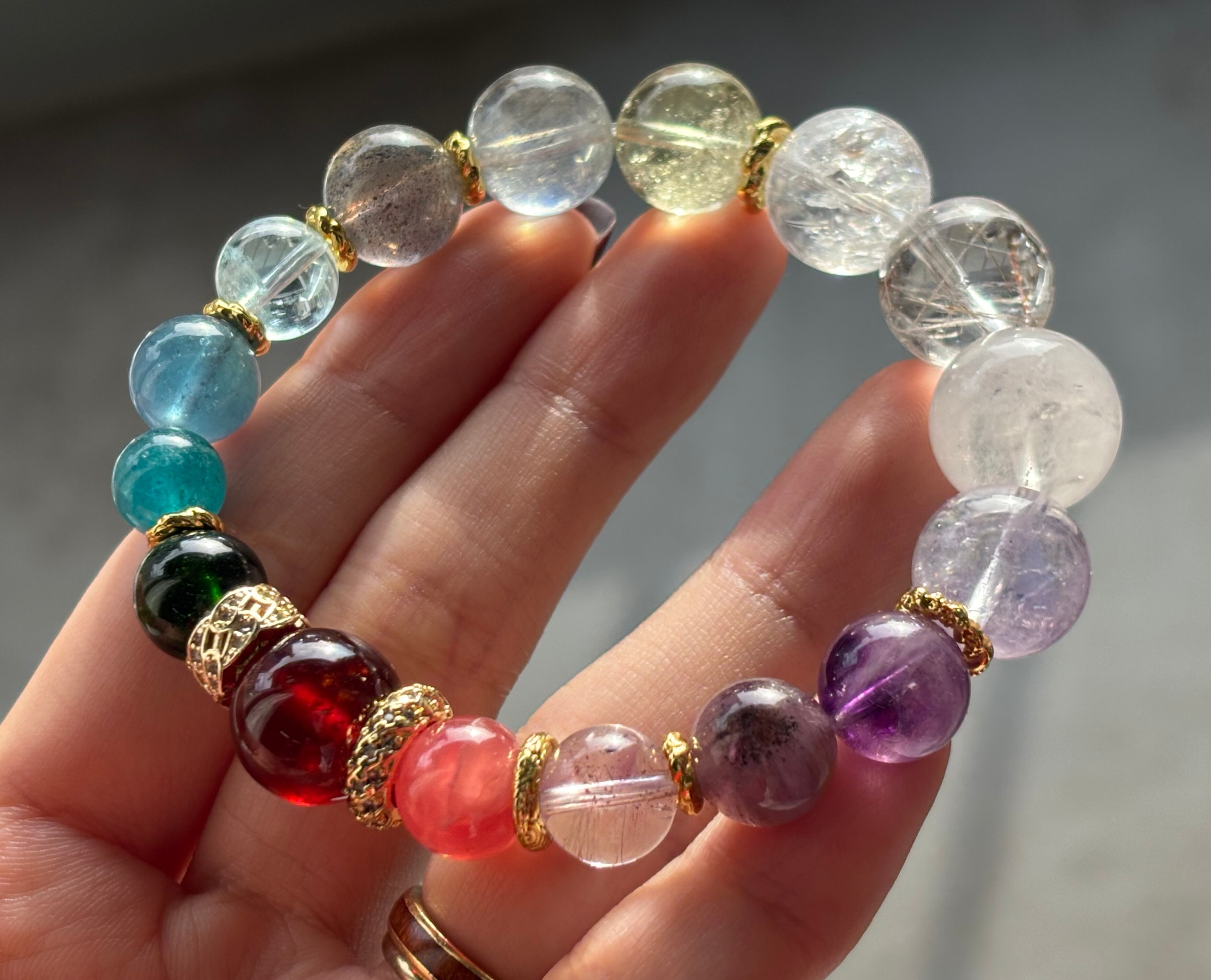 高品質な粒を集めて作ったレインボーブレスレットです♫