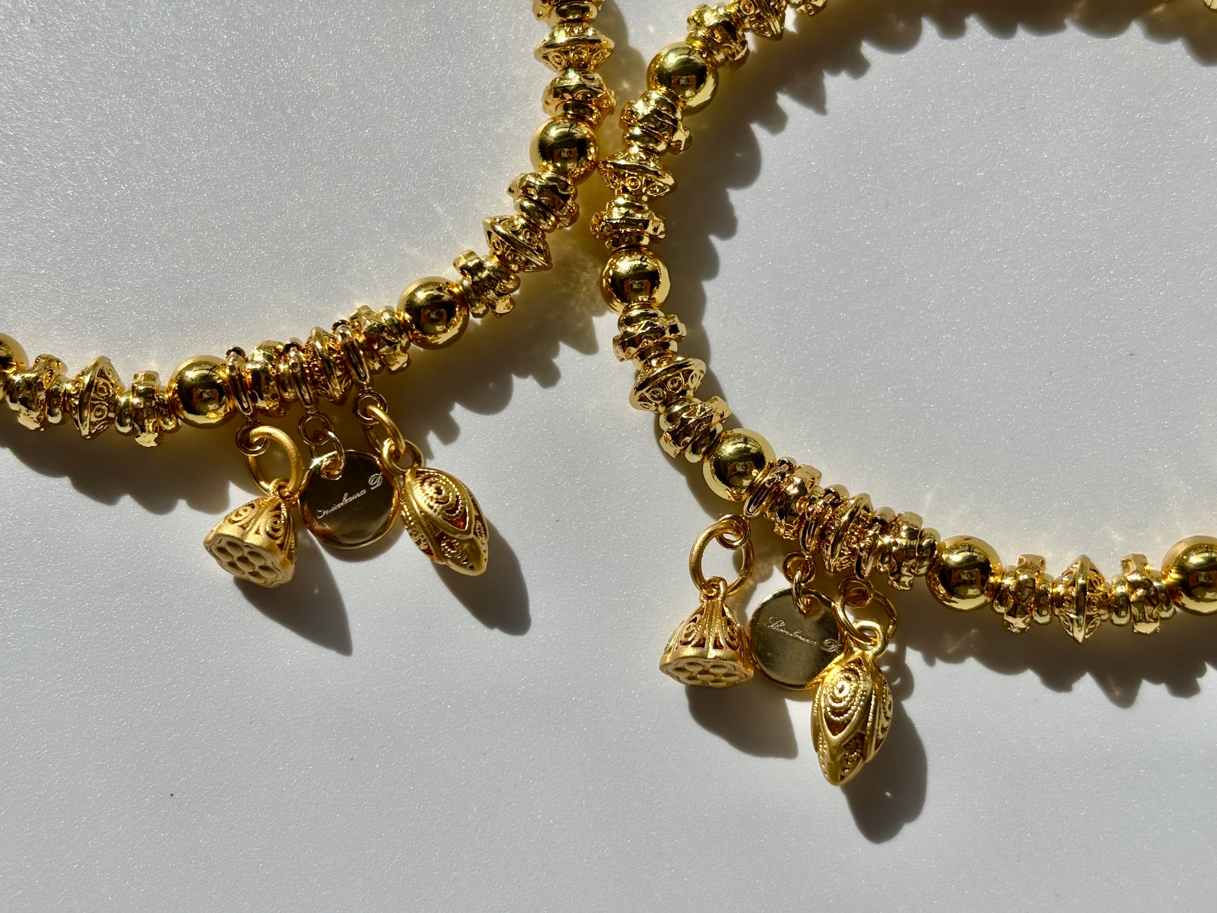 一般的なメッキよりも金の割合が多いため、色持ちの良さや、金らしい上品な輝きを長く楽しめる点が魅力とされています。