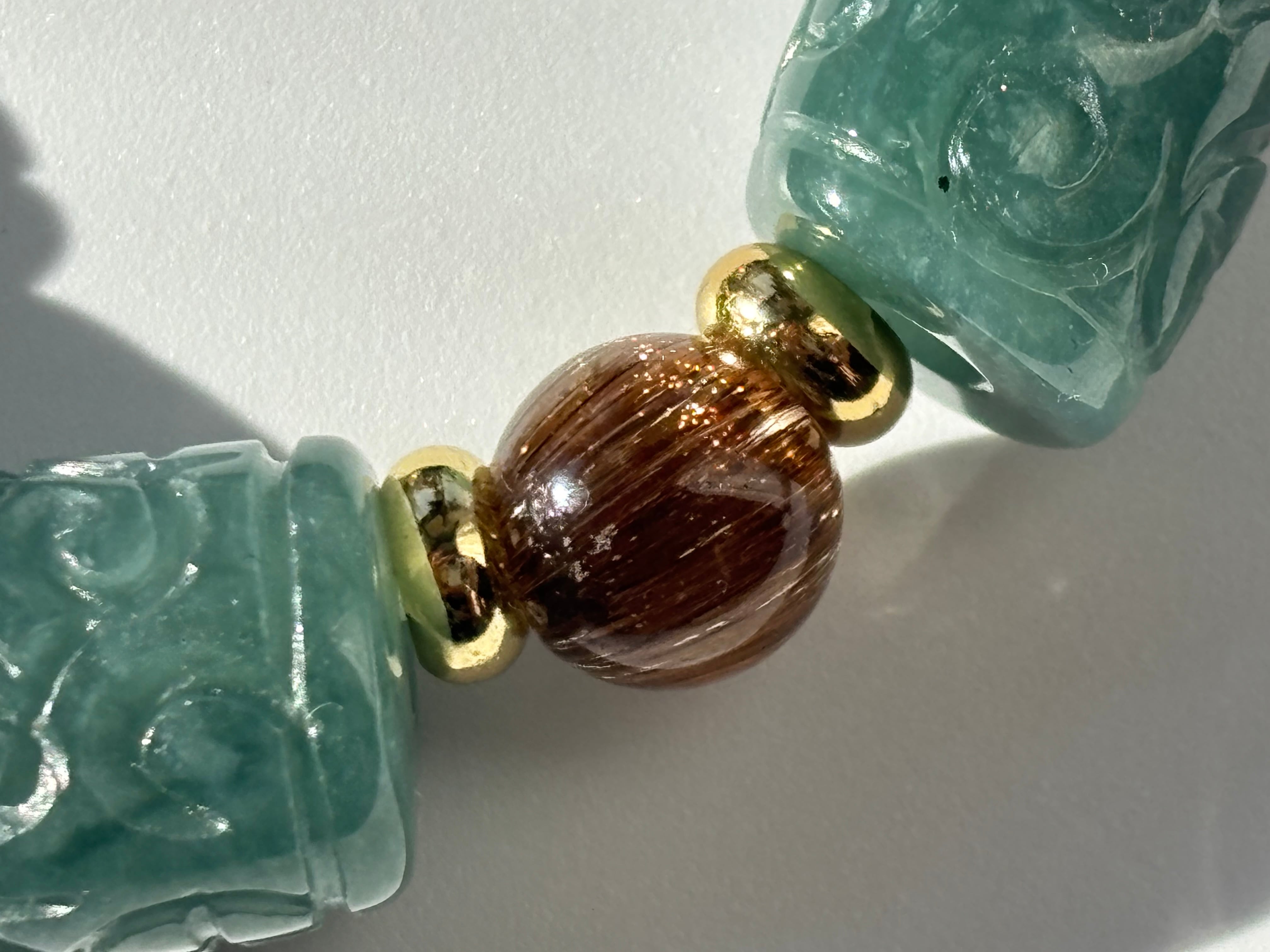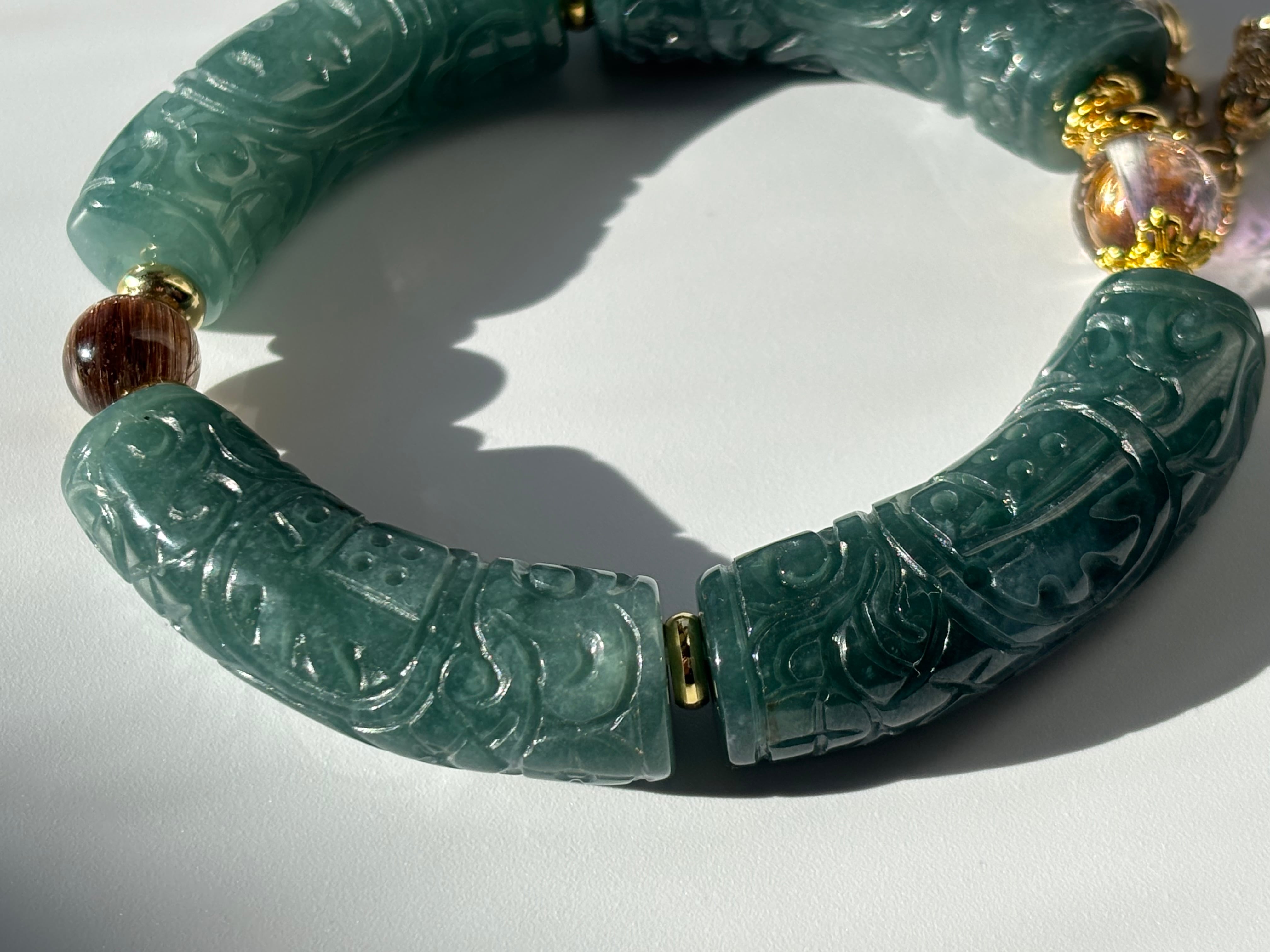 高品質 スーパーセブンアメジスト ブラウンキャッツアイルチル グアテマラ翡翠 デザインブレスレット