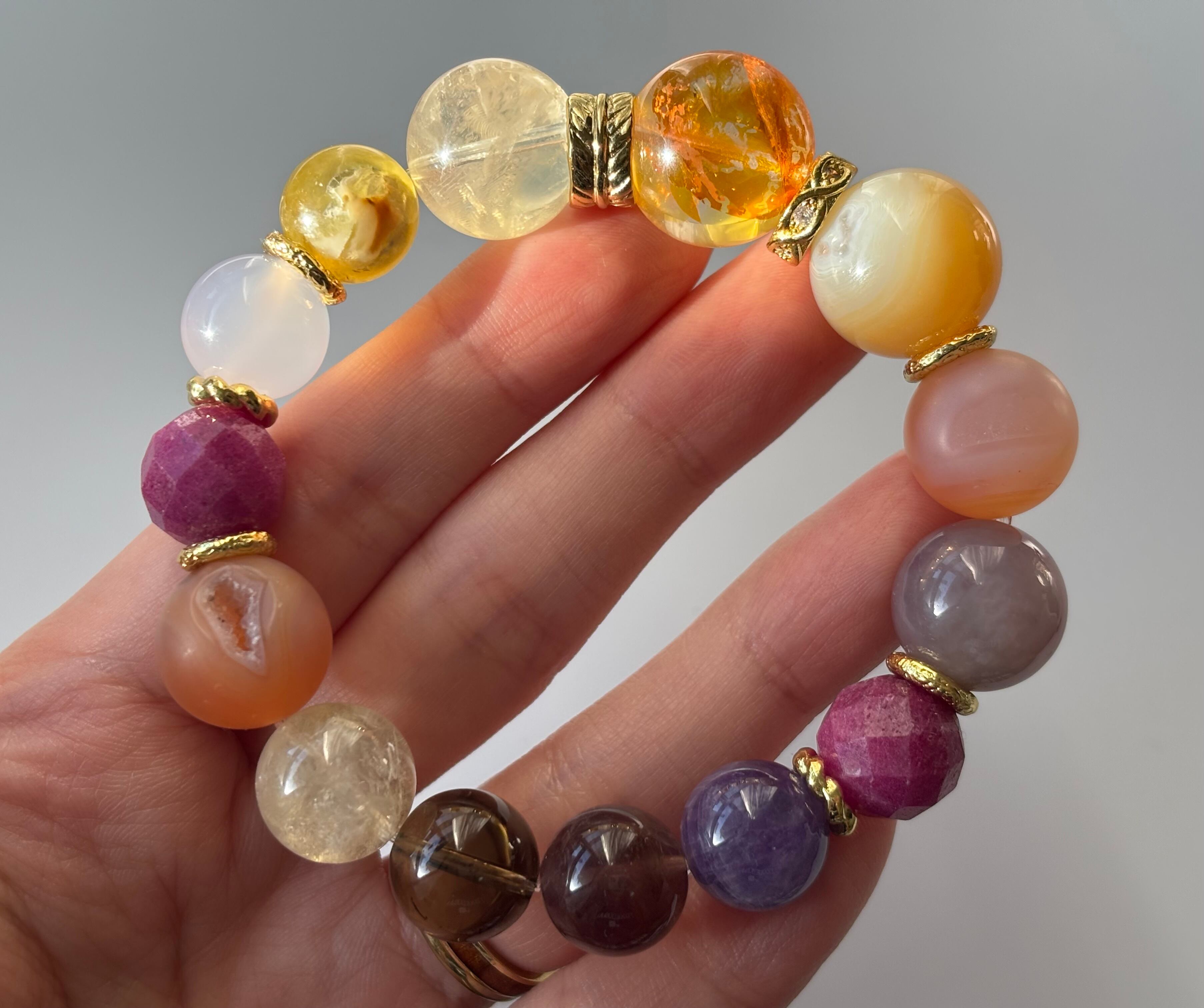 個性的な粒を集めた癖強レインボーブレスレット。