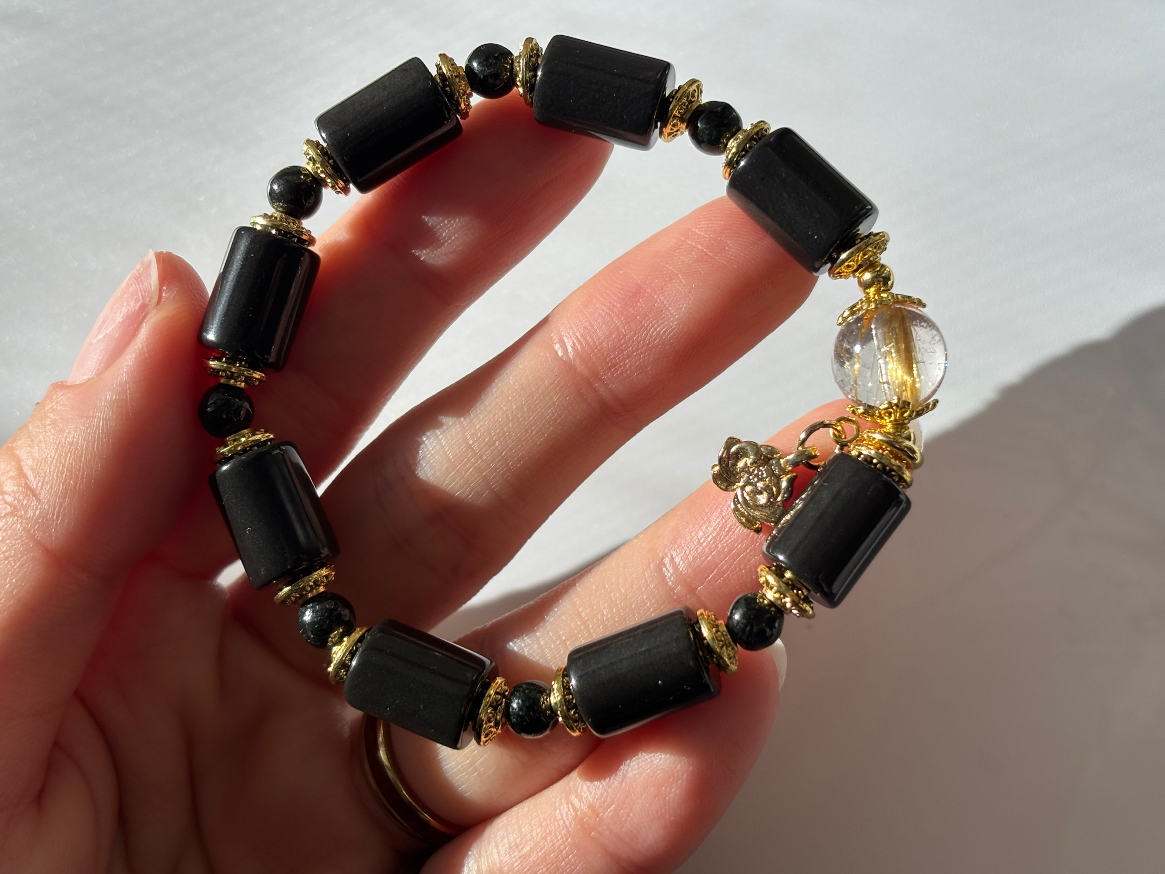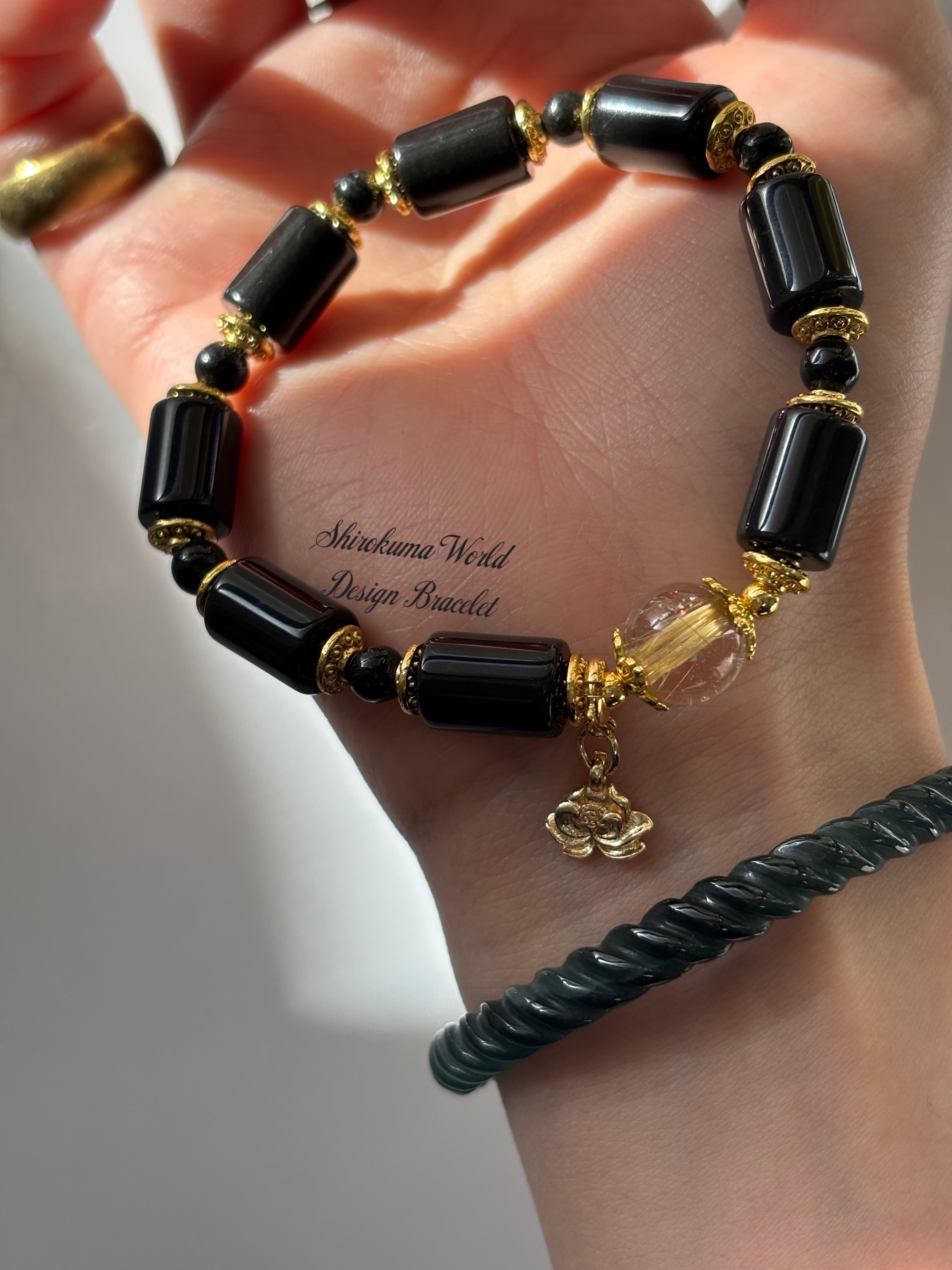 ルチルクォーツ ミャンマー産 黒翡翠 デザインブレスレット