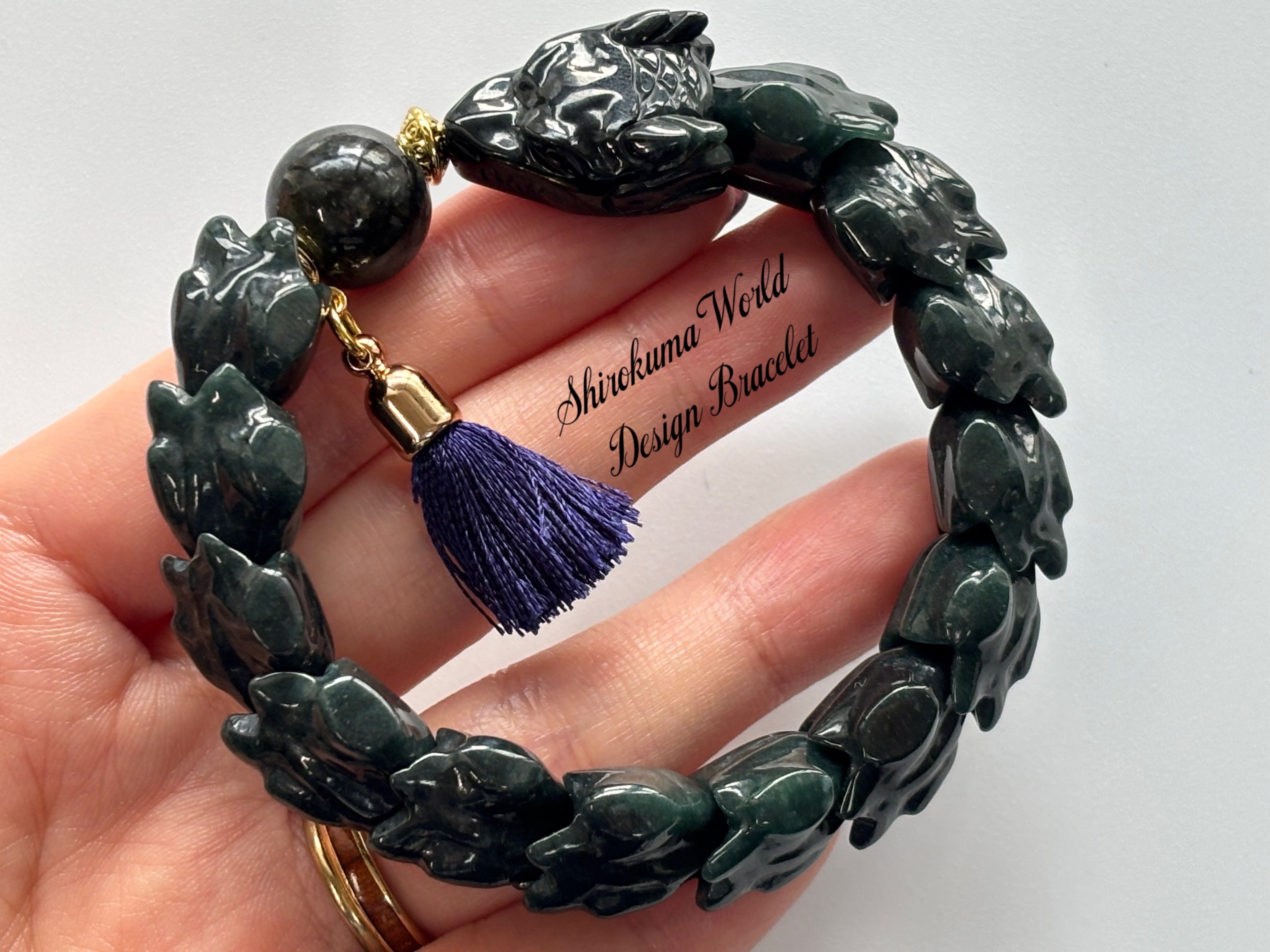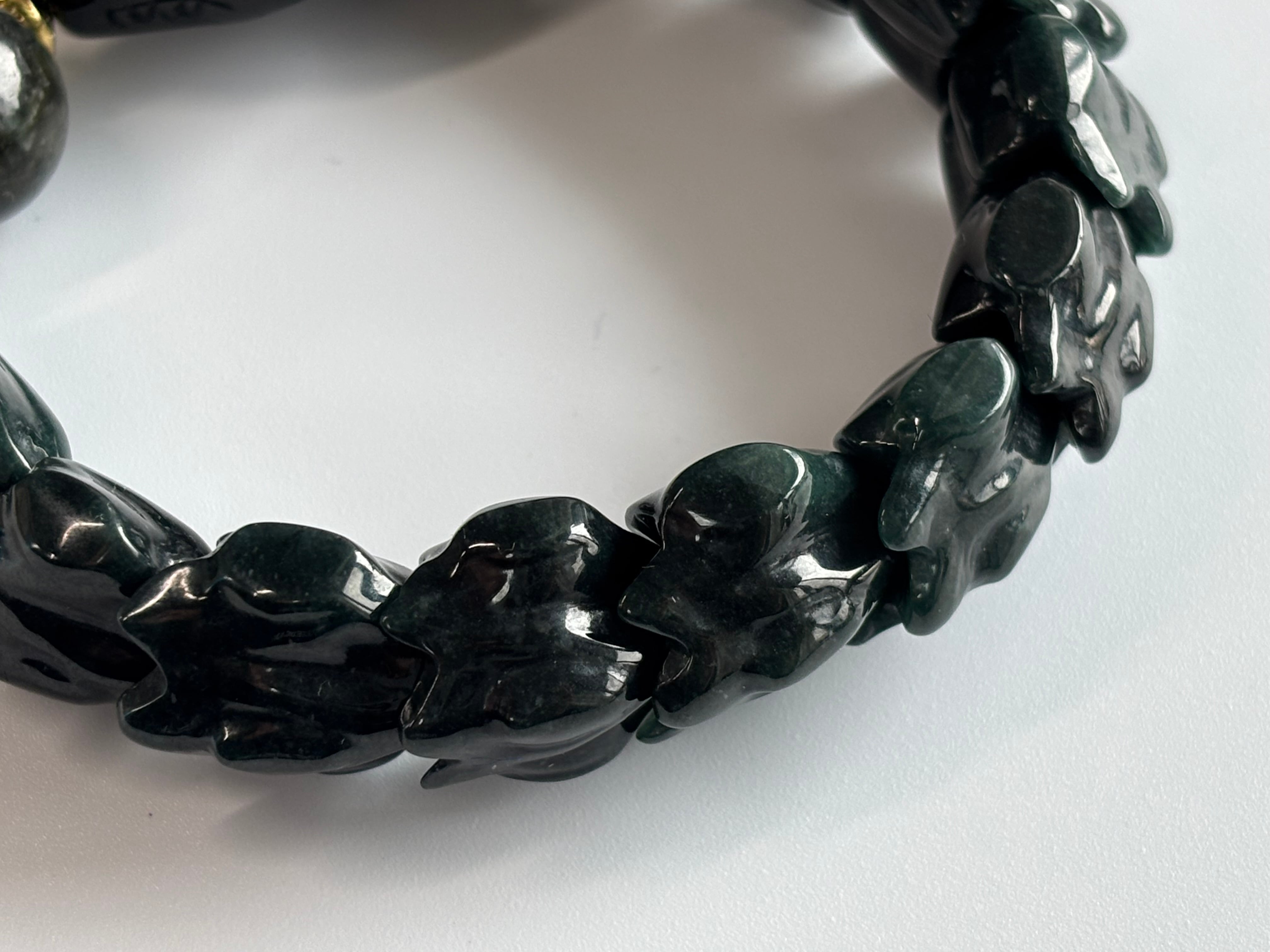 高品質 ミャンマー産地 黒翡翠 龍 デザインブレスレット
