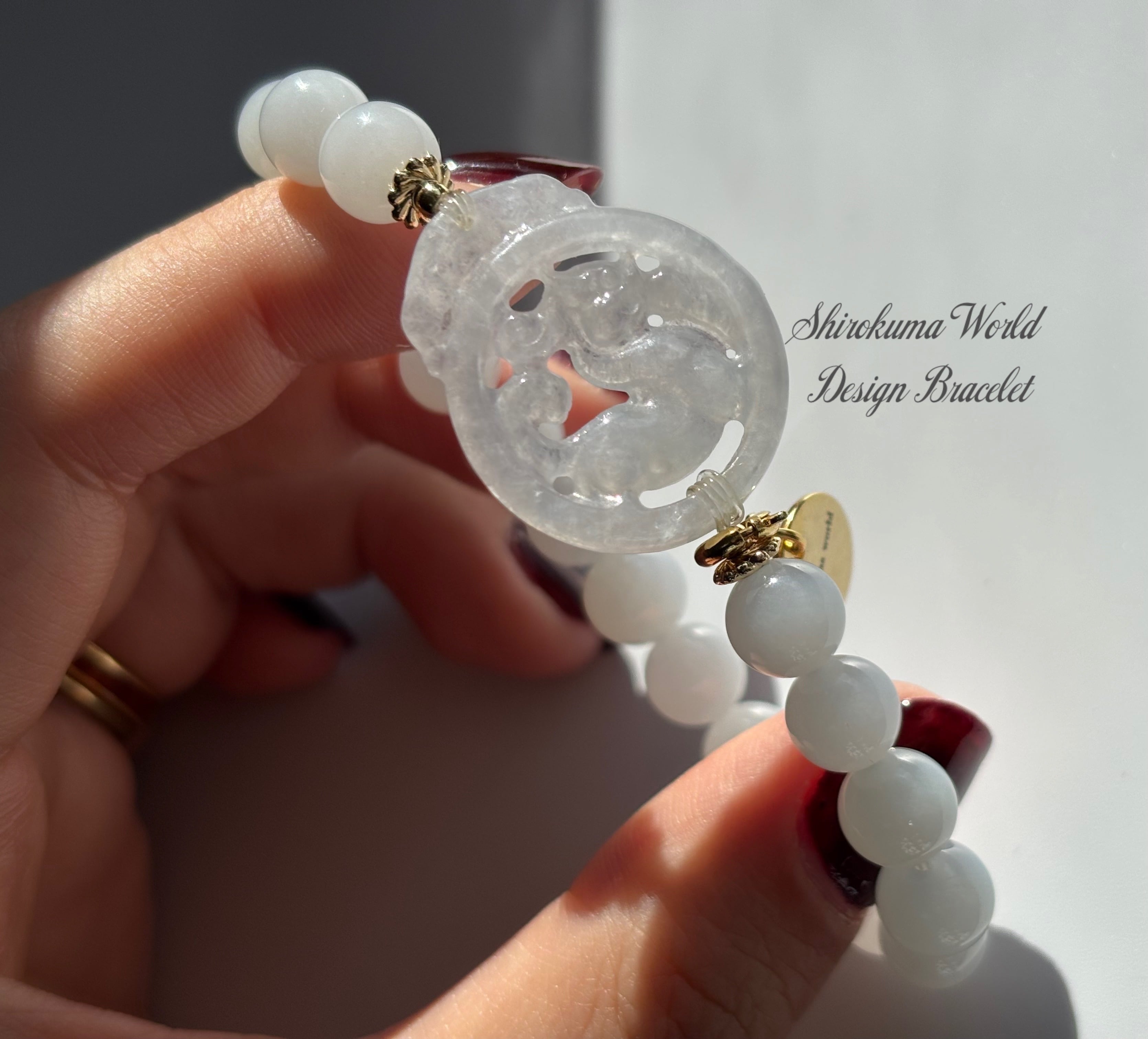 高品質 ミャンマー産地 純白 白翡翠 麒麟 デザインブレスレット