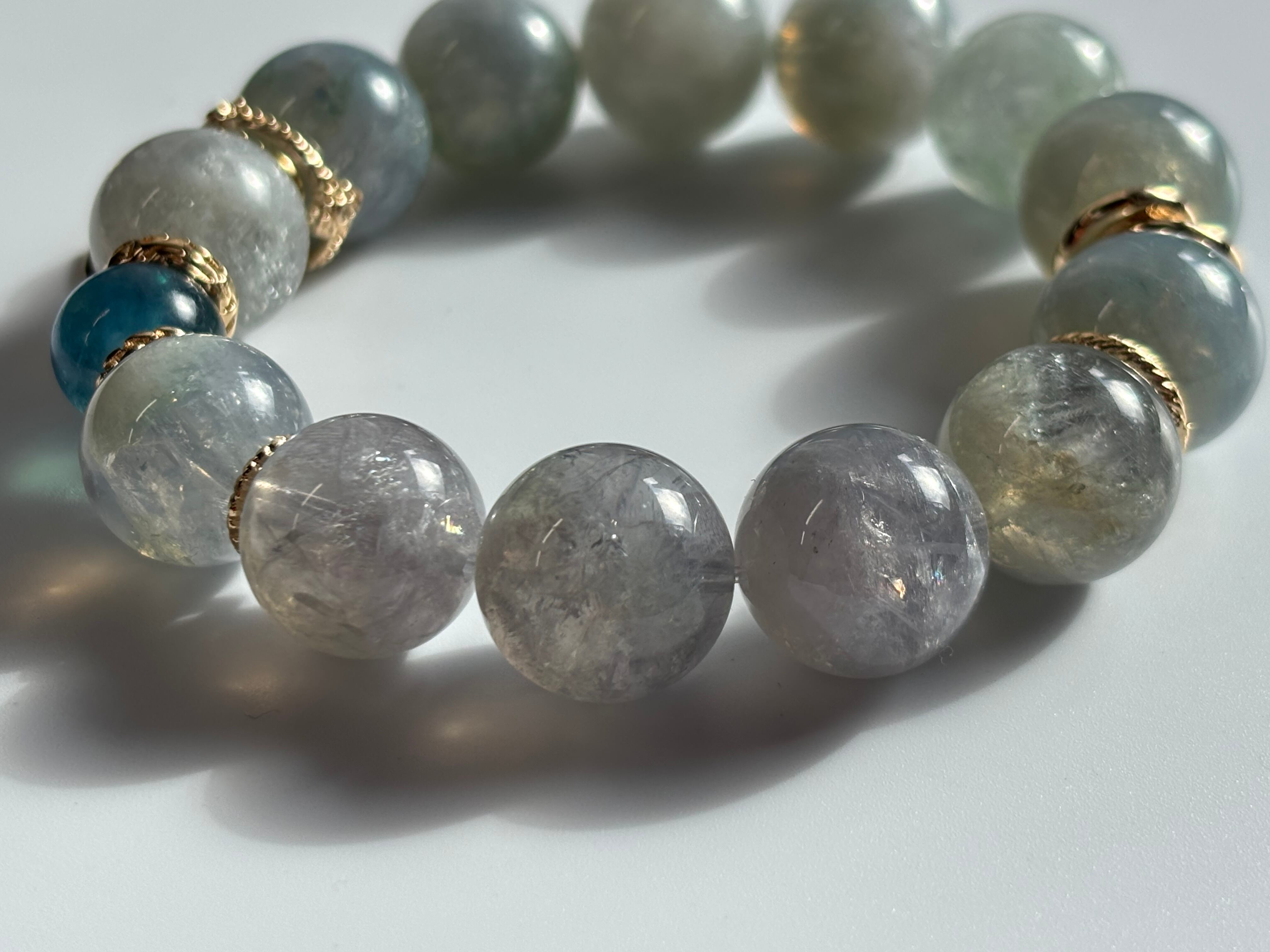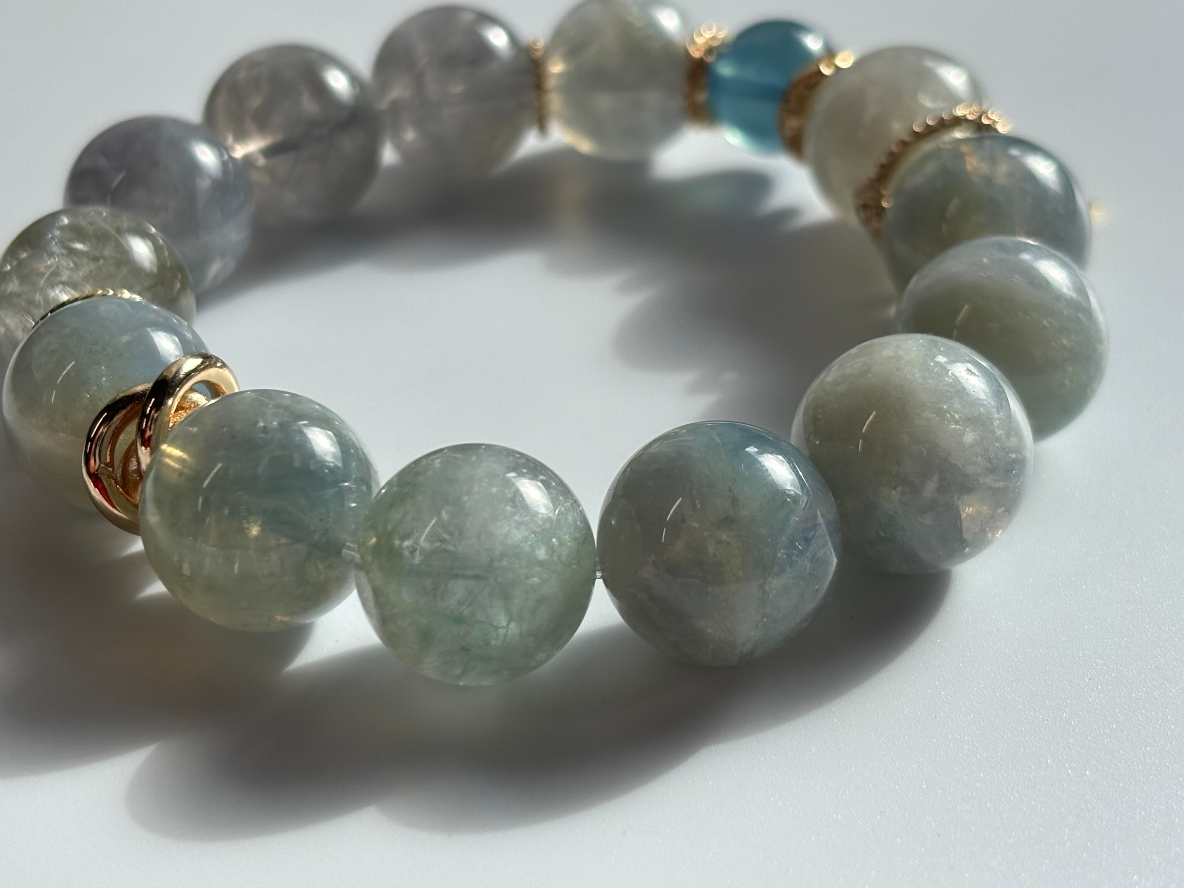 アクアマリンは、コミュニケーションをスムーズにすると言われ、スコロライトとの組み合わせは落ち着いた印象の相性とされています。