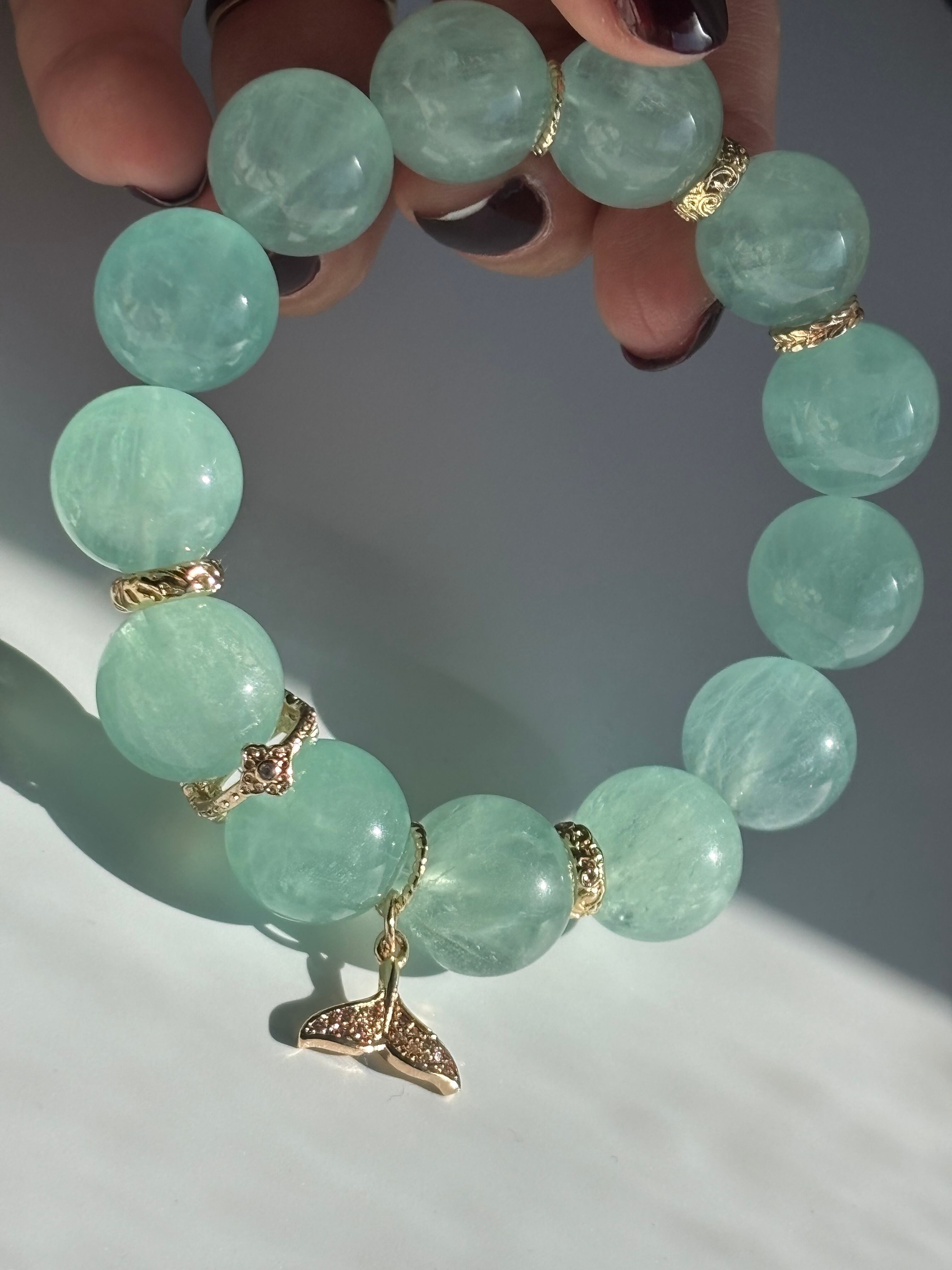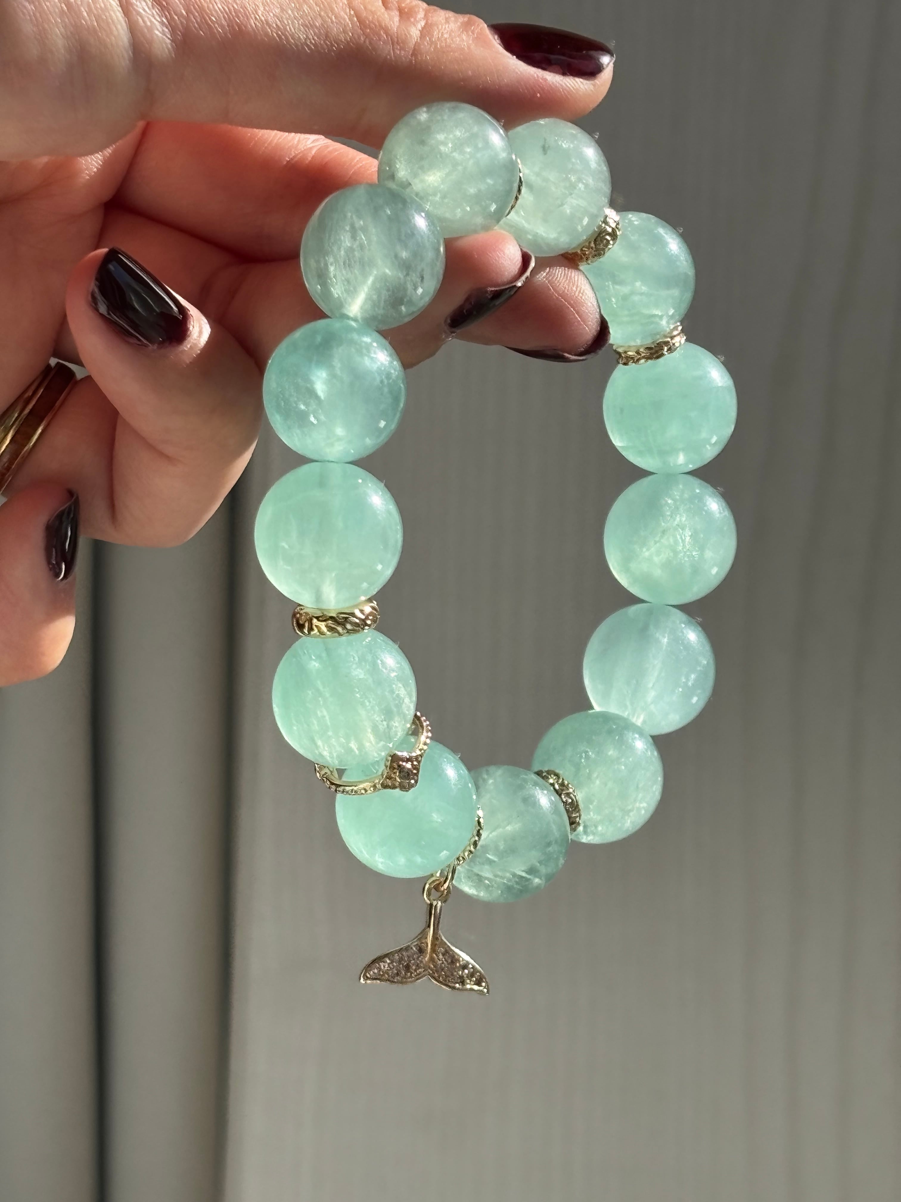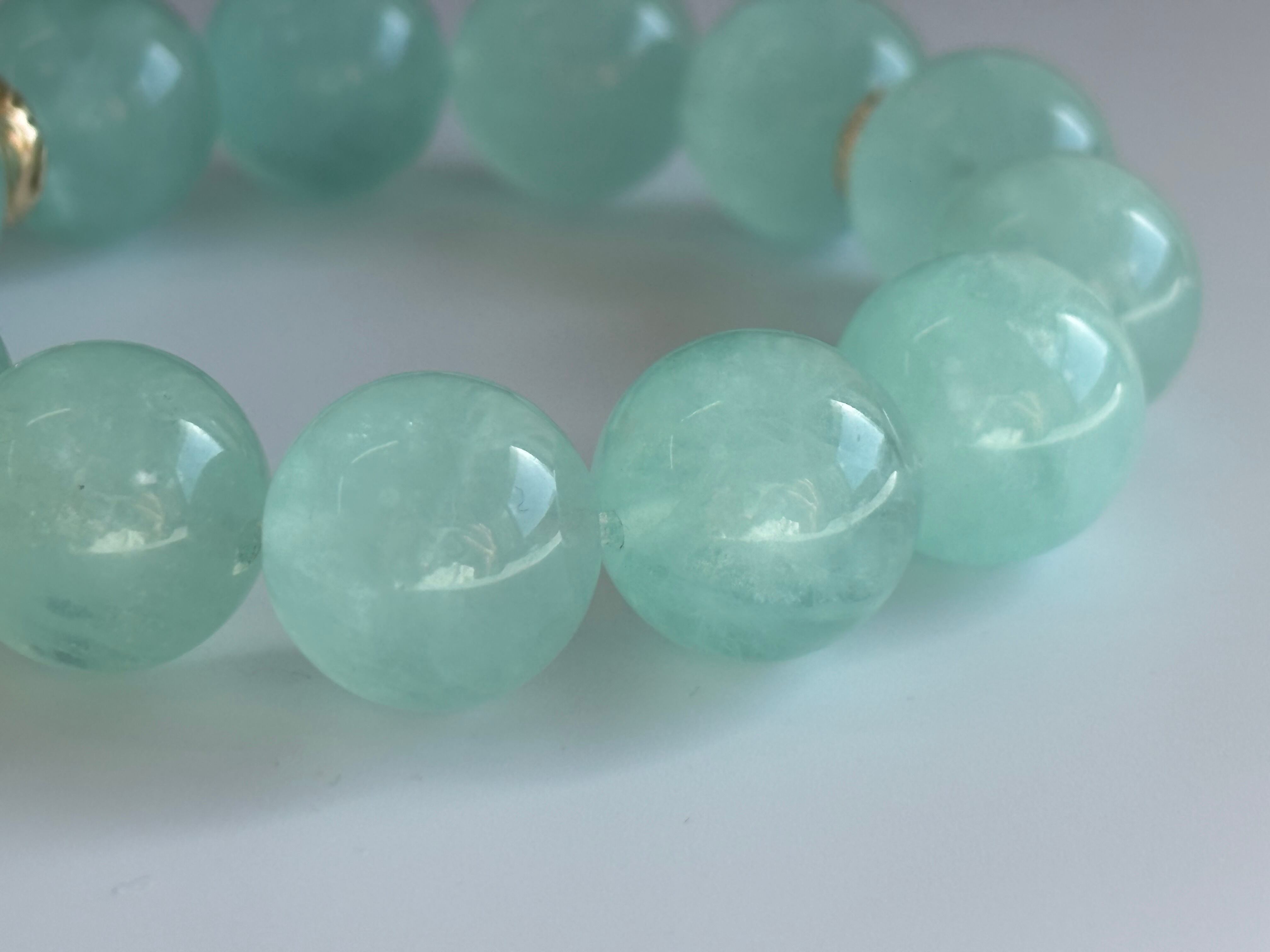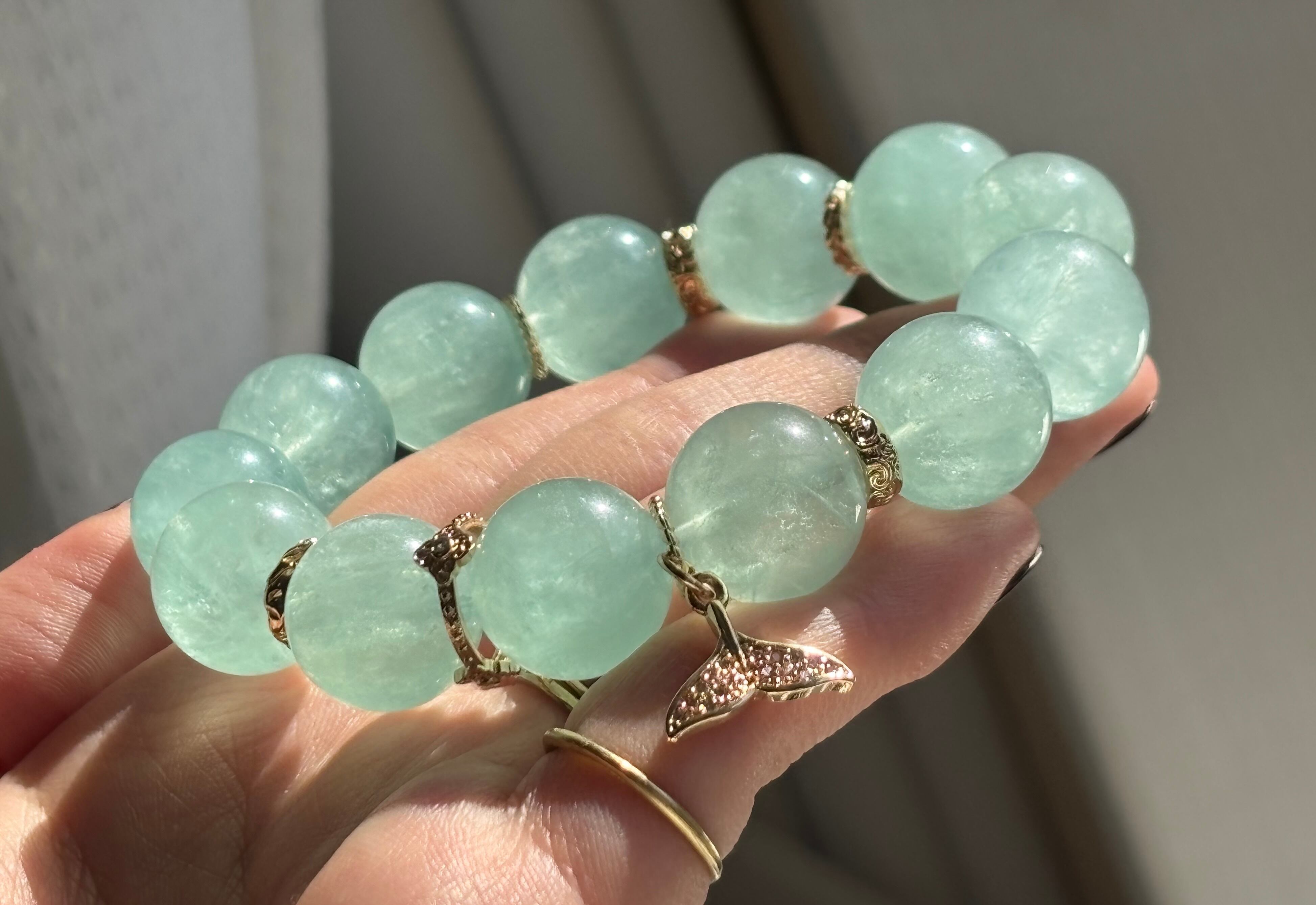 フローライトは水晶系の石やアクアマリンなど、透明感のある石と相性が良いと言われており、柔らかい雰囲気の天然石ブレスレットがお好きな方におすすめです。