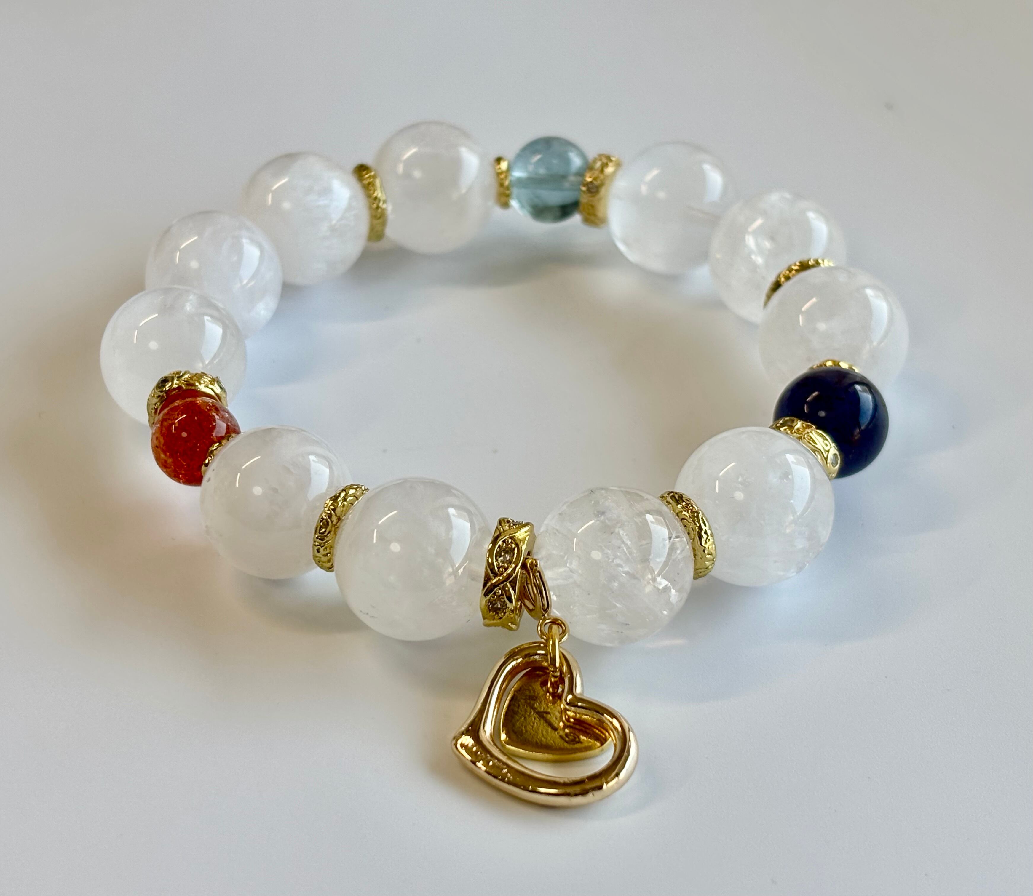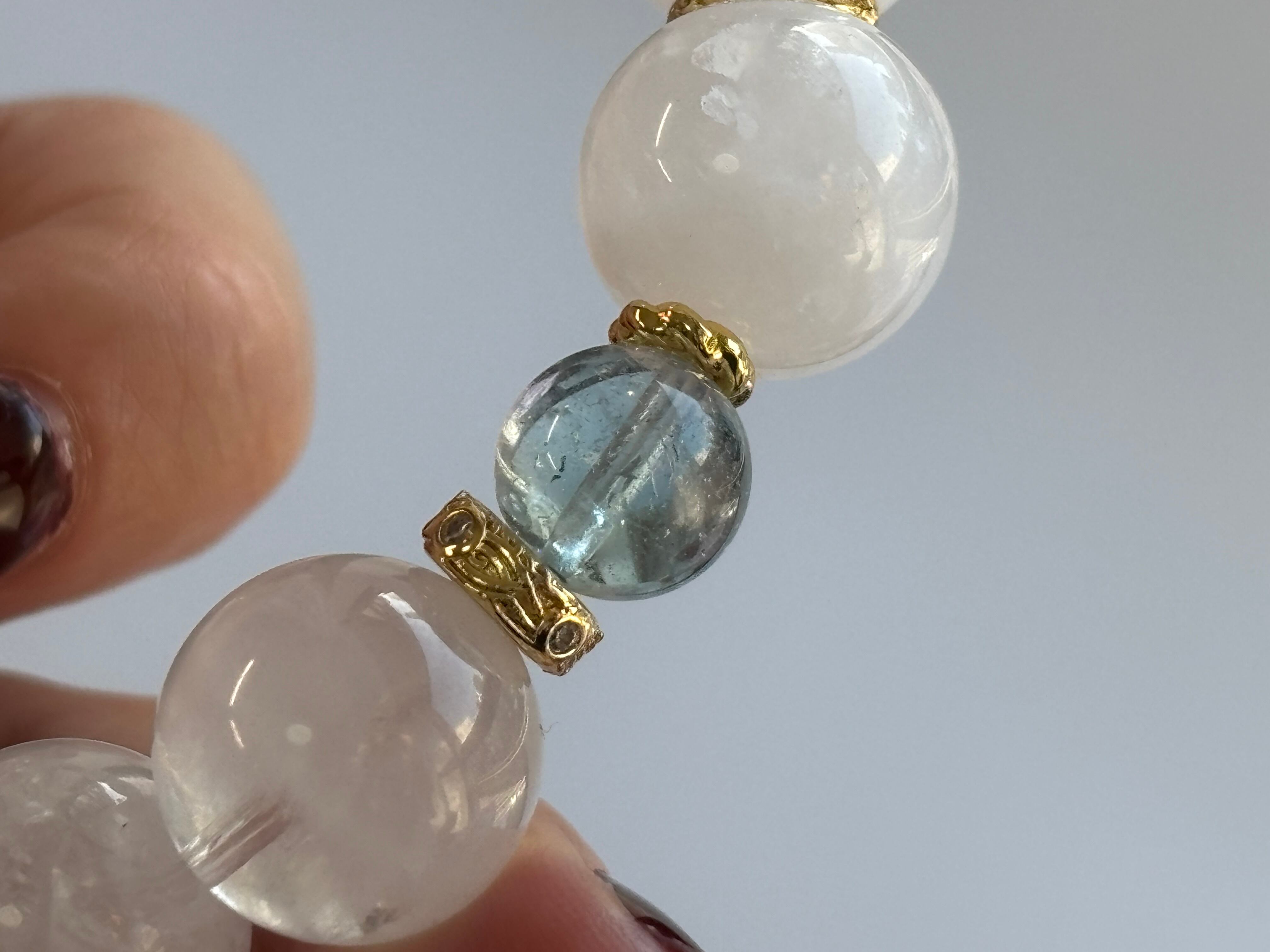 高品質 サンストーン × アイオライトサンストーン × ブルートパーズ × ホワイトガーデン デザインブレスレット