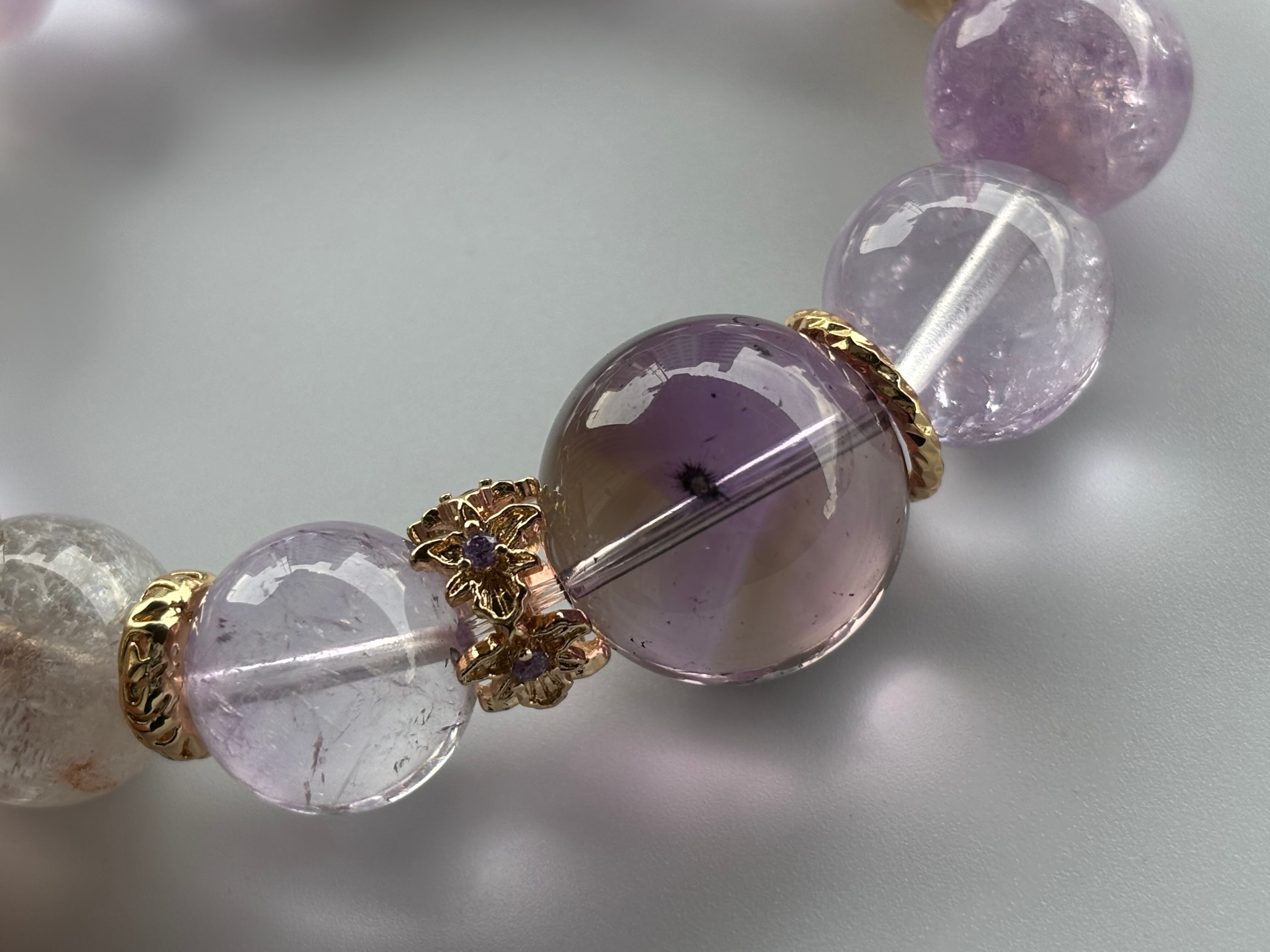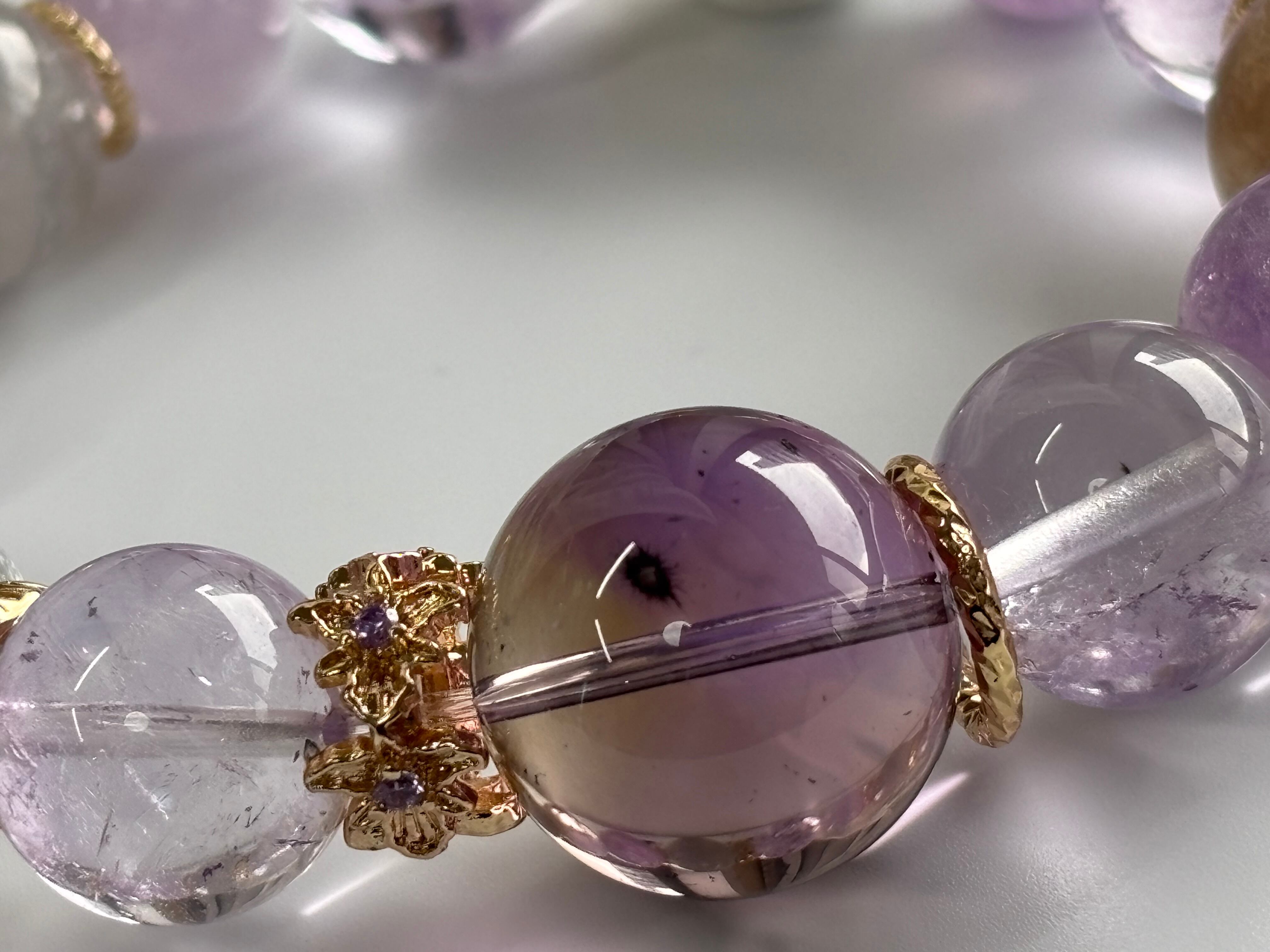 紫と淡いイエローが溶け合うアメトリンの中に、
