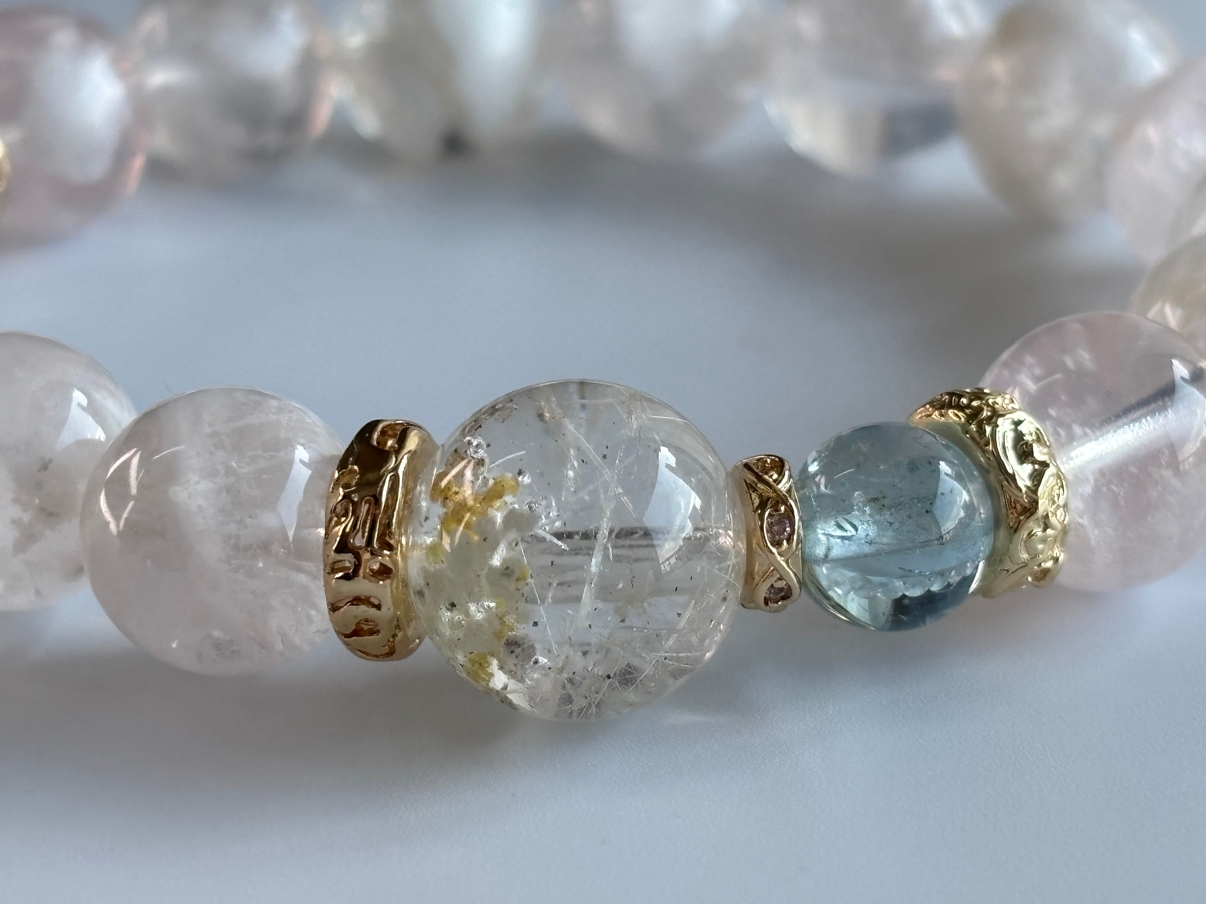 スタラクティティックマイカインクォーツ(雪霜ルチル) × セリサイトインクォーツ × ブルートパーズ