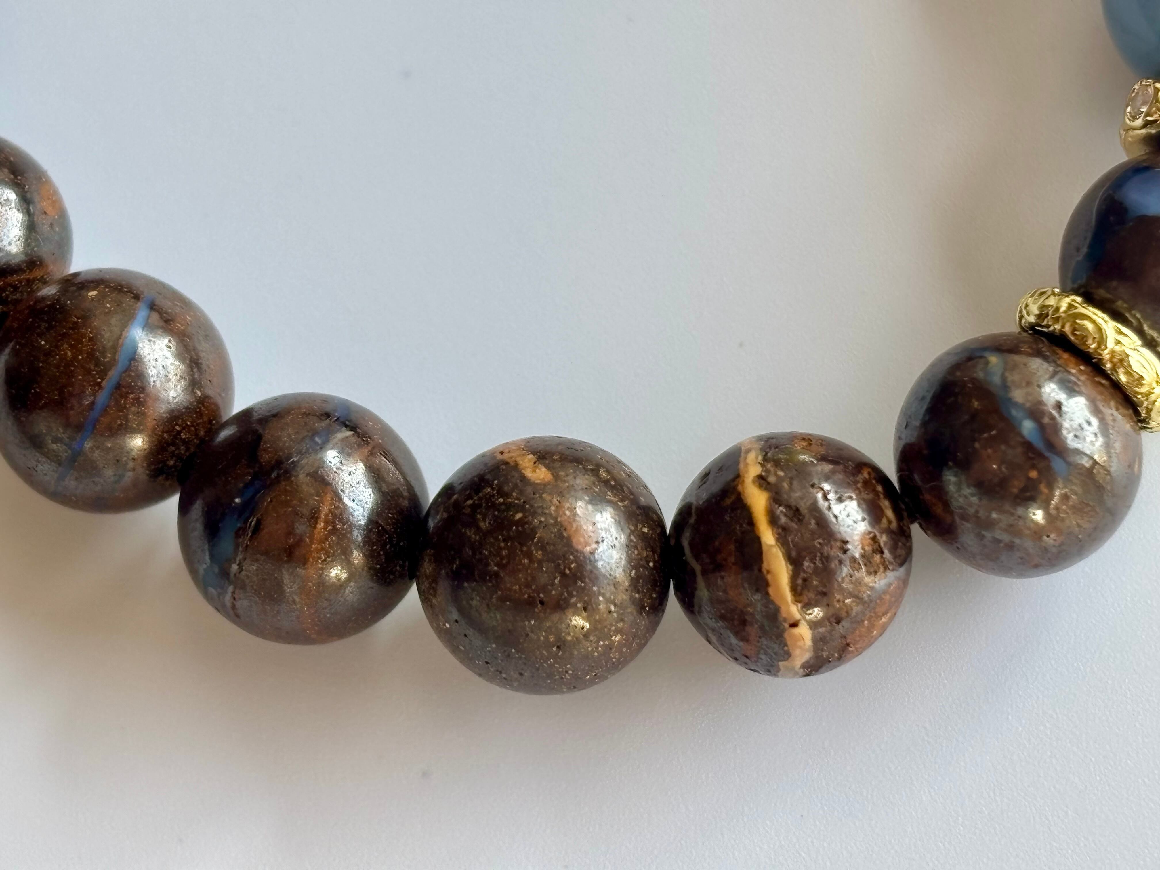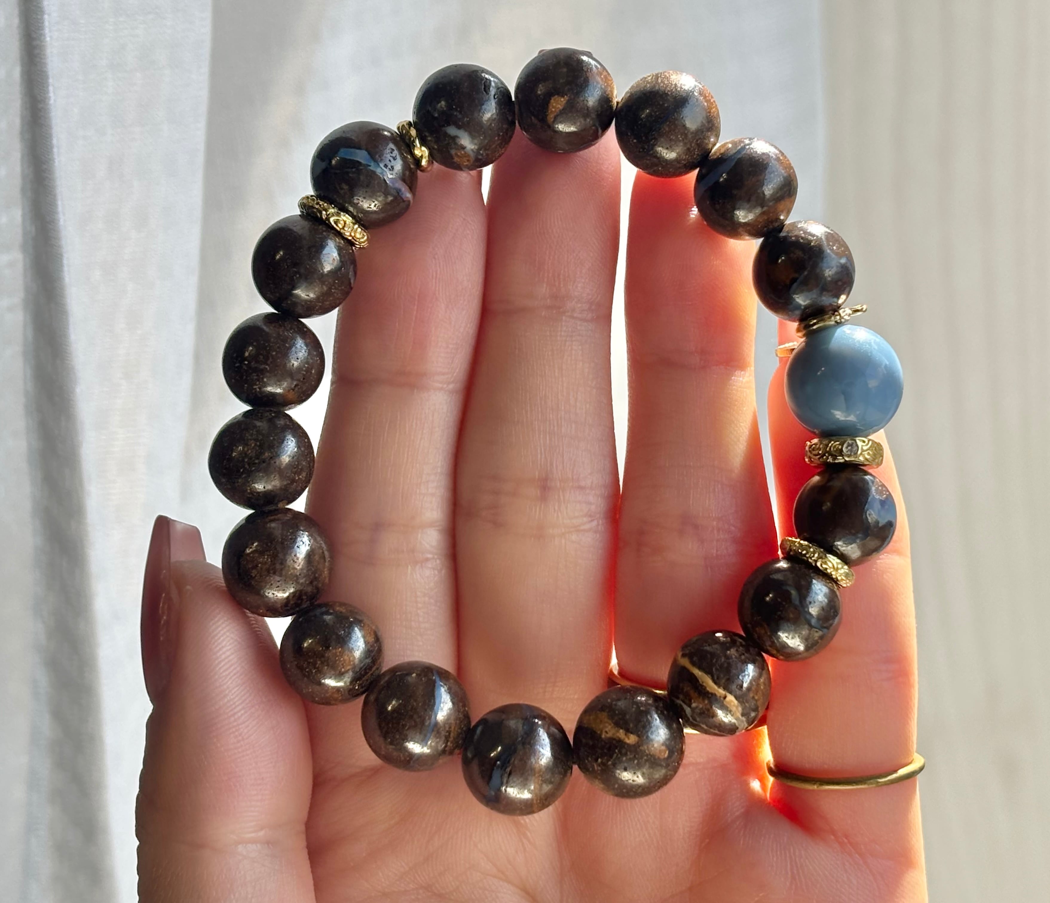 高品質 ブルーオパール × ボルダーオパール デザインブレスレット