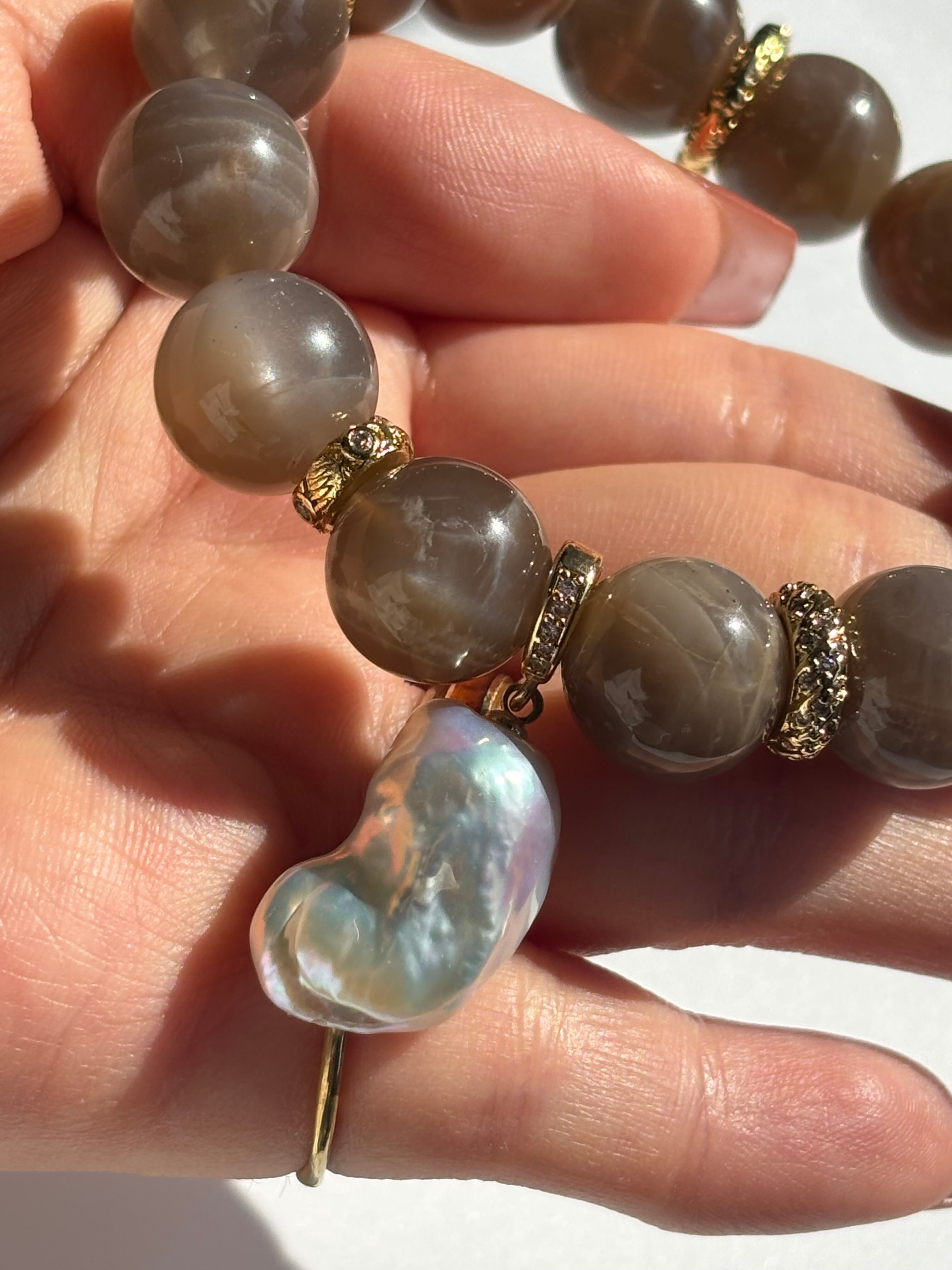 #ムーンストーン淡水パールブレスレット