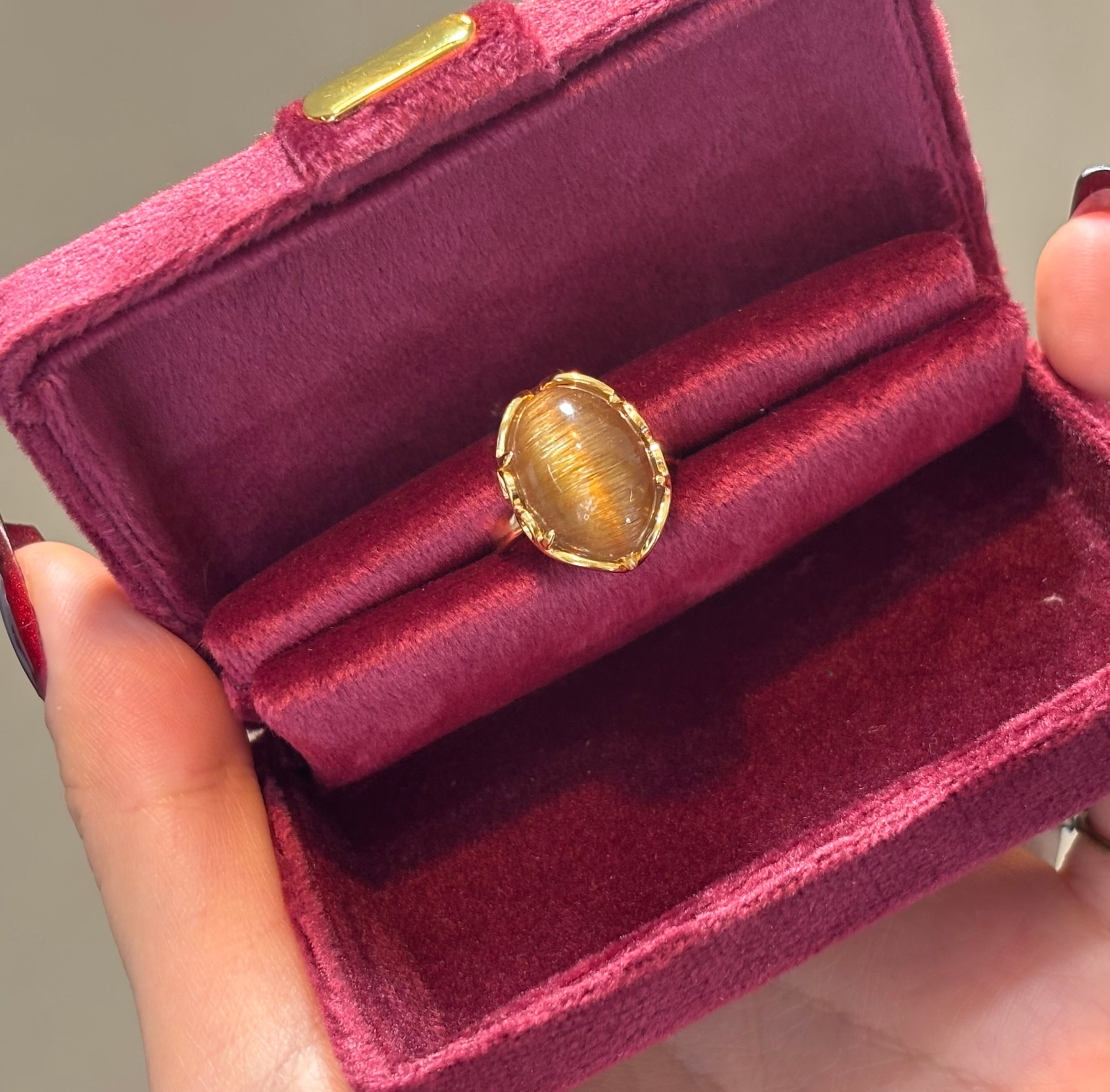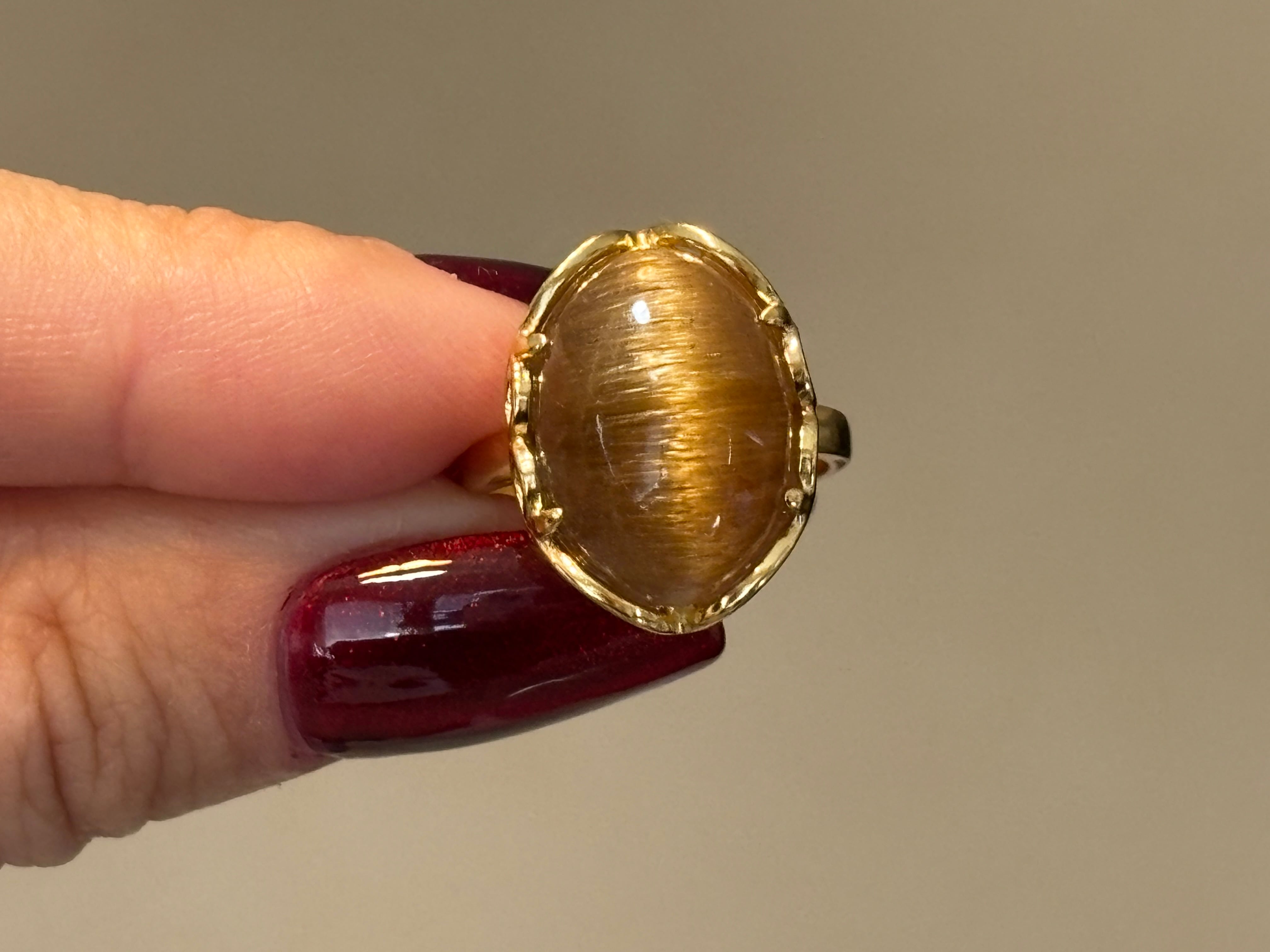 繊細なルチルの針が美しく並び、くっきりとキャッツアイが浮かび上がる一石。