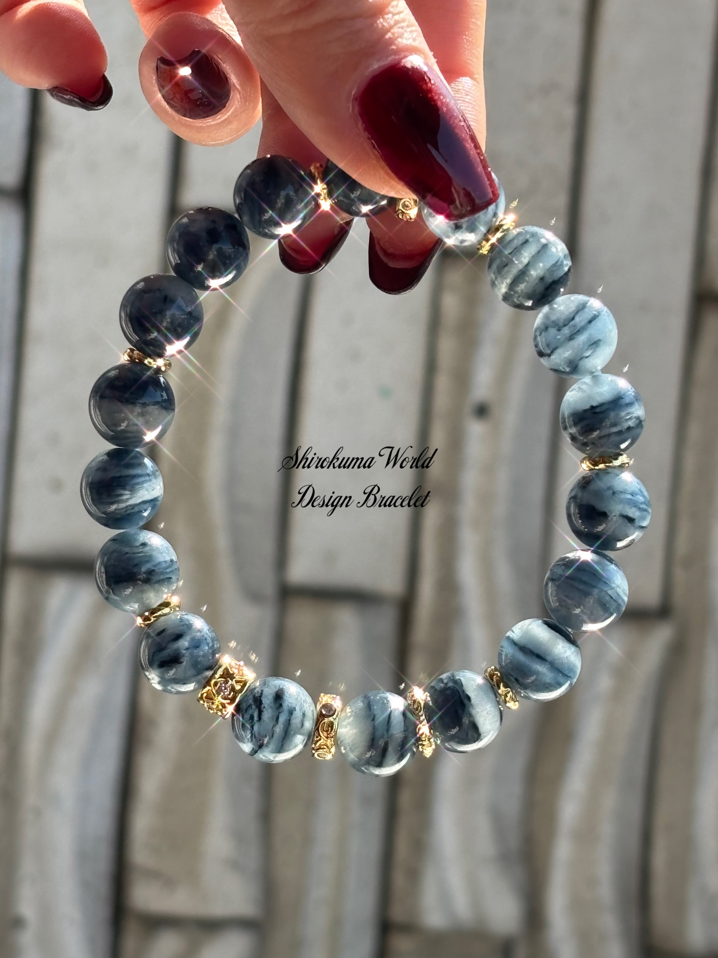 ブルーウェイビー・クォーツを使用したデザインブレスレットです。