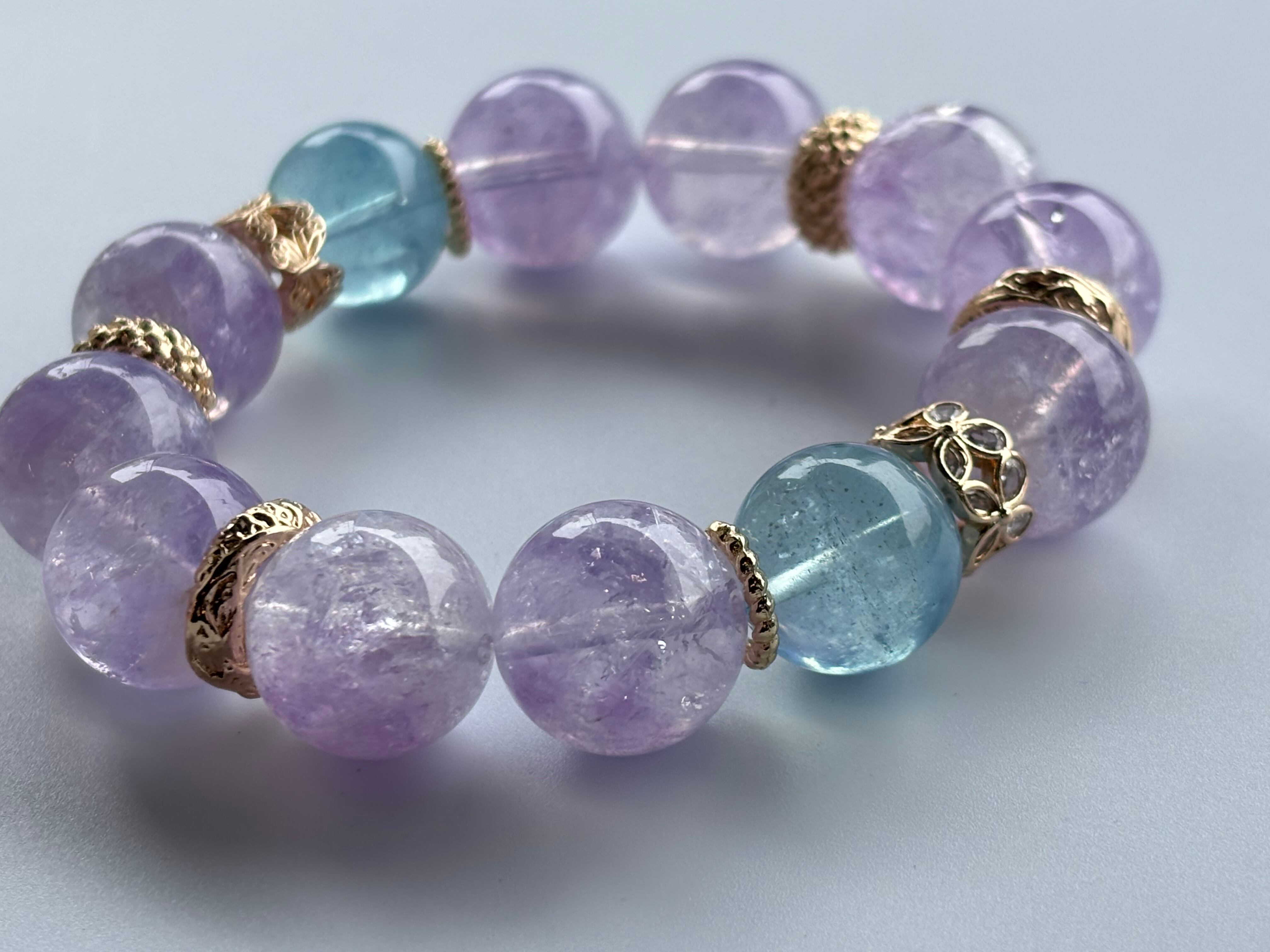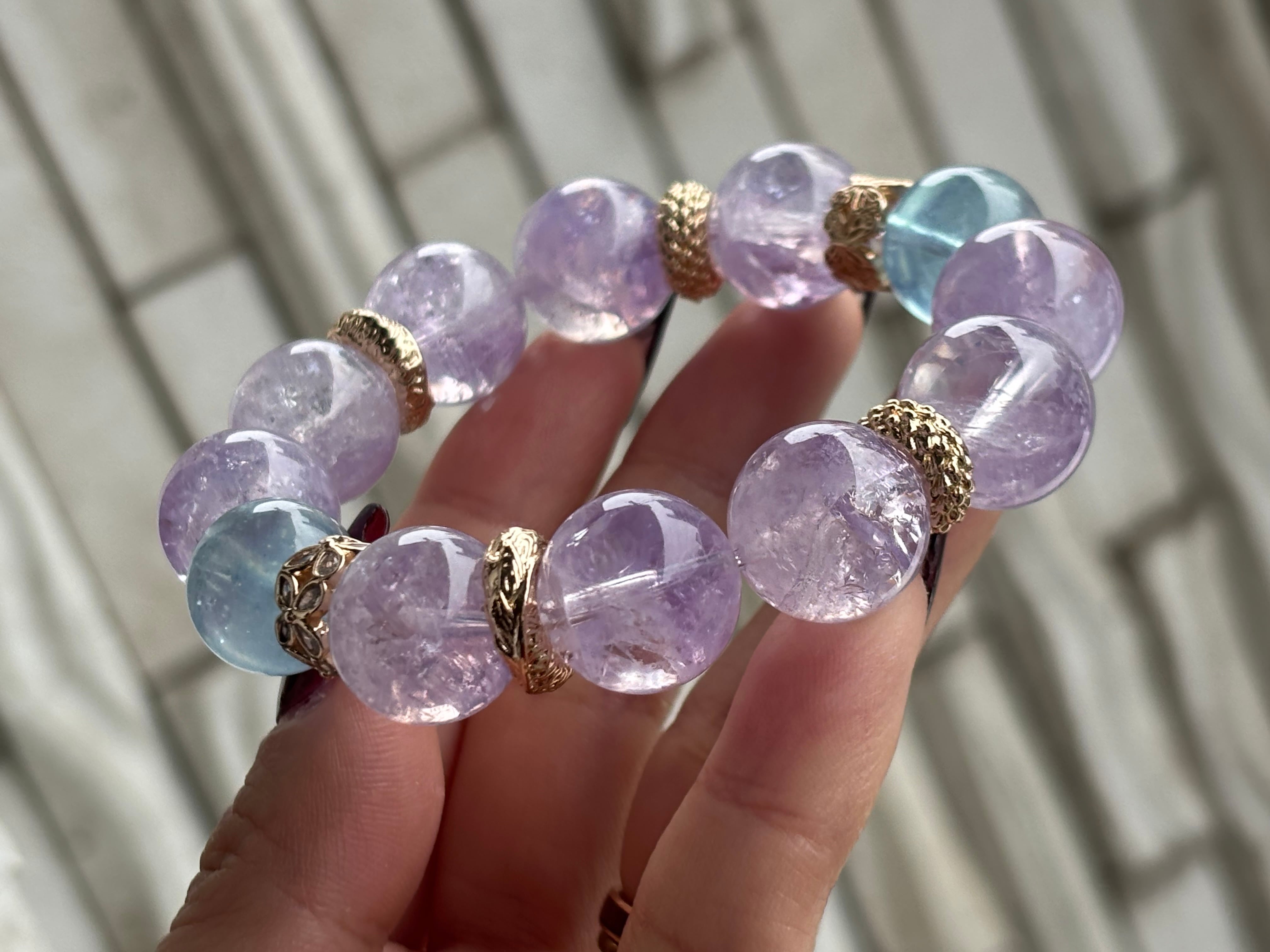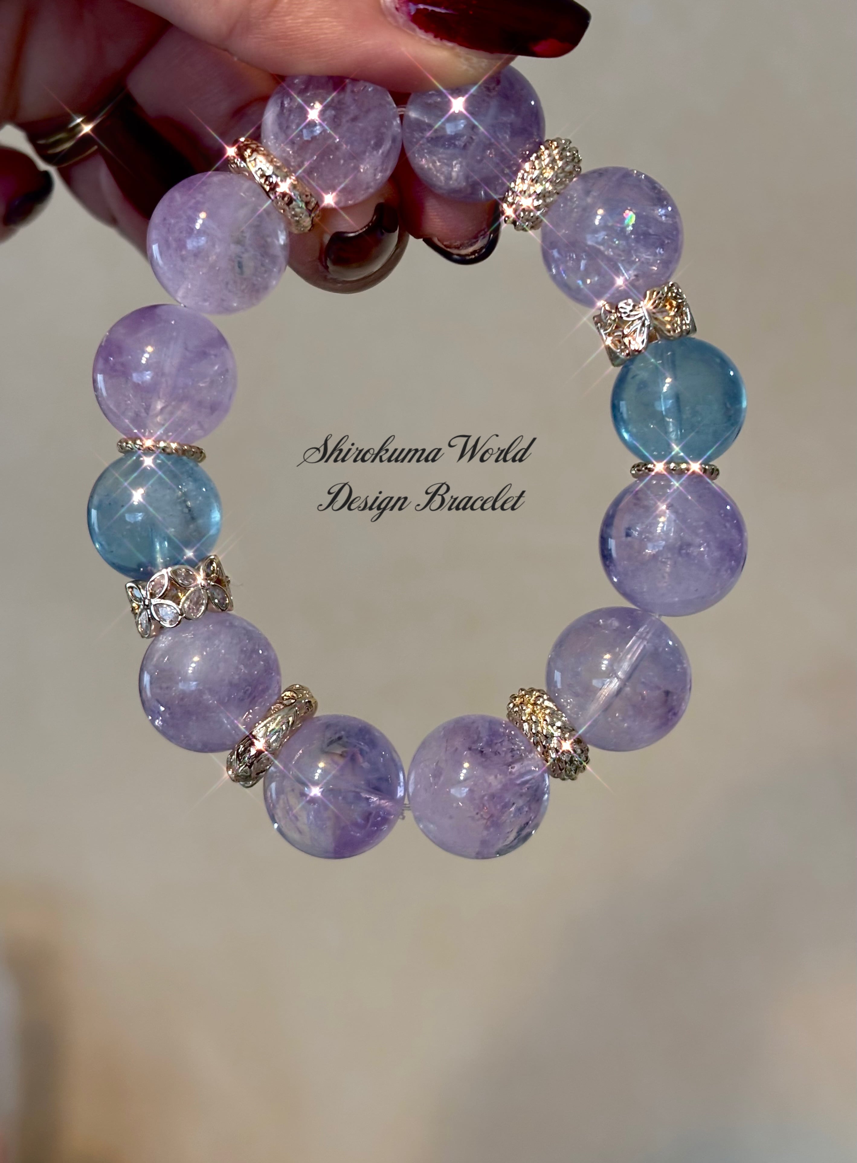 高品質 爆キラ 大粒スコロライト アクアマリン デザインブレスレット