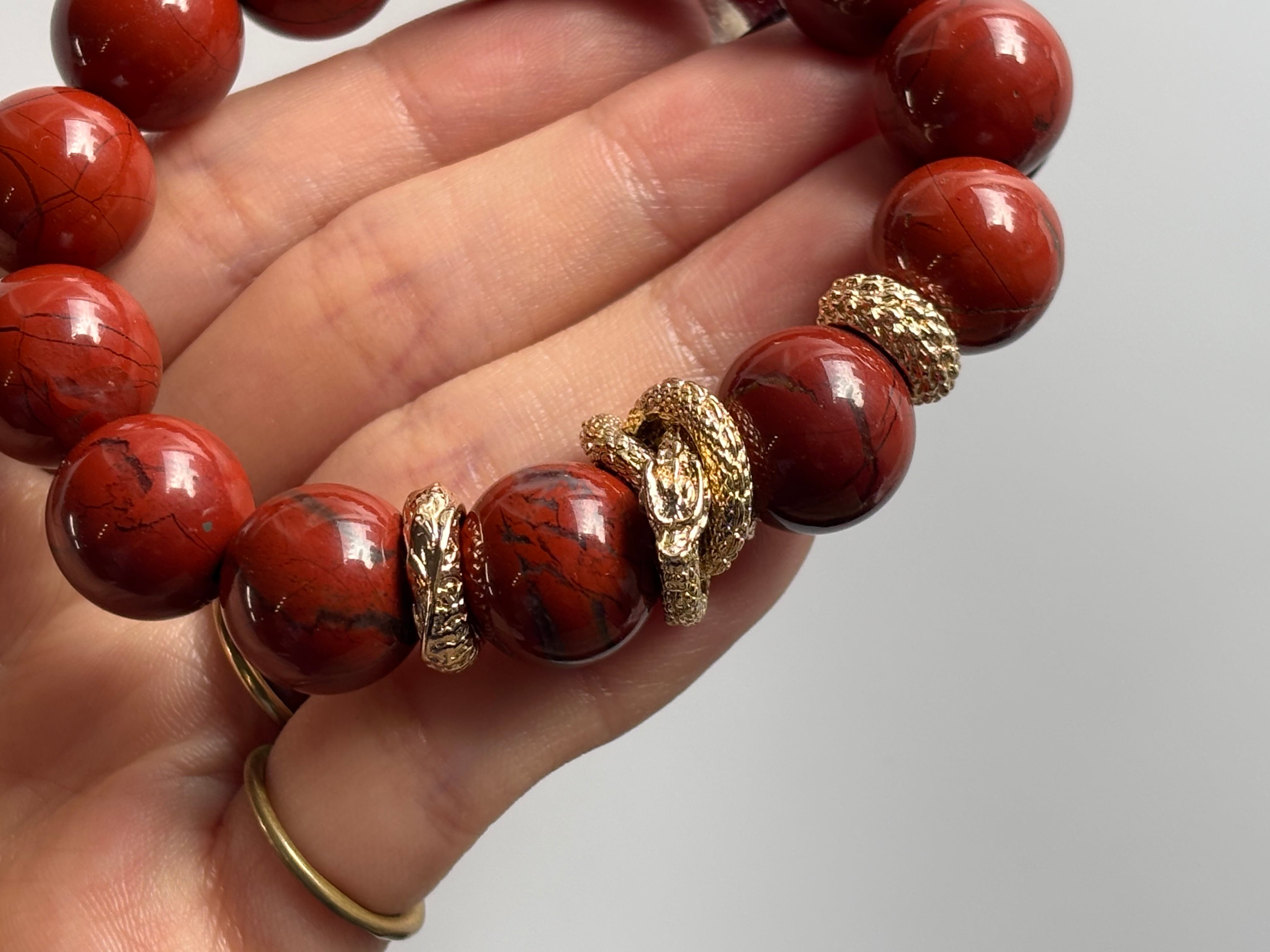 レッドジャスパーの落ち着いた力強さと龍モチーフの組み合わせは、芯のある存在感を感じさせる相性の良いデザインです。