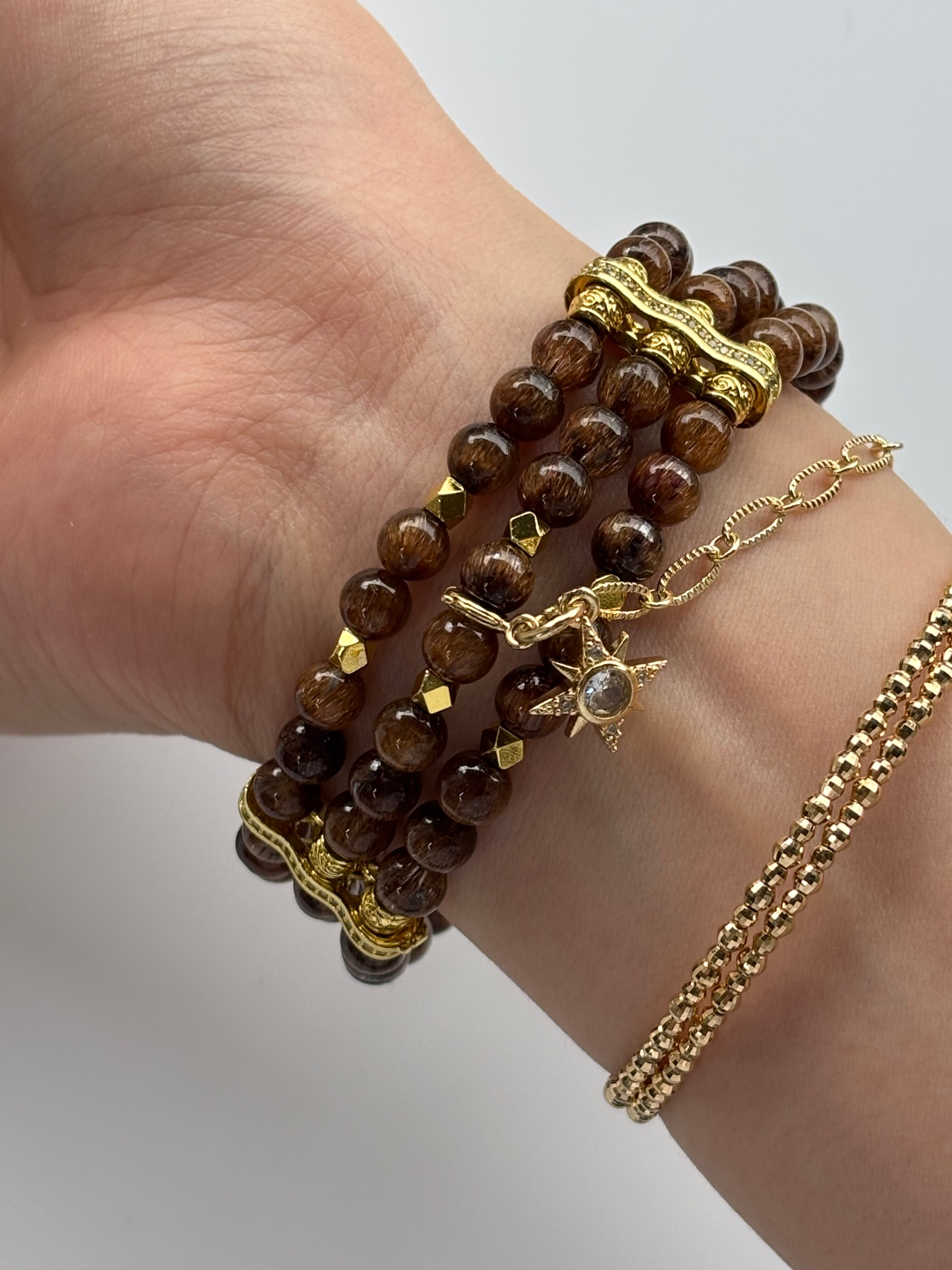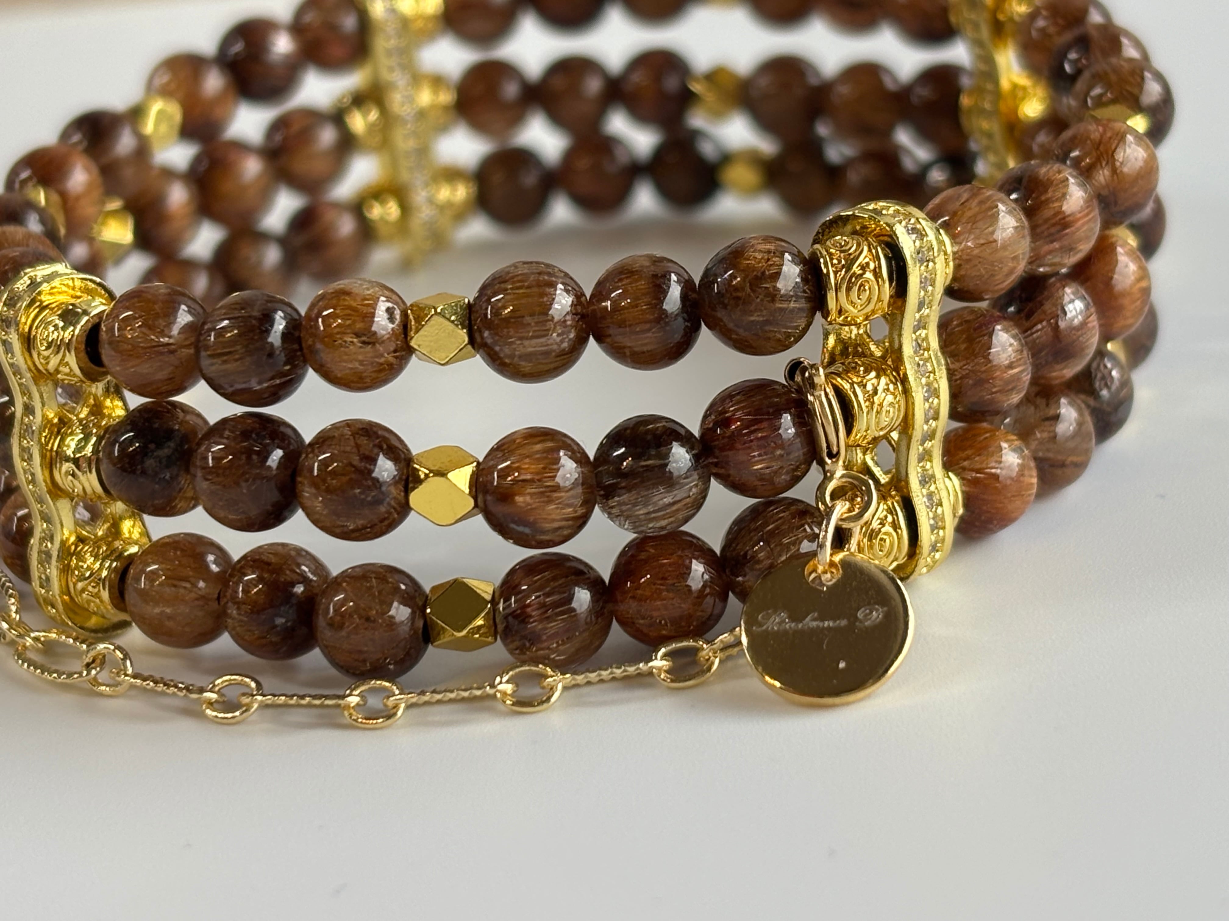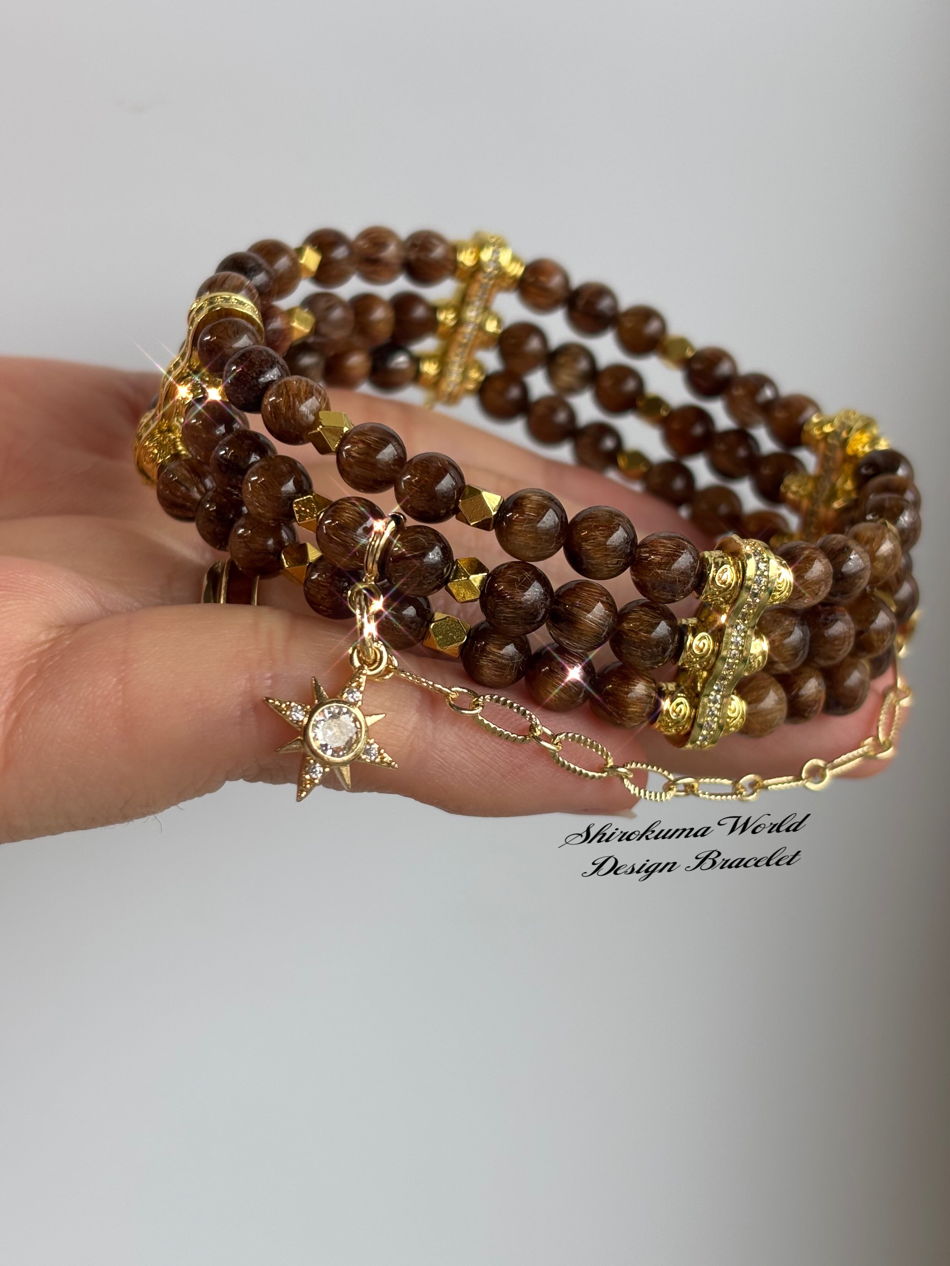 高品質なキャッツアイブラウンルチルを使用した、三連デザインブレスレットです。