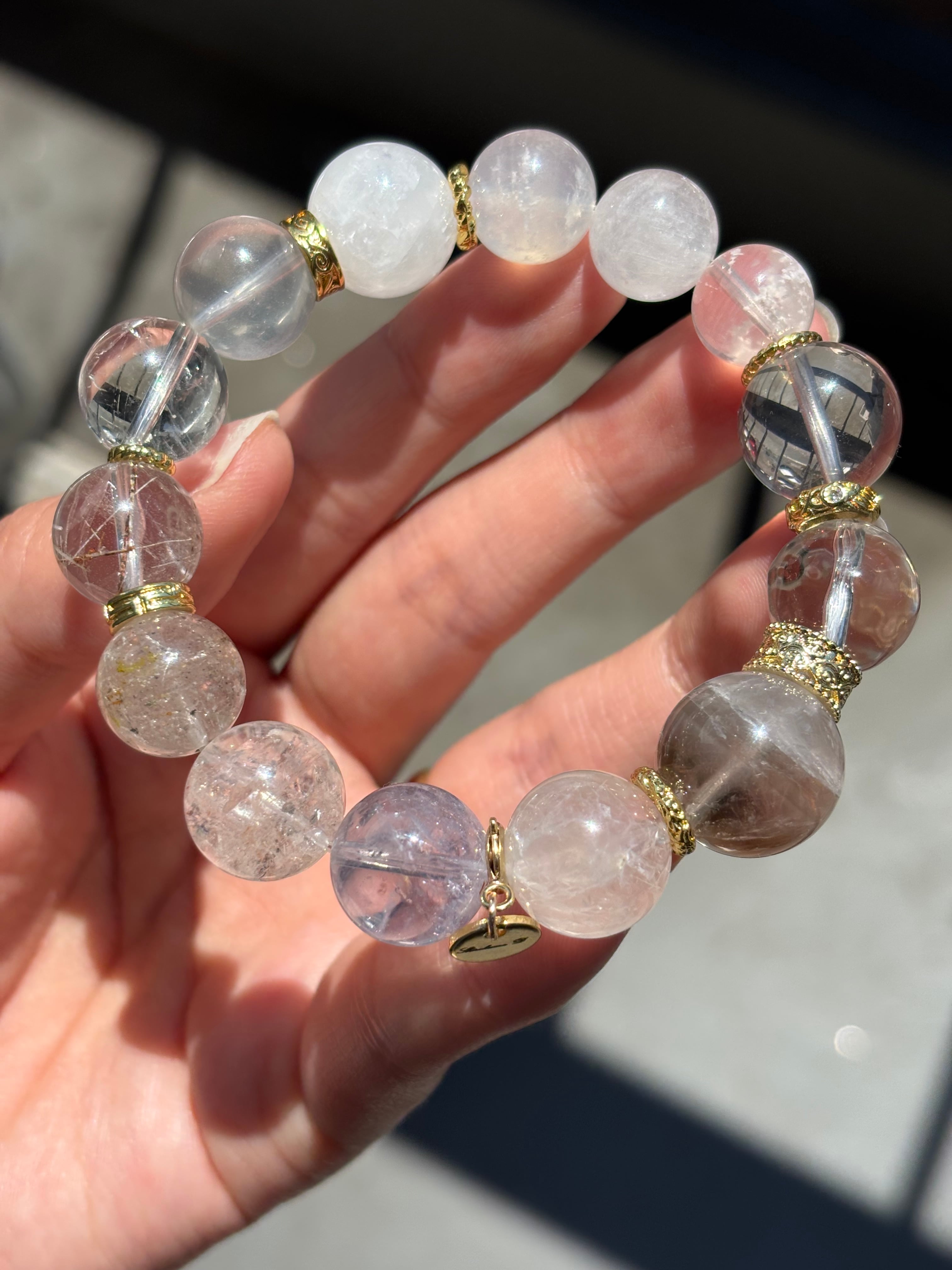 ホワイト インクォーツ系 Rainbowデザインブレスレット